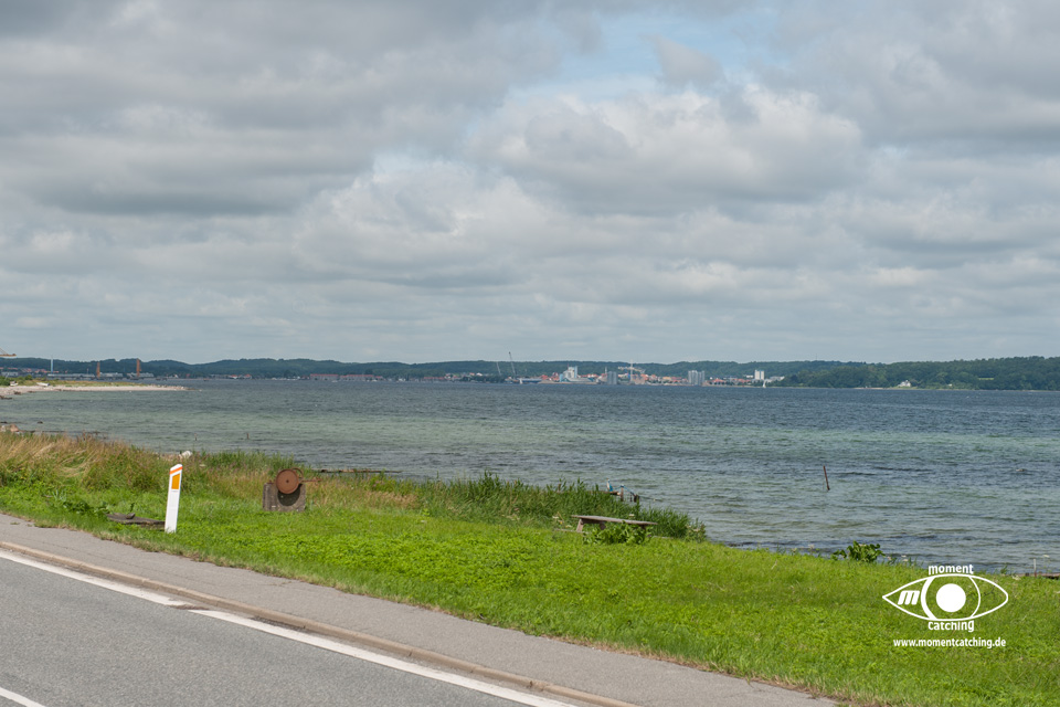Heute Morgen schien wie versprochen die Sonne und es war angenehm warm. Nach dem Frühstück sind wir mit den Rädern gestartet. Ich sogar im Shirt, was wir schon seit langem nicht mehr hatten. Dieses Mal haben wir auch den Radweg relativ schnell gefunden. In dem ersten großen Ort waren wir dann erstaunt, dass wir schon in unserem Zielort waren. Dort gab es eine schöne Kirche zu besichtigen. Da wir uns noch total fit fühlten haben wir uns kurze Hand für einen Schlenker an die Ostsee entschieden. Dort haben wir unser zweites Frühstück eingenommen mit Blick auf die Insel Barsö. Der Rückweg führte uns durch sehr schöne Landschaft mit kurzen Blicken auf die Aabenraa Bucht. Der Himmel hatte sich zwischenzeitlich zugezogen und drohte mit Regen. Unterwegs hat Susanne noch schnell Milch und Tomaten besorgt. Am Womo angekommen, habe ich trotz düsterem Himmel erstmal die Möbel aufgestellt. Das hielt aber nicht lange, dann fing es an zu regnen. Mittagsschlaf musste also drinnen gehalten werden. Das für heute vorgesehene Grillen haben wir wegen Regengefahr auch auf morgen verschoben. Das war auch gut so, denn kurz darauf fing es richtig an zu regnen und es saute bis in den späten Abend. Dazu kam dann auch noch ein richtig frischer Wind. |
