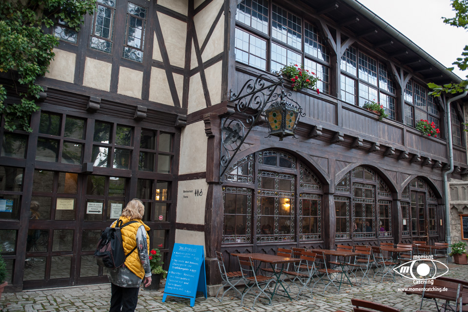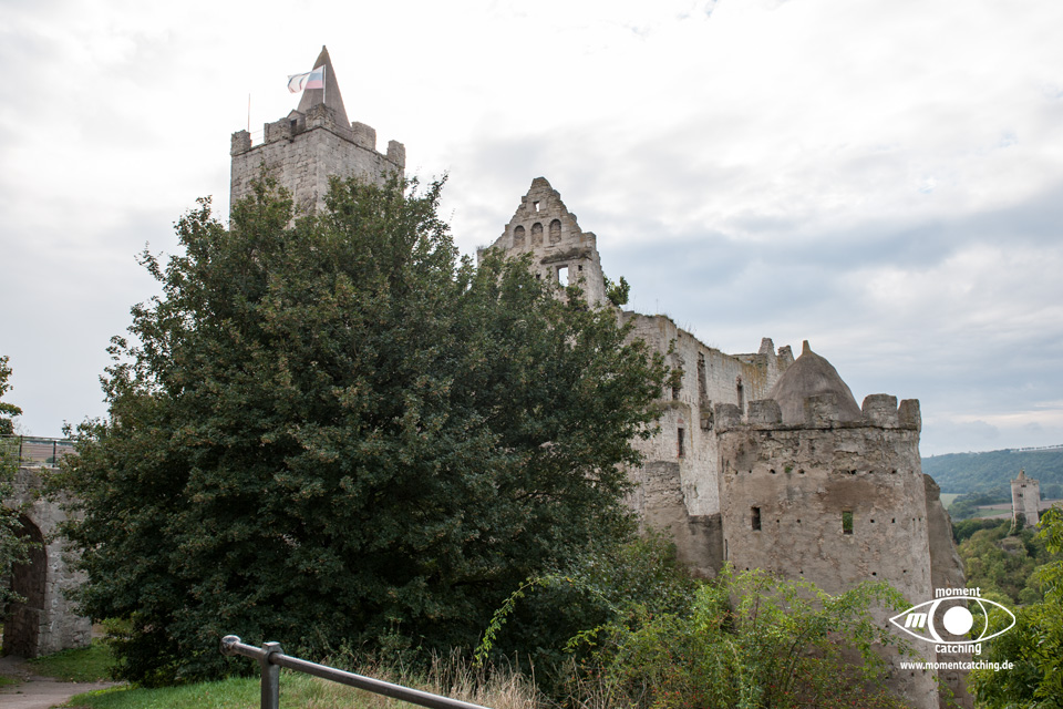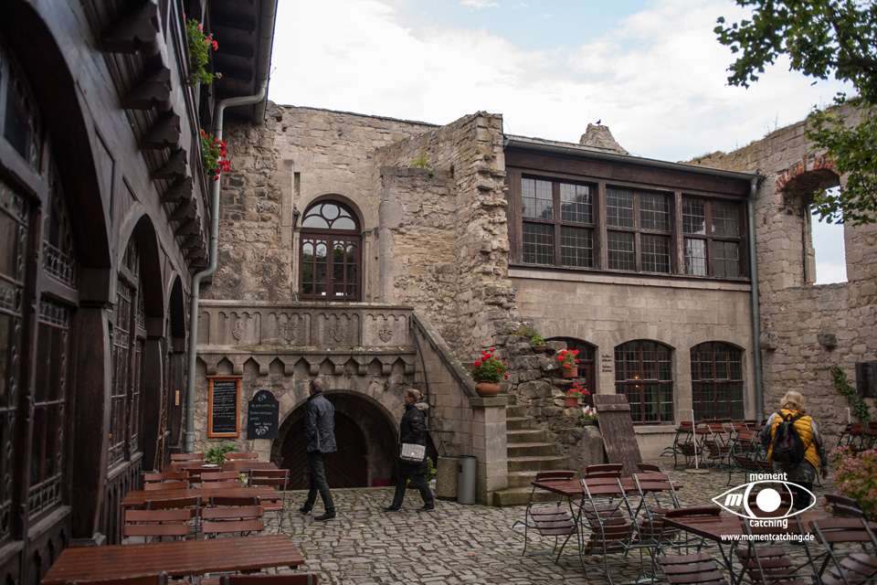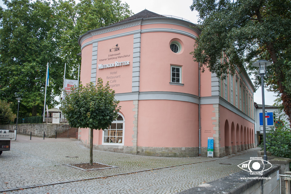Wie vom Wetterbericht vorhergesagt, hat es heute Morgen dann auch prompt geregnet. Erst nur so leichter Nieselregen, dann aber zwischendurch auch mal richtig. Zum Frühstück gab es heute Muffins, da es hier keinen Brötchenservice gibt. Das Regenwetter hielt sich auch erfolgreich bis zum späten Nachmittag. Zum Kaffee kamen Klaus und Renate wieder und wir haben die leckere Schwarzwälder weiter genießen dürfen. Nach dem Kaffee sind sie mit uns zur Rudelsburg hoch gefahren. Eine interessante Anlage mit Gaststätte und einer Außenstelle vom Standesamt von Naumburg. Nach der Burgbesichtigung sind wir in den Ort Bad Kösen gefahren und haben dort das Gradierwerk besichtigt. Klaus hatte eine Gaststätte mit Ausblick auf das Saaletal ausgesucht. Es war die ehemalige Hermannsburg, heute ein Hotel. Dort war es uns aber zu teuer. Dann sind sie mit uns nach Naumburg gefahren. Laut Internet das beste Lokal von Naumburg. Es war sehr klein und hatte eine sehr schmale Speisenkarte. Das Essen war aber sehr gut. Am Abend haben wir wieder in unserem Womo zusammengesessen. |