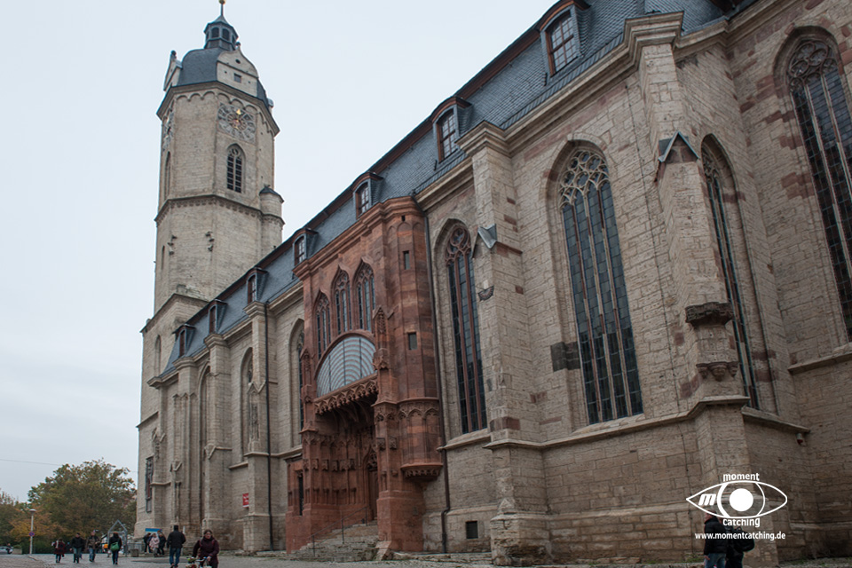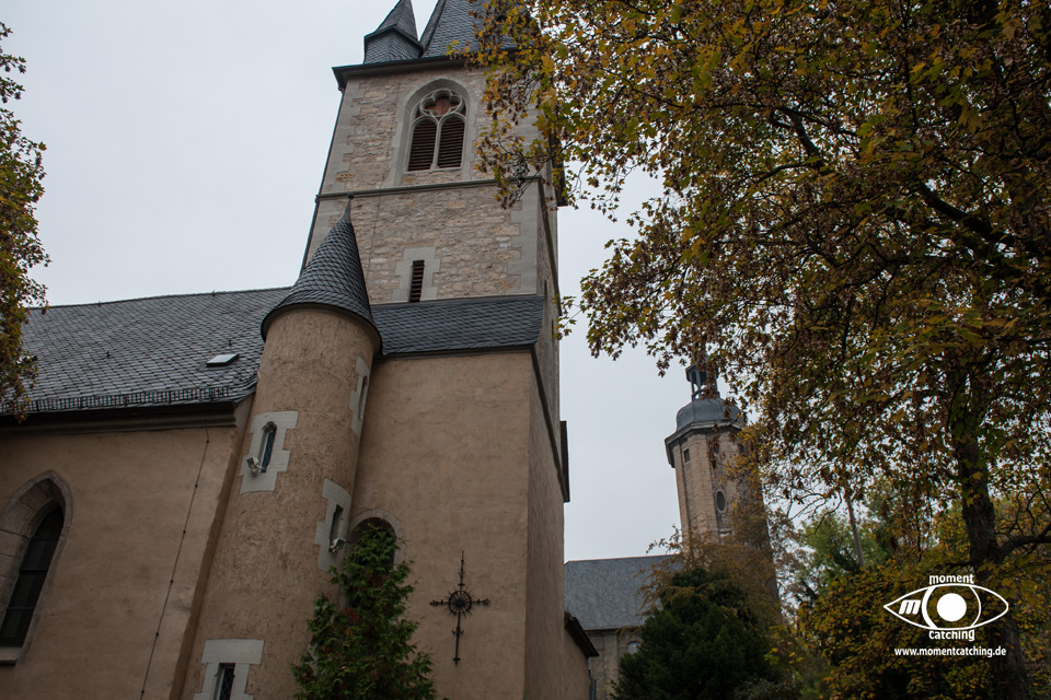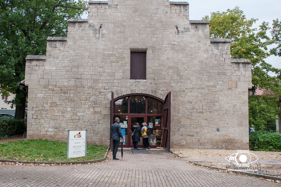 Heute schien die Sonne beim Frühstück, aber es war nicht sonderlich warm. Nach dem Frühstück haben wir Grauwasser abgelassen und Frischwasser aufgetankt. Die Toilettenkassette hatte ich schon am Vorabend geleert. Während der Fahrt nach Naumburg gab es immer wieder mal einen Regenguß, aber je mehr wir uns Naumburg näherten um so weniger Wolken waren am Himmel. Auf dem Parkplatz in Naumburg war wieder der übliche Oktoberfestrummel. Dieses mal noch weiter zum Womo-Stellplatz ausgedehnt. Wir waren die einzigen auf dem Platz, was uns einigermaßen verwunderte. Als wir dann am Bezahlautomaten lasen, dass der Platz jetzt 10 € pro Tag kostet, war uns alles klar. Also der laute Rummel mit betrunkenen Leuten und der Preis, dass ist mindestens ein Problem zu viel. Wir sind in unsere Stellplatzunterlagen getaucht und haben in Bad Kösen-Stendorf einen besseren Platz gefunden und haben uns wie immer, kurz entschlossen auf den Weg gemacht. In Bad Kösen-Stendorf war zufällig der Eigentümer draußen und begrüßte uns freundlich und erklärte uns alles. Der Platz macht einen guten Eindruck und der Strom ist hier pauschal. Am Nachmittag tauchten Klaus & Renate bei uns auf. Renate hatte als Geburtstagstorte für Klaus eine Schwarzwälder-Kirsch-Torte gebacken. Da die Sonne noch gut schien haben wir draußen Kaffee getrunken unter unserer Markise. Die Torte war richtig lecker. Die ist Renate wirklich gut gelungen. Nach dem Kaffee haben wir dann im Womo noch ein Glas Wein getrunken und Pläne für die nächsten drei Tage geschmiedet. Da der Wetterbericht für den Feiertag nichts Gutes voraussagte, haben wir uns erst zum Kaffee wieder verabredet. | |