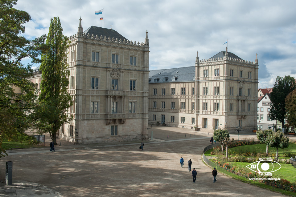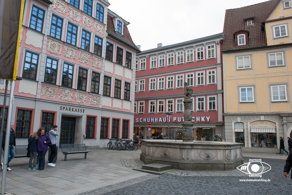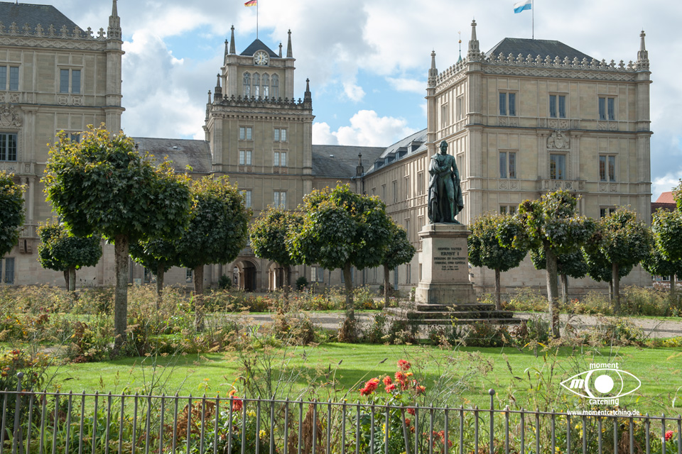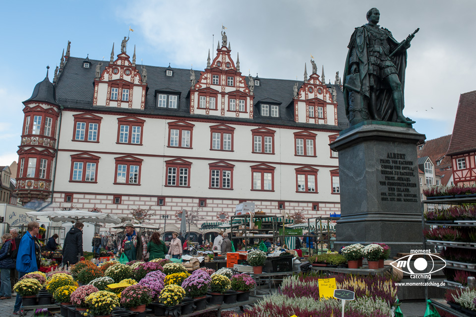 Wenngleich es heute Morgen lausig frisch war, so hatte doch der Himmel ziemlich große blaue Stellen. Den Weg nach Coburg rein kannten wir ja schon. Dieses Mal kamen wir auch gleich am Theaterplatz heraus. Wir haben uns als erstes das Schloss Ehrenburg angesehen. Auch bei dieser Führung waren wir mit uns, nur ganze sechs Personen. Das Schloss ist sehenswert und die Führung war auch ganz interessant. Nach der Schlossführung haben wir uns die Moritzkirche angesehen und sind am Marstallgebäude vorbei in den Hofgarten gegangen. Von hier aus hatte man eine gute Aussicht auf den Schlossplatz und die angrenzenden Gebäude. Auf dem Marktplatz haben wir ein original Coburger Grillwürstchen gegessen. Die haben richtig lecker geschmeckt. Man wirft auf die Holzkohle Tannenzapfen. Auf dem Markplatz und der Fußgängerzone war heute Autoausstellung. Wir haben uns einige Autos angesehen. Danach waren wir groggi und sind wieder zum Womo zurückgefahren. Da wir auch heute zu faul waren zur Gaststätte zu laufen, haben wir wieder Stulle mit Brot gegessen. |
