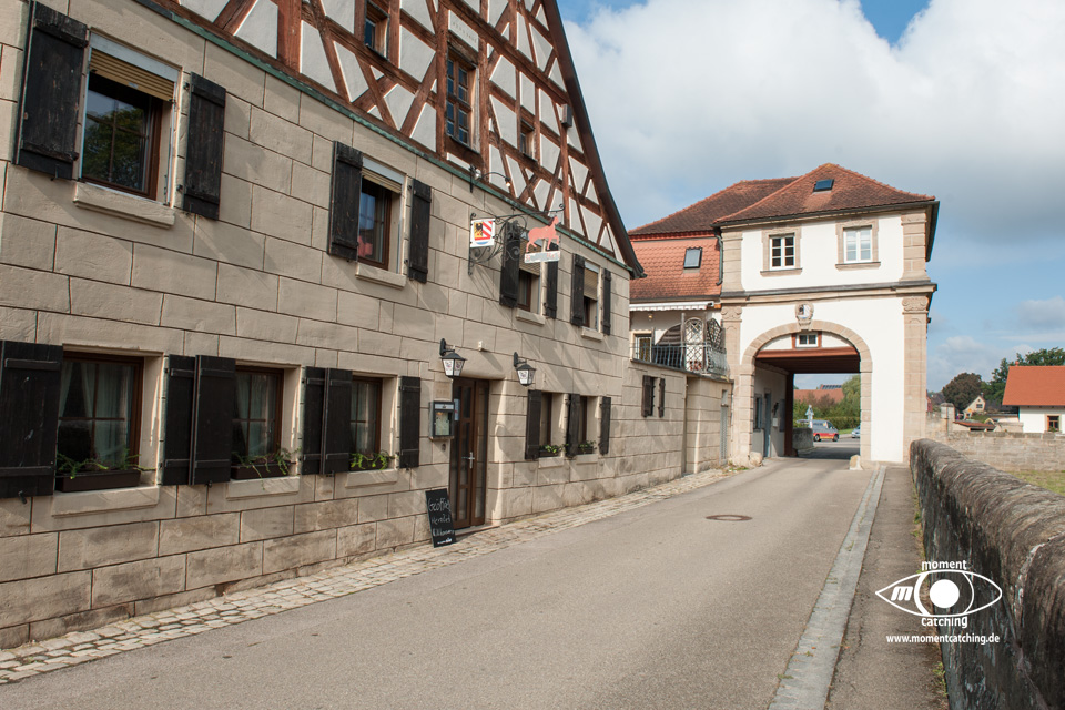 Heute habe ich bei strahlendblauem Himmel die Brötchen aus der Gaststätte geholt. Der Sonnenschein hat uns inspiriert, heute die Radtour nach Lichtenau zur Veste zu machen. Im Lokal gab es eine passende Radfahrkarte für uns. Der Hinweg ging über Wattenbach durch einen schönen Wald. Die Veste haben wir schnell gefunden. Sie hat eine eigenartige Architektur. Die offenen Dächer haben für mich etwas von einem römischen Castell. Direkt vor der Veste befinden sich die Reste der Altstadt. Das Museum war leider nicht geöffnet. Das Typische an Franken ist auch hier sehr deutlich, fast jede größere Gaststätte hat ihre eigene kleine Brauerei. Der Stadtteil nördlich der fränkischen Rezat hat keine besonderen Sehenswürdigkeiten. In einem Discounter gab es eine heiße Theke mit den fränkischen Bratwürsten. Susanne hat ein Käsebaguett gegessen. Danach haben wir die Heimreise angetreten. Der Rückweg führte uns am Golfplatz vorbei über Unterrottmannsdorf und von da aus zurück zur Gotzenmühle. Da immer noch die Sonne schön schien, haben wir draußen gesessen. In der Sonne war es angenehm. Sobald sie weg war, war es auch gleich lausig kalt. Zum kaffee waren wir schon wieder im Womo, da war es kuschelig warm. Zum Abend sind wir in die Gaststätte gegangen. Das Umfeld ist ja äußerst rustikal und der Wirt mit seinem etwas herbem Charme sehr gewöhnungsbedürftig. Das Essen war jedoch sehr gut und reichlich und der Preis stimmte auch. |