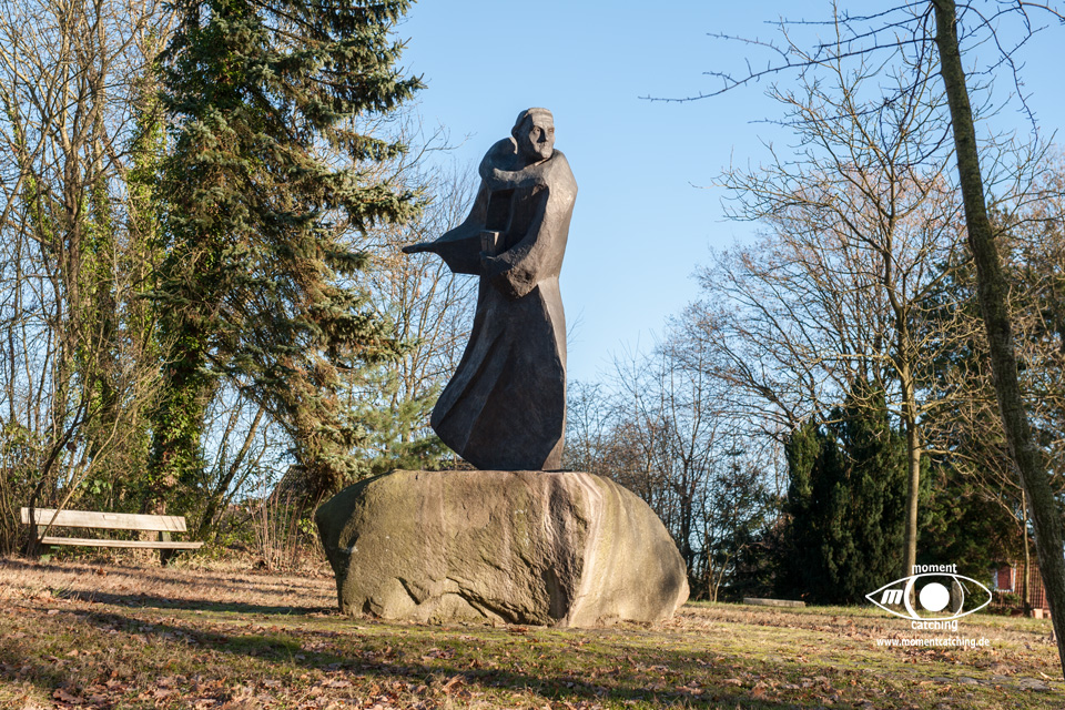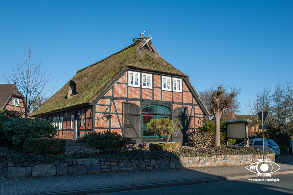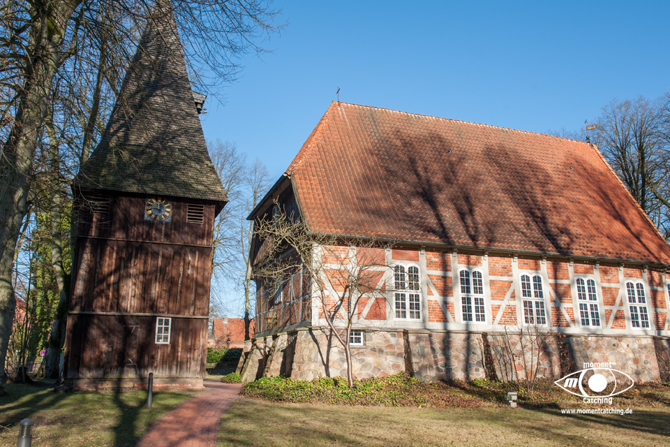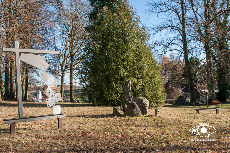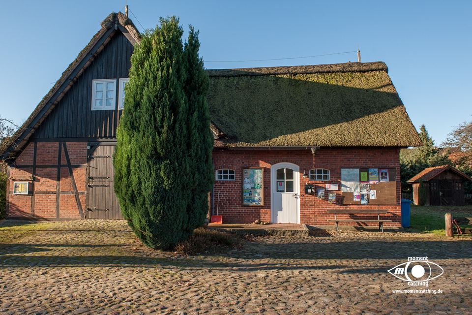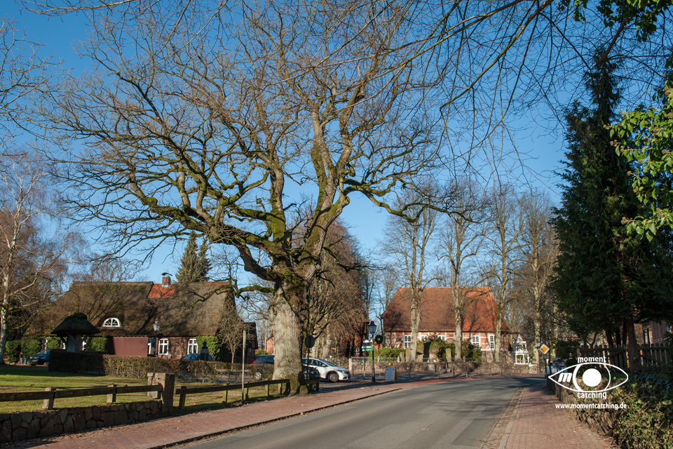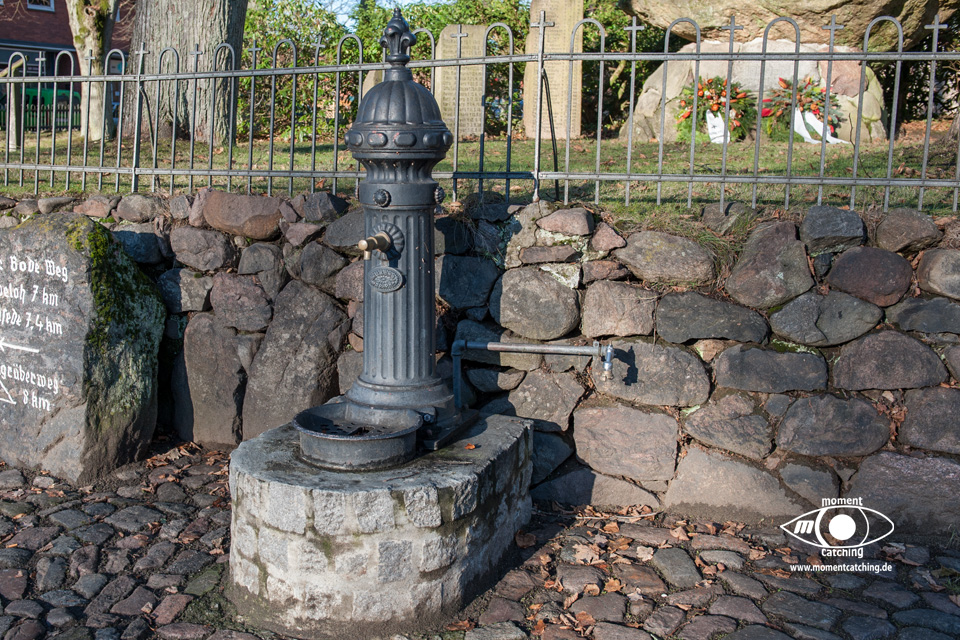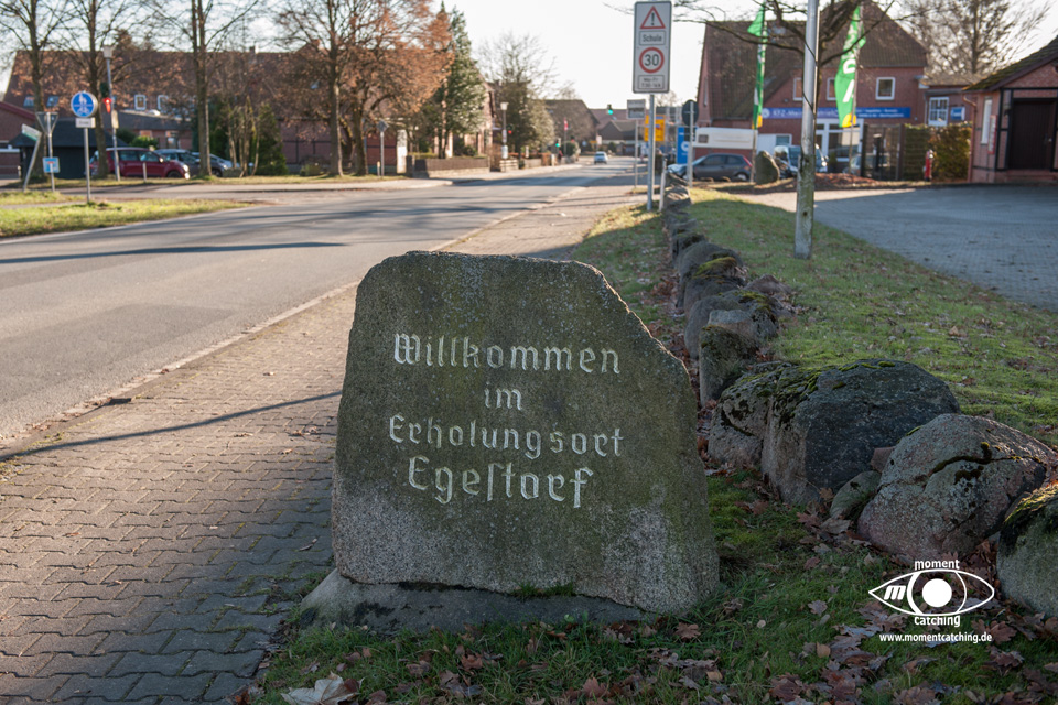 Heute begrüßte uns beim Aufstehen wieder die Sonne, obwohl sie uns ob der hohen Tannen nicht so erreichte. Ein Blick nach draußen zeigte aber auch schönen blauen Himmel. Nach dem Frühstück sind wir dann gestartet. Da wir uns entschieden hatten doch nicht in den Ort zu fahren, sind wir geradewegs zu unserem neuen Ziel gefahren. Das hatte ich am Abend zuvor herausgesucht. Es lag nur ganze 18 km entfernt. In Egestorf angekommen, staunten wir nicht schlecht. Eigentlich war auch dieser Stellplatz außerhalb des Ortes und wird abends nicht weniger einsam sein als in Amelinghausen. Allerdings ist die Entfernung zur Ortsmitte geringer. Nachdem wir alles eingerichtet hatten, haben wir uns auf den Weg in den Ort gemacht. Da wir strahlenden Sonnenschein hatten, war der Fußmarsch recht angenehm. Die kleine Kirche im Ort war offen. Der Ort hat uns recht gut gefallen. Leider hat die Touristeninformation drei Minuten bevor wir sie gefunden hatten dicht gemacht. Der alte Friedhof, der jetzt als philosophischer Steingarten ausgewiesen ist, hat allerdings einige Fragenzeichen in unserem Kopf erzeugt. Am Womo wieder angekommen, bin ich noch mit dem Fotoapperat in das an den Parkplatz angrenzende Naturbad gegangen. Eine schöne Anlage, die im Sommer sicherlich seine Fans hat. Im Womo habe ich dann erst mal meinen Mittagsschlaf gemacht. Zum Kaffe gab es die Dresdner Stolle, die wir gestern im ALDI gekauft haben. Zum Abendbrot hat Susanne den Gulasch gemacht, den wir eingefroren von zu Hause noch hatten. Das war auch wieder richtig lecker. |