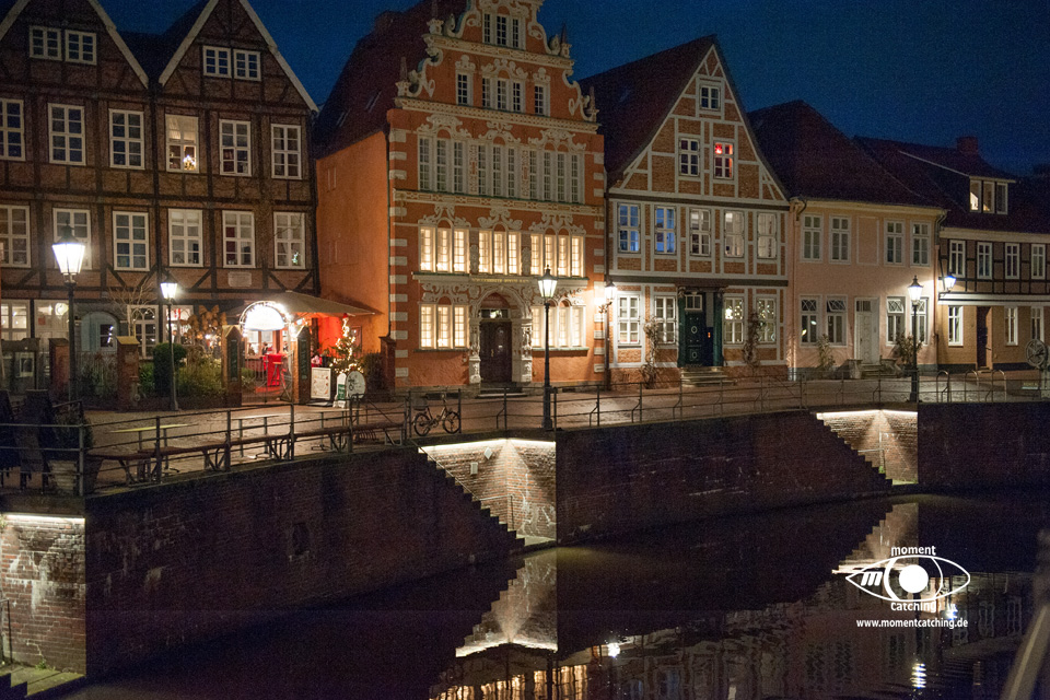 Gestern Abend hat es angefangen zu regnen, wobei es teilweise schon wolkenbruchartig war. Als wir aufgestanden sind hat es mal kurze Zeit nicht geregnet. Brötchen gab es heute wieder aus dem Vorrat. Vor der Abfahrt haben wir Grauwasser abgelassen und Frischwasser gebunkert. Unser Weg nach Hitzacker führte an Lüneburg vorbei auf die B4 und dann auf die L216 in Richtung Danneberg. In Hitzacker war es relativ leer. Unser Womo war wieder schnell zugedeckt und nach einer heißen Tasse Tee sind wir in den Ort gelaufen. Hitzacker hat zwar keinen Weihnachtsmarkt aber der Ort ist weihnachtlich geschmückt und immer einen Spaziergang wert. Beim Bäcker haben wir uns Kuchen fürs Kaffeetrinken besorgt und jede Menge 2,-€-Stücke für den Elektroautomaten. Wir sind sogar trockenen Fusses im Womo wieder gelandet. Am Horizont zeichnete sich aber schon der nächste Wolkenbruch an. Der kam auch 10 Minuten später mit ziemlicher Heftigkeit. Susanne hat ihren Fernseher lauter gestellt weil es so laut prasselte. Es war auch etwas Hagel dabei. Den Rest des Abends hat es geregnet, mal mehr oder weniger. |