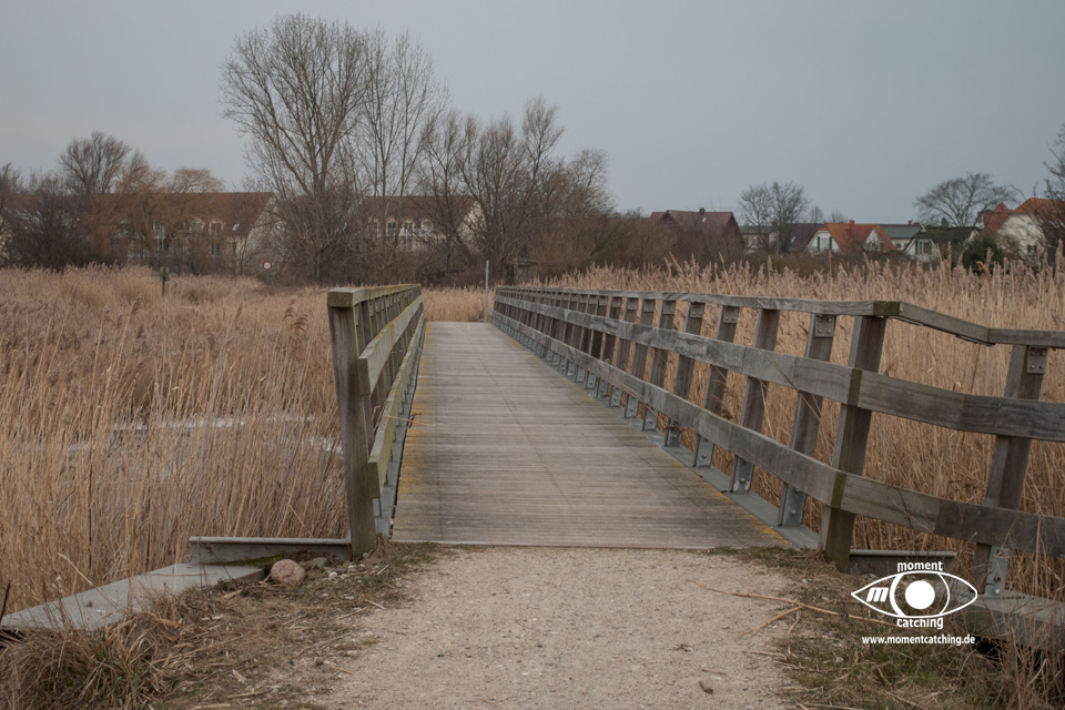 Das andere Womo ist wohl heute Morgen gegen 6:00 Uhr wieder abgefahren. Ich habe nur das Starten des Motors gehört. Heute hatte ich keinen weiten Weg zu den Brötchen. Tolles Frühstück mit frischen Brötchen. Nach dem Frühstück haben wir uns auf den Weg nach Kirchdorf gemacht. Obwohl es nur -1° C draussen waren, haben wir es als bitter Kalt empfunden. Der eiskalte Ostwind pfiff durch die kleinste Ritze unserer Kleidung. Trotzdem war der Spaziergang nach Kirchdorf durch den Schilfgürtel sehr schön. Auch im Winter ist die Natur sehenswert und interessant. Im Hafenbecken sammeln sich hunderte von Teichrallen, Enten und Schwäne. Leider war die Kirche in Kirchdorf verschlossen. Das fällt uns speziell in Mecklenburg Vorpommern auf, dass hier die Kirchen meistens verschlossen sind. Über das warum rätseln wir. Das Museum hatte gerade um 12:00 Uhr zugemacht. Die Touristeninfo hat am Samstag erst gar nicht offen. Es ist halt Winter und es sind offensichtlich kaum Touristen da. Wir haben uns dann erfolglos wieder auf den Rückweg zu unserem Womo begeben. Den Rest haben wir in unserem warmen, kuscheligen Womo verbracht. Heute blieb unsere Sicht nach Kirchdorf erhalten. Zum Abendbrot haben wir den Rest Räucherfisch gegessen. |