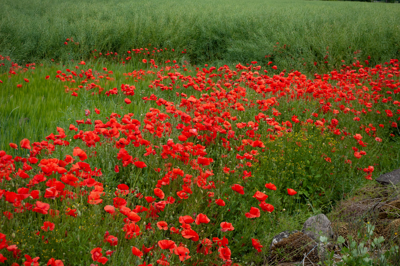 Heute war der Himmel am Morgen durchwachsen und es waren nur noch 18°C. Also lange Hosen und Strümpfe für die Radtour. Von Norra Möckleby sind wir auf der Landstraße Richtung Westen gefahren. Das war mit Abstand die am meisten befahrene Landstraße auf Öland, fast so wie in Deutschland. Unser Ziel Graburg liegt ca. 1 km von dieser Straße Richtung Norden entfernt. Die Burg ist eigentlich nur noch eine Wiese mit einer Mauer. Die Ruine der St. Knut Kapelle lässt mit etwas Fantasie noch Vorstellungen aufkommen, wie es früher hier mal aussah. Da wir Angst hatten, dass unser Brotvorrat nicht reicht, hofften wir eigentlich unterwegs ein Lebensmittelgeschäft zu finden. In der Butik sagte uns aber die nette Dame, dass es erst kurz vor Färjestaden ein Geschäft gibt. Das wären nochmal 6 km weiter westwärts. Wir haben uns entschlossen es zu machen, da wir für den Rückweg eine Abkürzung nehmen wollten. Kurioserweise haben wir auf dieser mächtig befahrenen Straße mehr Tiere gesehen als in der tiefsten Wallachei. Susanne hat ein Reh beobachtet und ich habe eine Schlange gesehen. Das Geschäft war ein großer ICA. Der Rückweg von dort führte uns wieder durch sehr schöne Landschaft vorbei an Gräberfeldern. Beeindruckend waren die weitgestreuten Mohnblumenansammlungen an den Feldern. Das Rot leuchtet so richtig. Am Womo angekommen war Relaxen angesagt. Wir haben unseren herrlichen Ausblick genossen. Zum Abenbrot gab es die eingelegten Heringe mit Kartoffeln. Susanne hatte sie noch etwas verfeinert. |