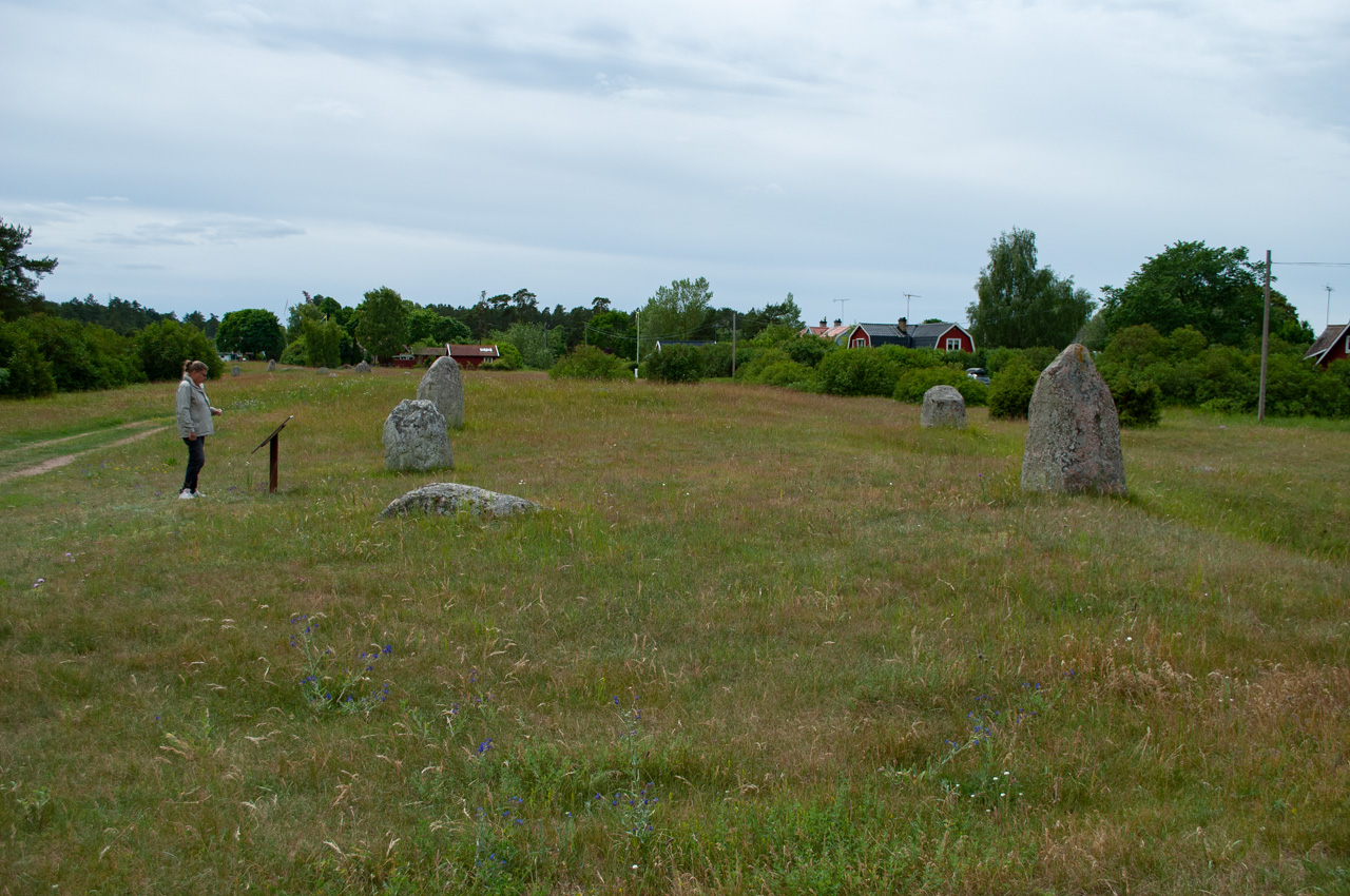 Unsere heutige Radtour führte uns über eine Schleife zurück an die Ostküste nach Sandbäck und Sandby. Dort haben wir die Kirche besichtigt. Susanne hat an einem Anschlag entdeckt, dass Morgen um 12:00 Uhr eine Mittsommerfeier stattfindet. Wir haben spontan beschlossen daran teilzunehmen. Unser nächstes Ziel war eine Rundtour durch das Alvaret. Das erste Teilstück war eine Schotterstraße. Dann musste man mit den Rädern über einen Elektrozaun. Da haben wir erst mal gezögert, weil man auf der anderen Seite auch nicht so richtig erkennen konnte wie es weiter geht. Ich bin ein Stück Probegefahren und habe festgestellt es geht. Es war etwas holprig aber sonst ganz gut. Der folgende Weg hat alle meine Vorstellungen von dieser Landschaft übertroffen. Das war ein superschönes Erlebnis. Etwa auf halber Strecke durch den Alvaret war ein Ruinendorf namens Wildes Dröstorp. Dieses Dorf hat vor mehr als hundert Jahren der letzte Einwohner verlassen. Wenn nicht so schönes Wetter gewesen wäre, wäre es sicherlich etwas gruselig gewesen. Die Rundtour endete in Gardby und von da ging es zurück zum Womo. Nach dem Kaffeetrinken hat sich der Himmel rapide zugezogen und es wurde windig. Das geplante Grillen haben wir auf morgen verschoben. Den Rest des Tages haben wir im warmen Womo verbracht. |