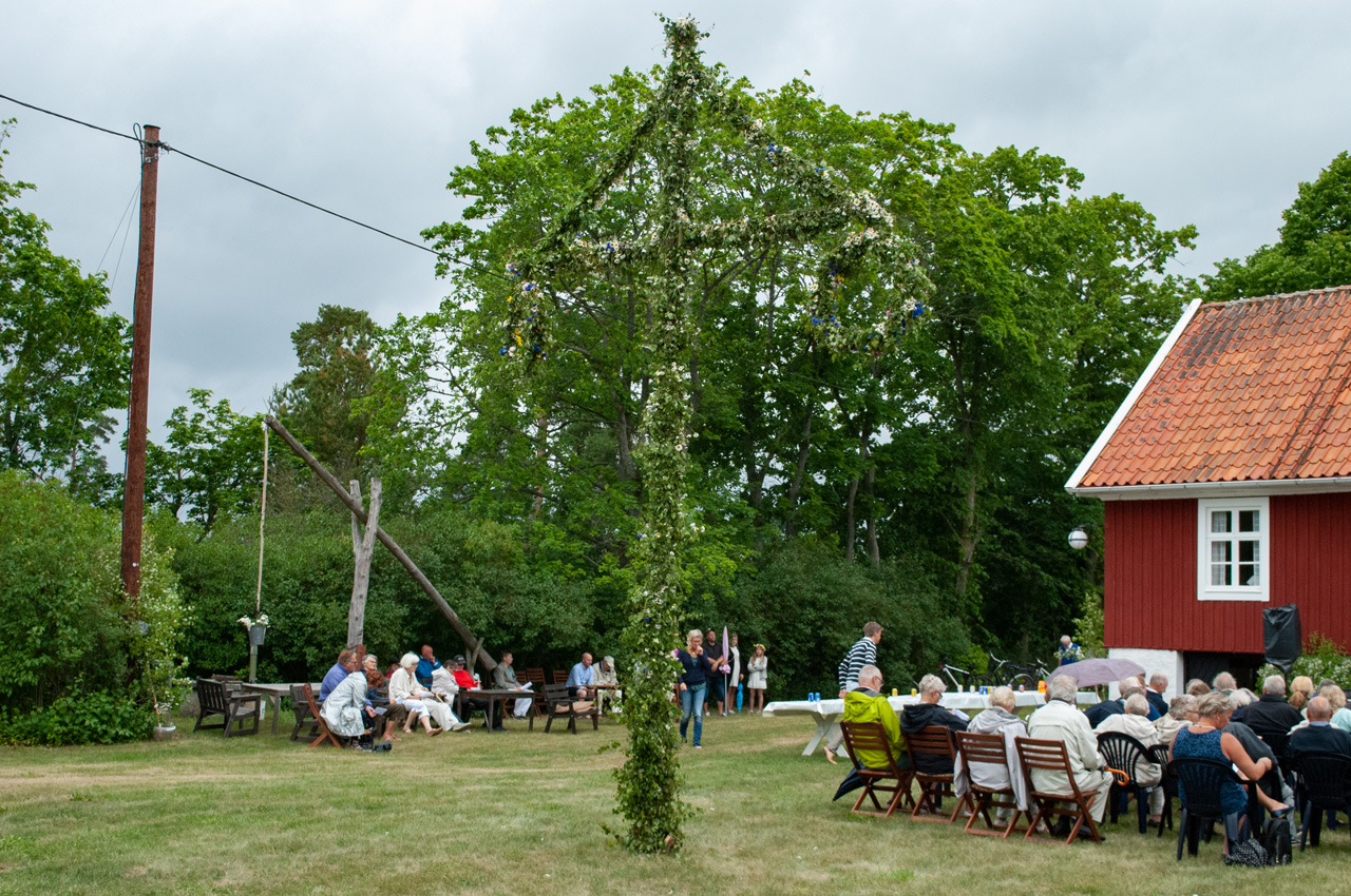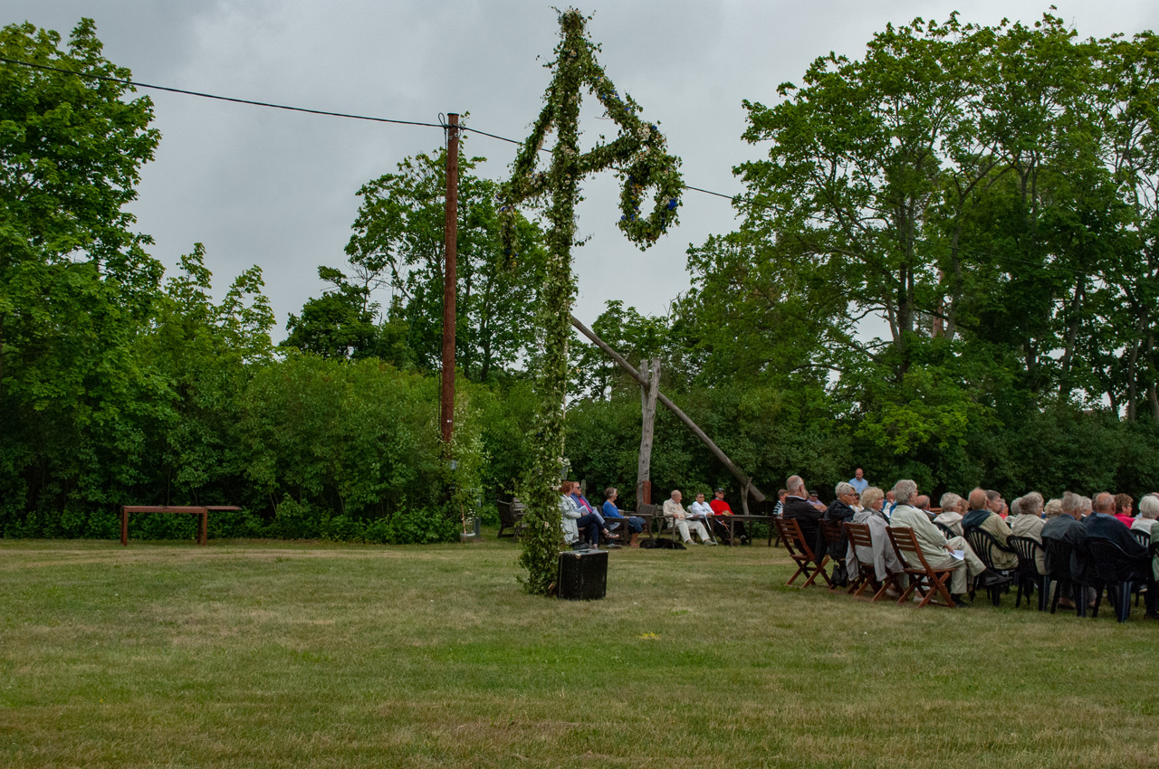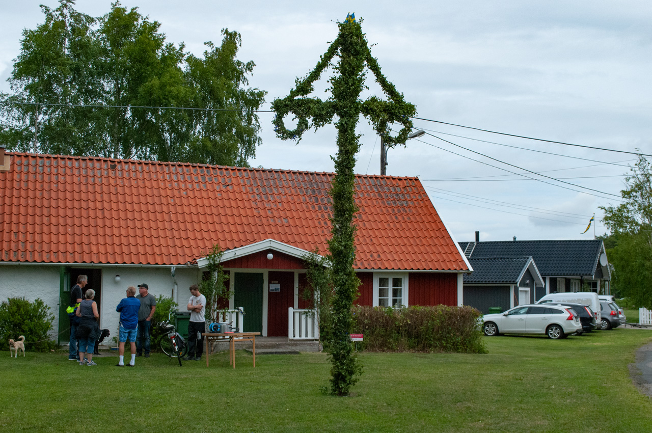 Heute sind wir trotz des bedeckten Himmels mit den Rädern nach Sandby gefahren. Wir waren schon gegen 11:30 Uhr an dem Platz vor der Kirche. Der Baum war schon aufgestellt und einige Leute räumten gerade noch auf. Als sich Susanne den Aushang nochmals ansah, entdeckte sie, dass der Veranstaltungsort Norra Möckleby ist. Also marsch, marsch wieder zurück und genau in die entgegengesetzte Richtung. Dort haben wir aber nichts gefunden. Ein schwedisches Ehepaar informierte uns, dass die Feier in Dörby stattfindet. Dass ist genau gegenüber wo wir von der Hauptstraße immer zum Hafen abbiegen. 12:05 Uhr waren wir dann endlich vor Ort. Die Veranstaltung war ein Gottesdienst unter freiem Himmel am Mittsommernachtsbaum. Nun wissen wir aber leider nicht ob das immer so ist oder ob nur diese Veranstaltung so war. Die war für uns nicht überzeugend. Ich habe meinen Mittagsschlaf trotz des bewölkten Himmels mal wieder draußen gemacht. Es war aber auch angenehm mild, trotz ruppigem Wind. Da es dann am späten Nachmittag wieder mal regnete, haben wir das Grillen nochmals verschoben. |