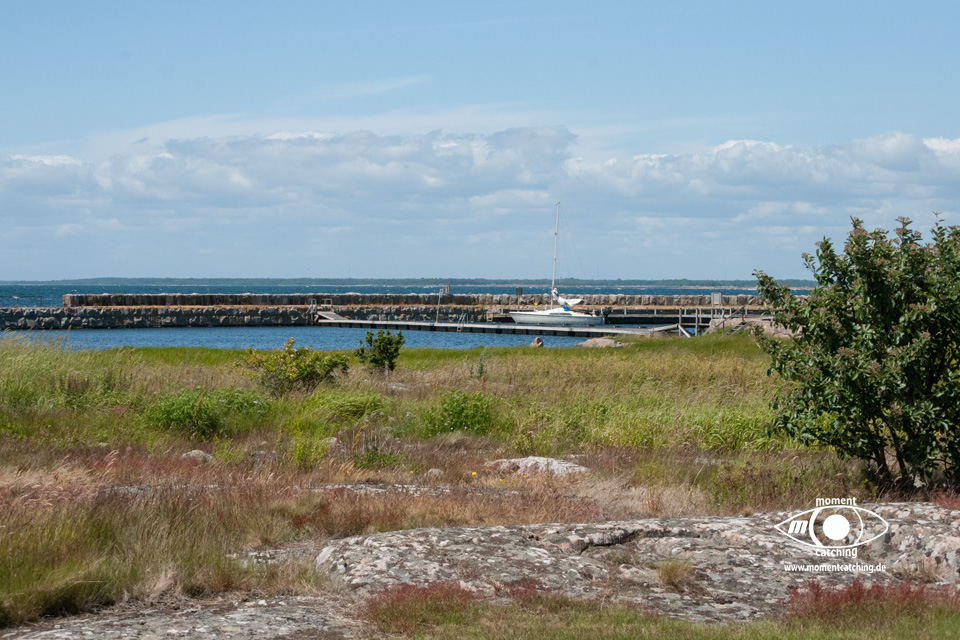 Heute am Morgen wehte wieder ein sehr heftiger Wind frontal auf unser Womo. Dunkle Wolken verrieten nichts Gutes. Wir sind gestartet ohne Regenerierung unseres Womos. Als wir auf die Kalmarsundbrücke zufuhren, wurde der Verkehr dichter. Man konnte den Eindruck gewinnen, dass alle Öland verlassen wollen so voll war es. Über die 6 km lange Brücke ging es nur im Stop-and-Go Rhythmus voran. In Kalmar haben wir am ICA und Lidl einen Zwischenstopp eingelegt. Wir haben uns mit frischen Lebensmitteln versorgt, weil wir in Sandhamn keine Einkaufsmöglichkeit erwarten. Kurz hinter Kalmar war eine Baustelle wo man sich frühzeitig für eine rechte oder linke Spur entscheiden musste. Wir haben uns für die rechte Spur entschieden, was natürlich falsch war. Nach einem ganzen Ende konnten wir endlich wenden und mussten nun die ganze Strecke wieder zurück. Das hat uns gute 20 km gekostet. In der Zwischenzeit hat es auch angefangen zu regnen. Das war so richtiges Hundewetter. Kurz vor unserem Ziel hörte es auf zu regnen und der Himmel zeigte erste blaue Lücken. Den Stellplatz haben wir gut gefunden. Als wir hier ankamen, war etwa die Hälfte der Stellplätze besetzt. Innerhalb der nächsten halben Stunde füllte sich der Platz kräftig. Wir haben wieder einen unverbaubaren Platz mit Blick auf den Hafen und die Ostsee. In dem Hafen gibt es ein kleines Restaurant. Das haben wir zum Abend aufgesucht. Wir haben dort sehr gut gegessen. Es war dieses mal etwas teurer, aber so oft gehen wir ja nicht essen und ich hatte Appetit auf Fisch. | |