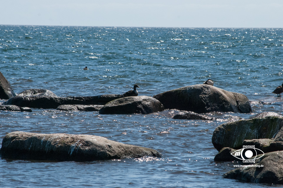 Der Wetterbericht versprach für heute einen Tag ohne Regen und mit 19°C Tagestemperatur. Da war es klar, dass wir zur nächsten Radtour starten. Auf Öland fährt es sich gut Rad, weil es kaum größere Höhenunterschiede gibt und die meisten Wege, und sind sie noch so schmal, asphaltiert sind. Erstes Ziel war Rosendal, das größte, in seinen Grundmauern noch erhaltene Eisenzeitdorf Nordeuropas. Es ist eine einzige Steinwüste und man braucht viel Fantasie um etwas zu erkennen. Durch die überall aufgestellten Bildtafeln blickt man, mit etwas Geduld, dann doch durch und kann sich vorstellen, wie das vor 1600 Jahren hier zuging. Nächstes Ziel sollte Stora Mossed (großes Moor) sein. Das haben wir aber nicht gefunden. Spätestens in Enerum mussten wir einsehen, dass wir Stora Mossed verpasst haben. An der dortigen schiffsförmigen Steinzetzung erinnerten wir uns, dass wir schon einmal hier waren. Jetzt wurde uns auch die Nähe zu Byxelkrok bewußt. Kurzehand haben wir uns entschlossen nun das Stück bis Byxelkrok auch noch zu fahren. Hier hat sich gegenüber unserem Besuch von vor vier Jahren nichts geändert. Aber zumindestens war hier auch schon etwas Leben im Ort. Es ist ja auch ein recht schöner Ort durch die Hafenanlage. Für den Rückweg haben wir uns auf einen Radweg entlang der Küste vom Kalmarsund entschieden. Das war richtig gut, weil man von diesem Weg eine herrliche Aussicht auf den Kalmarsund hat. Den Nachmittag über haben wir vor dem Womo gesessen und die schöne Aussicht genossen. In der Sonne war es richtiges, kurzärmeliges Wetter gewesen. Zum Abendbrot haben wir den Rest unseres Räucherfisches vertilgt. Ein drolliges Erlebnis hatten wir an diesem Abend noch. Susanne entdeckte, dass das erste Küken von der brütenden Möwe auf dem Steg herumlief. Wir haben dann gesehen, dass nur noch ein Ei nicht geschlüpft ist. Jetzt brauchen nur noch die Schwanenküken schlüpfen, dann wäre das Glück für Susanne komplett. Spannend wäre jetzt zu sehen, wie es mit den Küken auf dem Steg weitergeht. |