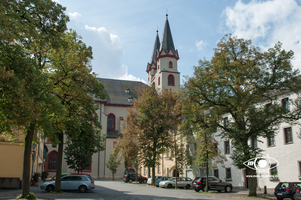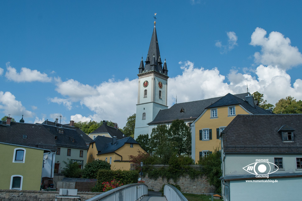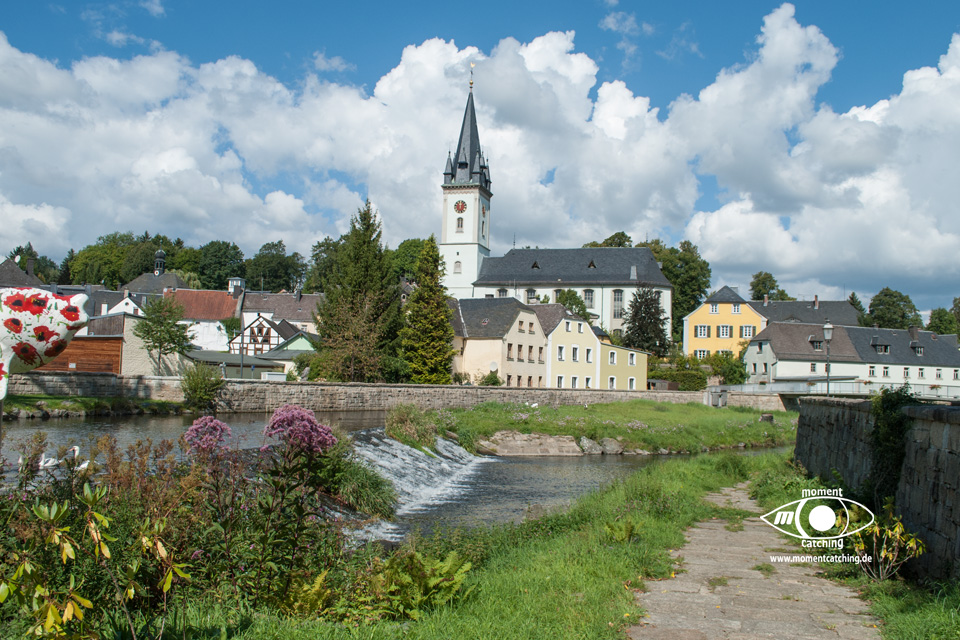 Nach dem Frühstück sind wir mit den Rädern nach Hof gefahren. Weil wir nicht gleich den richtigen Radweg gefunden haben, entstand ein kleiner Umweg. In Hof war es nicht einfach uns zurecht zu finden, da wir keinen Stadtplan hatten. Die Touristeninfo war natürlich zu, da es Sonntag war. Unsere Begeisterung von Hof hielt sich in Grenzen. Es gibt zwischendurch sehr moderne Gebäude. Irgendwie fehlt hier der Charme. Durch den Sonntag war es auch ziemlich leer. Den Rückweg haben wir leichter gefunden. Er war auch etwas kürzer und führte eigentlich immer fast der Saale entlang. Nun wussten wir auch was wir beim Hinweg falsch gemacht haben. Wir haben uns noch Oberkotzau etwas angessehen. |