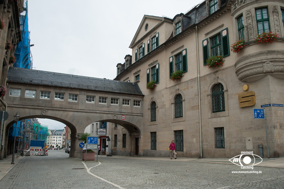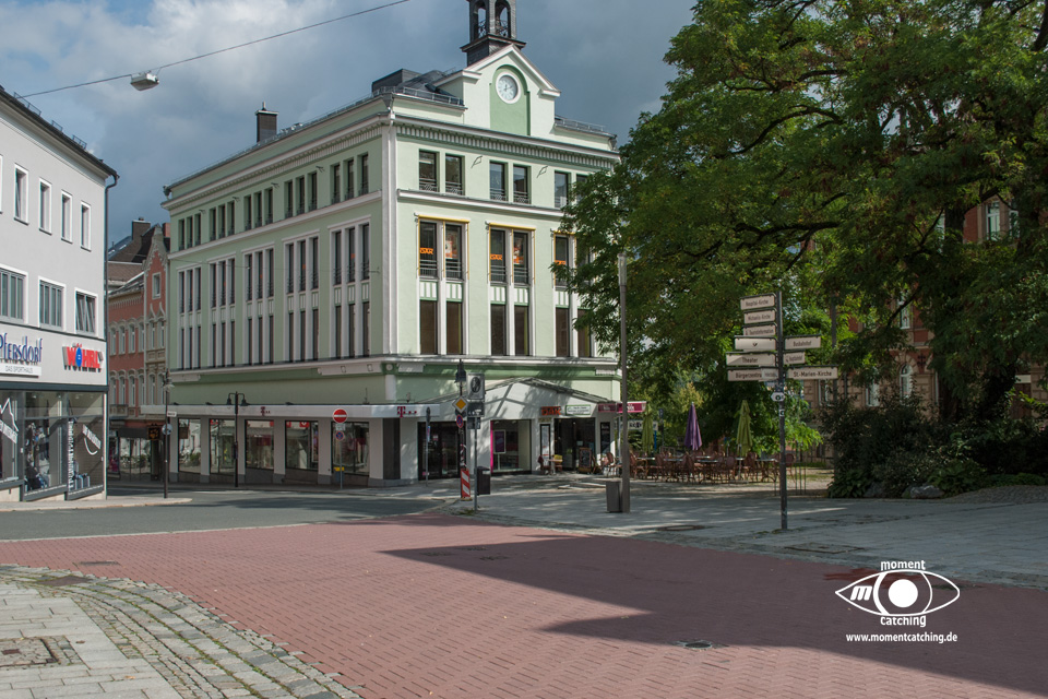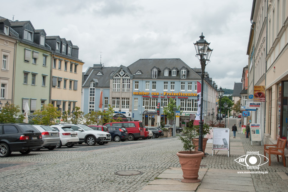 Heute Nacht hat es nochmal zwischendurch geregnet. Jetzt am Morgen war es trotz grauem Himmel trocken. Nach dem Frühstück sind wir auf den Campingplatz duschen gewesen. Wir hatten Glück, dass gerade jemand heraus kam. Eigentlich braucht man nämlich einen Transponder. Das hatten wir gestern nicht gemerkt, weil die Tür offen stand. Trotzdem hat es auch so funktioniert. Auf dem Rückweg vom Duschen fing es endlich wieder an zu regnen. Gegen Mittag hörte es auf zu regnen und die Wolken wurden etwas dünner. Wir haben uns auf die Räder gesetzt und sind nach Plauen gefahren. Fast wie in Schweden, ständig rauf und runter. Die Altstadt ist recht überschaubar. Für die große Stadt hatten wir uns mehr vorgestellt. Am Womo angekommen gab es Kaffee. Zum Abendbrot hatte Susanne Hackmet in Plauen besorgt. Das war wieder ganz schön lecker. Auch am Abend blieb der Himmel dicht. |