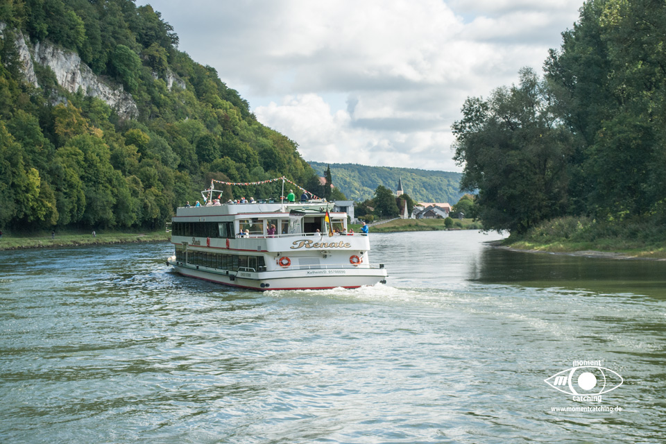 Heute blinzelte uns beim Aufstehen schon die Sonne mit wärmender Wirkung entgegen. Darum hat es sogar Spaß gemacht frische Brötchen zu holen. Nach dem Frühstück sind wir zu den Fahrgastschiffen gelaufen. Da die Donau hier kräftig strömt, dauert die Bergfahrt zum Kloster Weltenburg 40 Minuten und zurück nur 20 Minuten. Schön, dass es hinn so langsam ging, da konnte man diese herrliche Landschaft so richtig genießen. Der Bereich der Donau ist auch Landschaftsschutzgebiet und das wohl zu recht. Wir kamen aus dem Schwärmen gar nicht mehr heraus. Teilweise kam man sich vor wie in einem Fjord in Norwegen. Im Kloster haben wir uns nur die Kirche angesehen, eine superschöne Barockkirche in der wir heimlich entgegen dem Verbot doch einige Bilder machen konnten. Das Klostermuseum haben wir nicht besichtigt. Auf einer Anhöhe gibt es eine kleine Kapelle und ein Römerkastell. Susanne hat es vorgezogen eine Tasse Kaffee zu trinken. Ich bin den Berg hinaufgelaufen, was mir ehrlich gesagt auch nicht mehr so leicht gefallen ist. Nach meiner Rückkehr vom Berg sind wir zurück zum Fahrgastschiff gegangen. Am Womo angekommen haben wir nach langer Zeit mal wieder die Campingmöbel herausgeholt. Die Sonne schien so schön. Ich habe mal wieder Mittagsschlaf im Freien gemacht. Zum Abend sind wir nochmals zum Italiener gegangen. Heute hat Susanne eine Pizza gegessen und ich ein Schnitzel, Das sollte man aber nicht beim Italiener essen. Das war ein Schnitzel Wiener Art und ohne jede Würze. Aber die Pommis waren gut. |