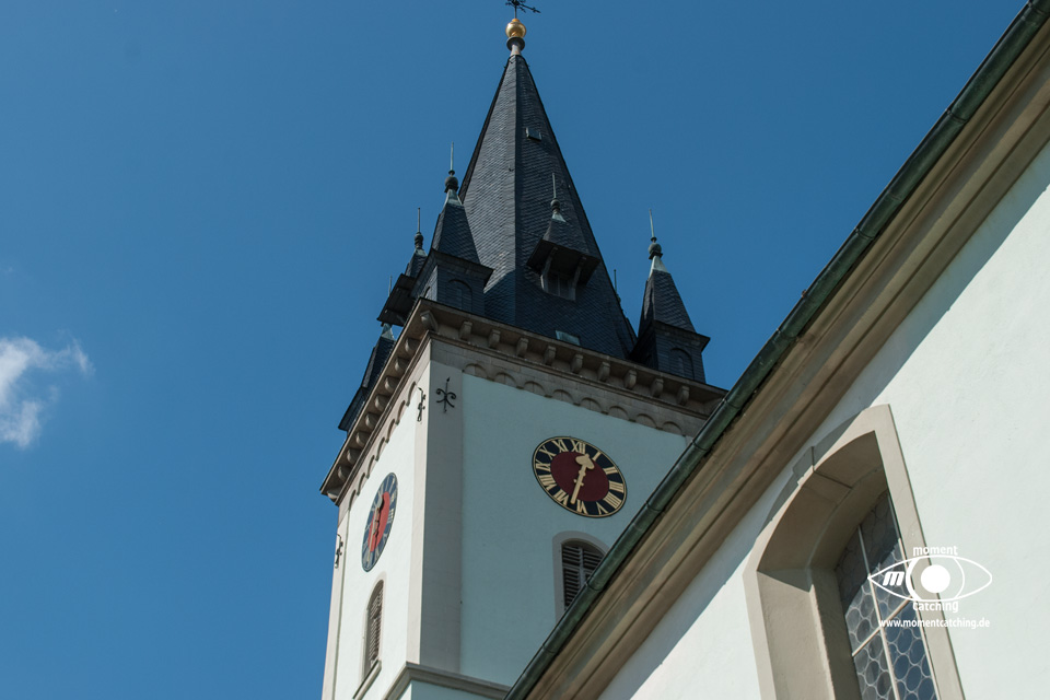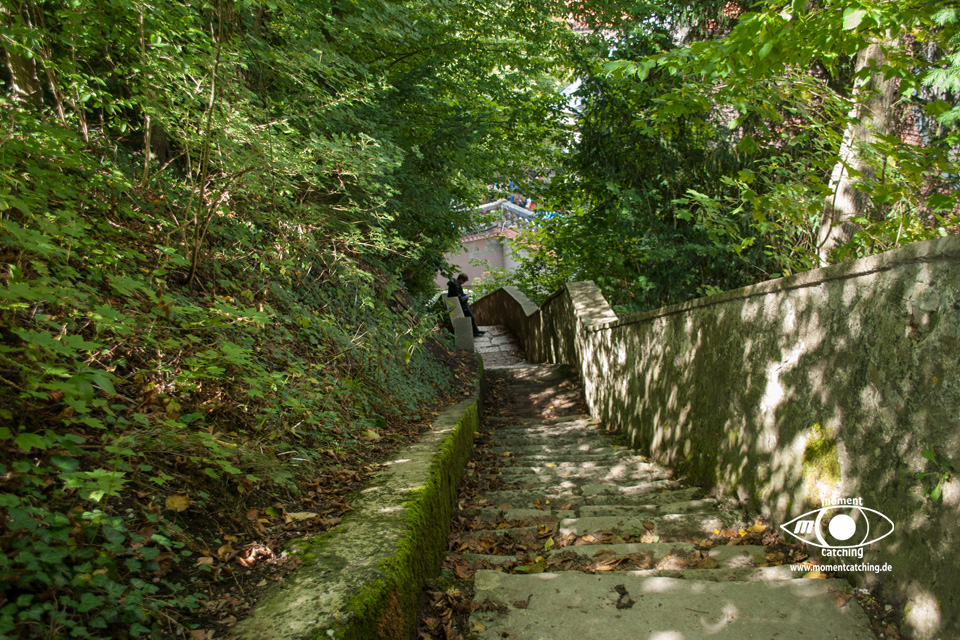 Heute habe ich uns wieder frische Brötchen von dem Bäcker im Netto geholt. Nach dem Frühstück habe ich nur die Toilettenkassette entleert. Danach sind wir gestartet. Das Navi hat uns einen klaren Weg gewiesen. Der überwiegende Teil der Strecke war wieder die Autobahn A93. Die war zwar ziemlich voll aber wir sind ohne Stau in Bad Abbach angekommen. Der Platz war trotz der 34 Plätze fast voll. Nach einem Kaffe sind wir in den Ort gelaufen. Den Fußgängerweg von der Therme in den Ort soll man laut Thermenmitarbeiterin auch mit dem Fahrrad nehmen können. Das hat sie wohl aber selbst noch nicht gemacht. Ein Glück waren wir zu Fuß. Der Rest des Weges besteht aus Treppen. Bis zum Bäcker ist es mir zu weit. Wir haben uns mit Brötchen und Kuchen eingedeckt. Die kleine Kirche war offen. Nach einer kurzen Runde durch den Kurpark sind wir zurück zum Womo. Diesmal auch einen besseren Weg. |