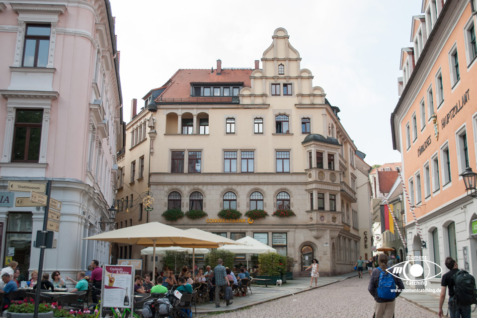 Das mit den Brötchen aus dem Schwimmbad hat gut geklappt. Nach dem Frühstück sind wir ins Schwimmbad gegangen um zu duschen. Nachdem man endlich kappiert hatte wie der Ablauf ist, war es ganz easy. Gegen 12.00 Uhr sind wir wieder in die Stadt gegangen. Wir sind dieses mal den Wallgraben entlang gegangen, also fast einmal außen herum. Danach sind wir schräg durch die Altstadt zu unserem Böhmischen Lokal gegangen. Ganz gegen unsere Gewohnheit haben wir dort gegessen. Ich habe ein Mittagsschnitzel für 5,99€ gegessen und Susanne hat ihre geliebten Liwanzen mit einer riesigen Vanilleeiskugel gegessen. Auf, dass wir fett werden. Auf dem Rückweg hat sich Susanne bei einem Räumungsverkauf noch zwei kurze Hosen gekauft und ich zwei langärmelige Shirts und Socken. Für Rosemarie haben wir als Mitbringsel einen Herrenhuter Stern gekauft. Nachdem wir alles im Womo abgeladen haben, sind wir noch in den kleinen Tierpark gegangen. Na ja, ist auch nicht wirklich aufregend gewesen. Am Ende des Parkes haben wir uns getrennt. Susanne ist zum Womo zurück. Ich bin weiter gelaufen zu dem Freibergsdorfer Hammer. Das war dann die nächste Enttäuschung. Der ist nur noch nach Voranmeldung über einen Verein zugänglich und dann auch nur an Wochenenden. Am Womo wieder angekommen war ich froh von Susanne mit einem schönen kalten Bier empfangen zu werden. Es war schon wieder um die 27°C und man war über jede Erfrischung froh. Am Nachmittag kam ein Womo aus Lörrach auf den Stellplatz und der Mann davon sprach uns an und fragte nach den Abläufen auf diesem Platz. Sie stellten sich dann direkt hinter uns. Gegen Abend fragten sie nach einer guten Gaststätte im Ort. Wir boten ihnen an mit uns zu kommen in das böhmische Restaurant. Sie willigten sofort ein und so zogen wir gemeinsam los. Auf dem Weg haben wir uns nett unterhalten und stellten dabei fest, dass wir viele gleiche Ansichten hatten. Während des Essens boten sie uns das Du an und wir erzählten uns gegenseitig fast unsere ganze Lebensgeschichte. Er hat als Elektroingenieur gearbeitet, sie ist Kanadierin und hat als Lehrerin gearbeitet. Am Womo wieder engekommen, haben wir uns auf Morgen früh vertagt. Er wollte von Susanne ein halbes Brötchen mit Marmelade haben und mir wollte er noch etwas von seiner WLAN-Technik zeigen. |