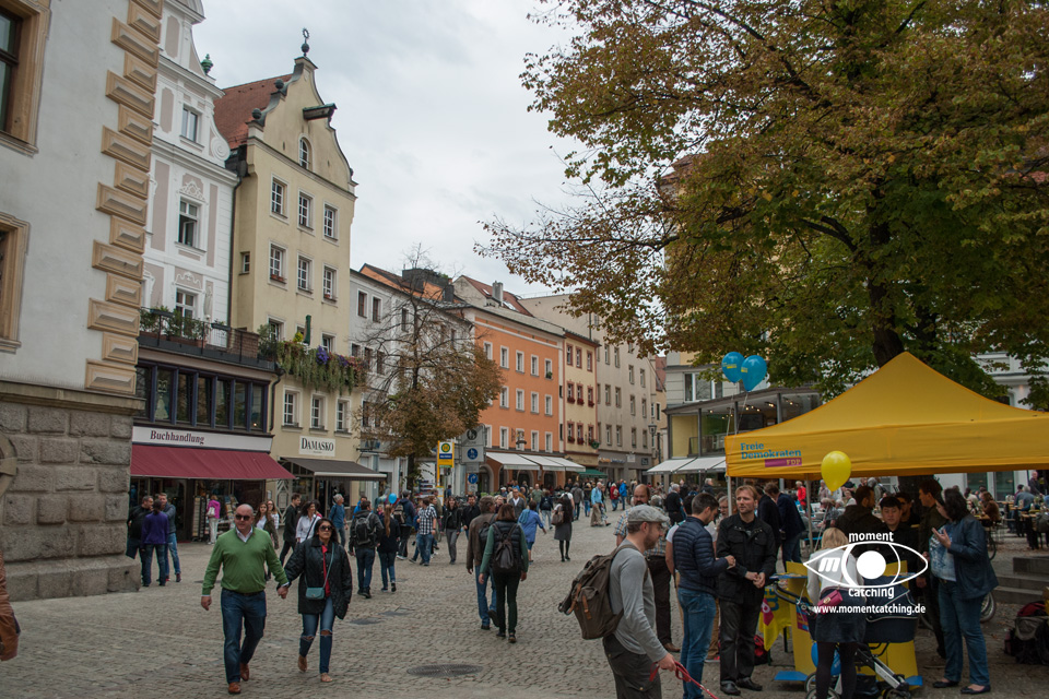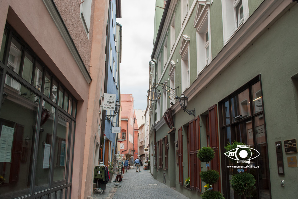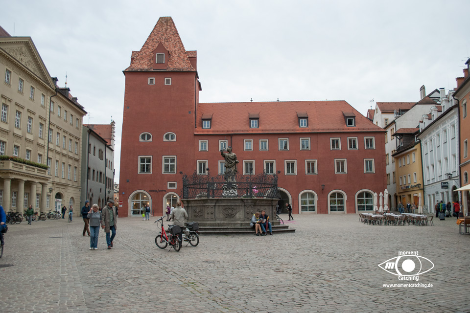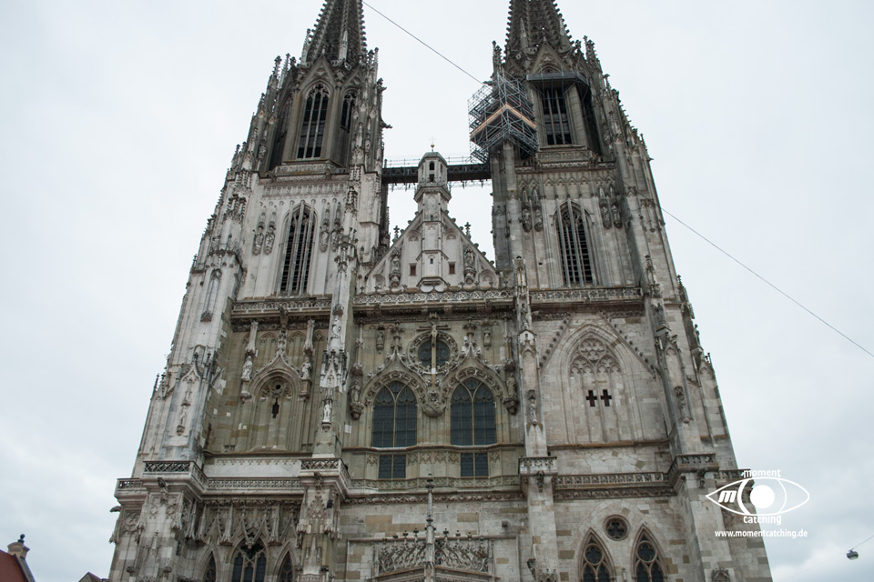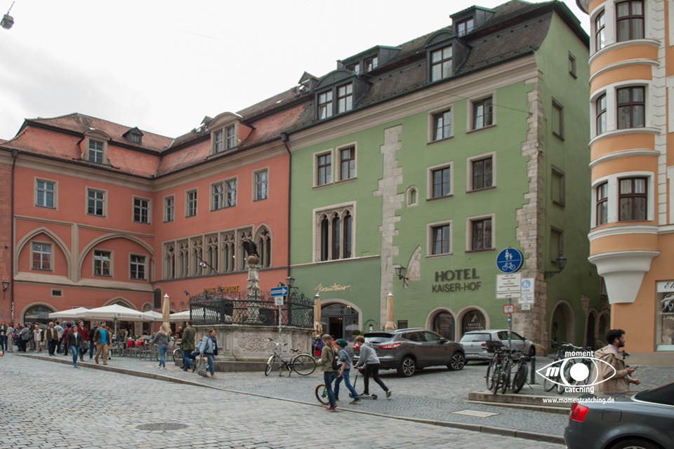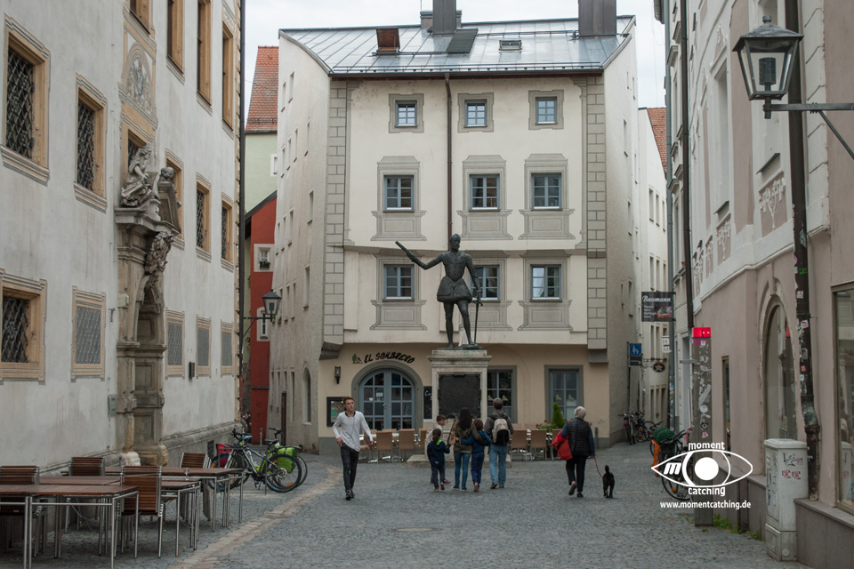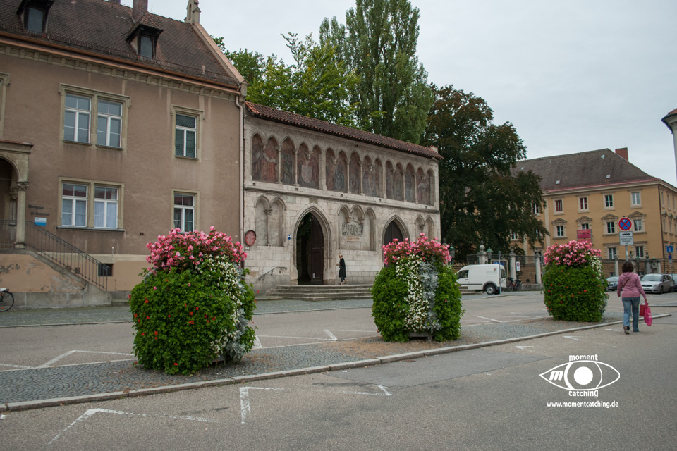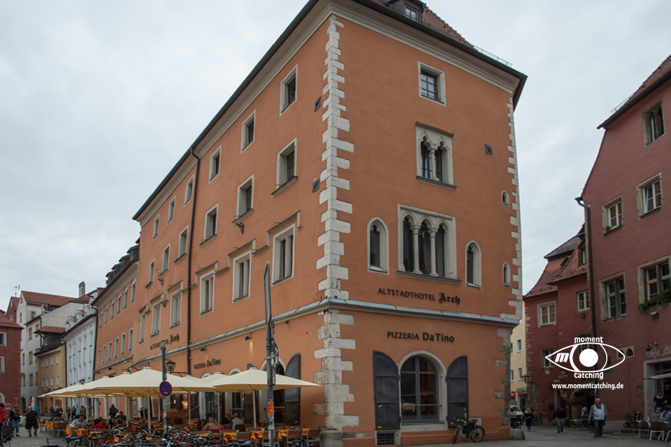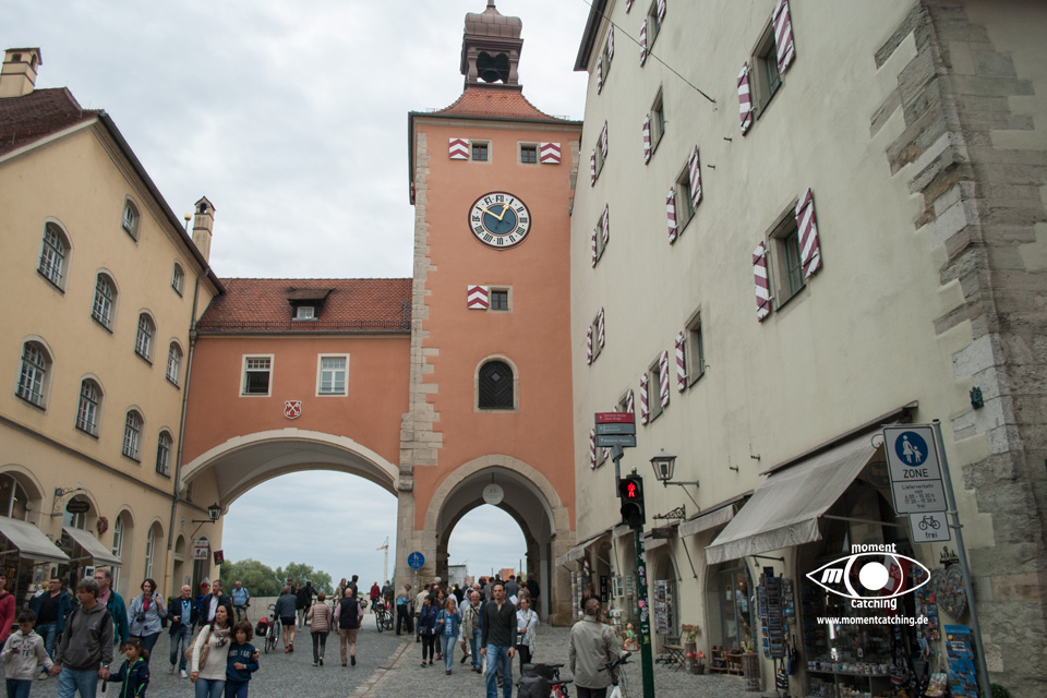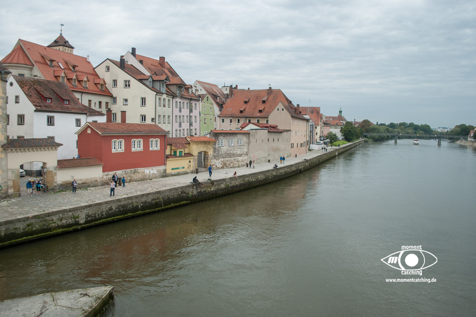 Nach dem Frühstück haben wir die Räder gesattelt. Susanne wollte schon heute nach Regensburg. Der Wetterbericht prognostizierte erst ab 18:00 Uhr Regen. Um keine Steigungen fahren zu müssen, haben wir uns für den längeren Weg entschieden. Als wir im Ort das erste Fahrradhinweisschild nach Regensburg sahen, bekamen wir einen Schreck. Dort stand 18 km. Nicht schlecht, aber Susanne meinte machen wir. Der Weg führte immer an der Donau entlang und war überwiegend asphaltiert. Aus den 18 km wurden dann aber 22 km bis wir an der Altstadt waren. Dort tobte das Leben. Die ohnehin überwiegend kleinen Gassen quollen regelrecht über und wir hatten teilweise Probleme mit den Fahrrädern durchzukommen. Die Touristeninfo im alten Rathaus haben wir schnell gefunden, Dank des Stadtplanes den wir schon aus Oberkotzau mitgebracht haben. Vor dem Rathaus war gerade Tauben aufsteigen lassen für ein Hochzeitspaar. An der steinernen Brücke haben wir eine Bratwurst aus der Hand gegessen von der historischen Wurstküche. Das war schon etwas Besonderes, da mit Sauerkraut im Brötchen. Susanne musste dafür auch lange anstehen. Regensburg ist schon eine schöne Stadt und das scheinen nicht nur wir so zu sehen, denn man hört fast alle Sprachen der Welt um sich herum. Aber wir haben uns hier sehr wohl gefühlt und es gab viele interessante Dinge zu sehen. Vor der Heimfahrt sind wir in ein Kaffee am Haidplatz eingekehrt. Dort gab es leckeren Kuchen und Kaffee. In der Zwischenzeit hat es wohl draußen mal kurz geregnet, unsere Räder waren nass und man sah offene Schirme. Für den Rückweg haben wir uns auch für den steigungsfreien, aber längeren Weg entschieden. Der Himmel drohte während der gesamten Fahrt mit Nässe und über einige Kilometer des Weges hat er es sogar wahr gemacht mit dem Regen. Aber wir waren noch nicht einmal nass. Am Womo angekommen hatten wir 49,8 km auf dem Fahrradcomputer. Susanne war auch so fertig, dass sie nicht mal mehr essen gehen wollte. Schließlich hatten wir heute Hochzeitstag. Zum Abendbrot fing es dann an richtig an zu regnen und hörte erst kurz vor dem Schlafengehen auf. Es wurde auch wieder ziemlich kühl. |