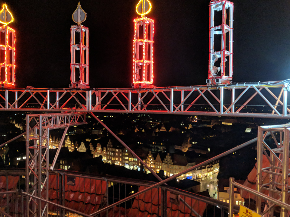 Wir haben heute das Salinemuseum in Lüneburg besichtigt. Eine sehr gut präsentierte Ausstellung mit guten Animationen. Es ist faszinierend, wie wenig man doch von der Herstellung weiß. Vom Salinemuseum in Lüneburg gibt es eine Dauerausstellung, die das Leben in den 50´gern zum Thema hatt. Wir waren sehr angetan von dem Museum, weil wir dort sehr viele Dinge aus unserer Jugend wieder entdeckt haben. Wir haben den Wasserturm von Lüneburg besichtigt. Da es einen Aufzug gibt konnten wir beide nach oben fahren. Dort hat man einen schönen Ausblick auf die Lichter der Stadt. Susanne ist mit dem Aufzug wieder herunter gefahren, ich bin gelaufen. Man steigt mitten durch den ehemaligen Wasserbehälter aus Stahl. |