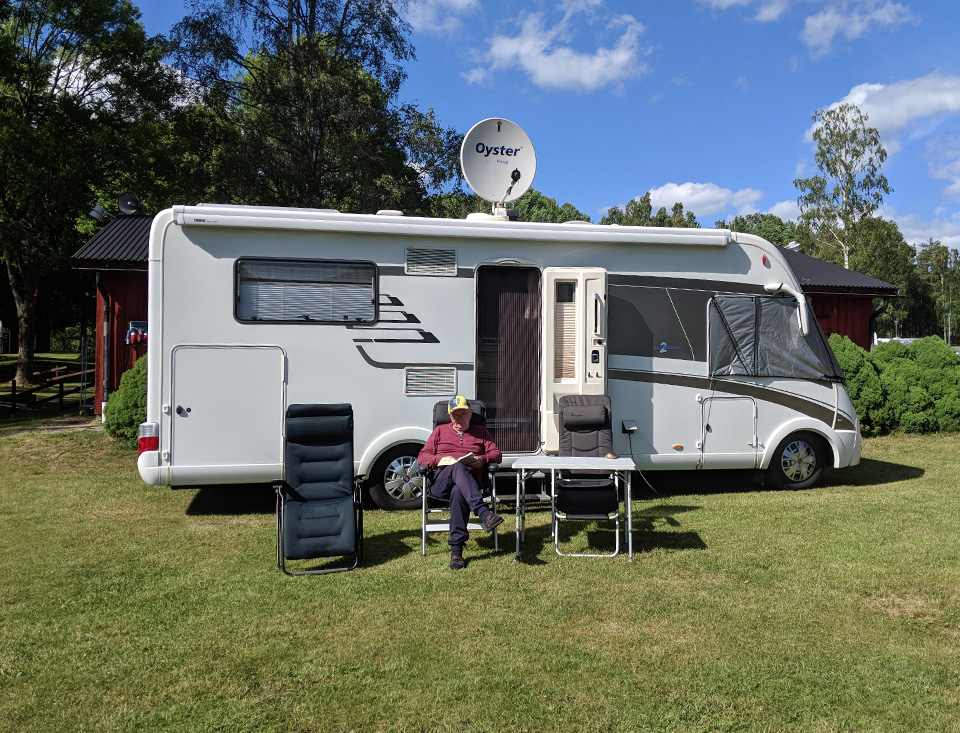 Die Schweden bereiten sich auf die Mitsommerfeierlichkeiten vor. Es ist Freitag und der Platz hat sich heute im Laufe des Tages richtig gefüllt. Nun sind auch fast alle reservierten Plätze besetzt. In unserer unmittelbaren Nähe steht ein großes Hymermobil aus Schweden. Die bauen ein Vorzelt über fast die gesamte Länge des Mobils auf. Da wird es bald recht lustig werden. Am späten Nachmittag lief das WM-Spiel Deutschland gegen Schweden. Obwohl die deutsche Mannschaft bisher nicht sonderlich erfolgreich war, hat sie ausgerechnet heute gegen Schweden gewonnen. Wir haben eine Flasche Schnaps genommen und sind zu den Schweden mit dem Vorzelt gegangen und haben ihnen einen Schnaps angeboten als Schmerzensgeld. Das kam, glaube ich, ganz gut an. |