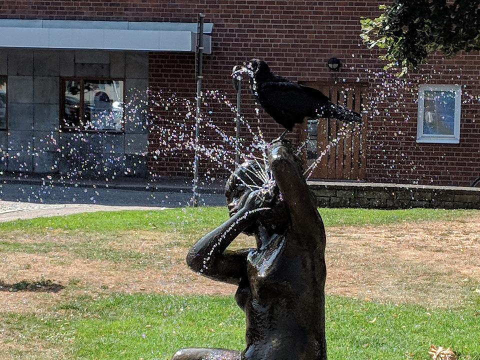 Wir sind auf dem Stellplatz am Yachthafen in Ystad eingetroffen. Wir stehen auf Platz C3. Es gibt ein ungewöhnliches Prozedere für den Zugang. Erst freien Platz aussuchen und mit der Nummer zum Hafenmeister. Bezahlen und Tally-Card empfangen. Mit der Tally-Card kann man die Schranke öffnen und auf den Platz fahren. Sie ist auch für den Strombezug. Es gibt aber nur an 14 Plätzen Strom. Der Platz ist nichts für empfindsame Nerven. Man steht direkt an der viel befahrenen Bahnstrecke. Wir haben einen Spaziergang durch den Hafen gemacht. Wir schwelgten in Erinnerung an die Selektra. Der Yachthafen hatte noch viele freie Plätze. Der Badestrand war gut gefüllt. Der Fährhafen, die meisten Fähren gehen hier nach Polen, scheint zu leben. Hier ist ein ständiges Kommen und Gehen. Vor dem Kunstmuseum in Ystad steht ein Springbrunnen. Ich musste länger hinschauen, um zu erkennen, dass der Rabe nicht zum Springbrunnen gehört. Das ist wohl der irren Hitze geschuldet. Da fangen sogar die Vögel an zu spinnen. |