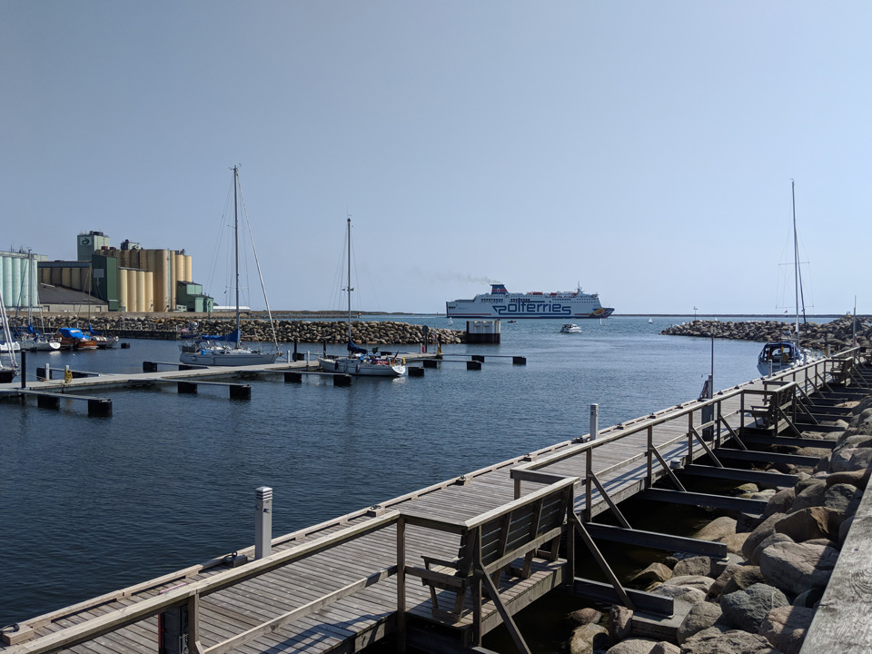 Wir haben den Stellplatz Nogersunds Hamn in Nogersund erreicht. Wir stehen mit dem Heck direkt zur Hanöbucht und blicken auf die Insel Hanö. Das ist wieder ein Platz nach unserem Geschmack. Es ist zwar immer noch sehr warm, aber durch den frischen Seewind lässt es sich gut aushalten. Viel angenehmer als auf dem heißen Asphalt in Karlskrona. Der Hafen ist ziemlich groß und es gibt hier auch noch Fischer. |