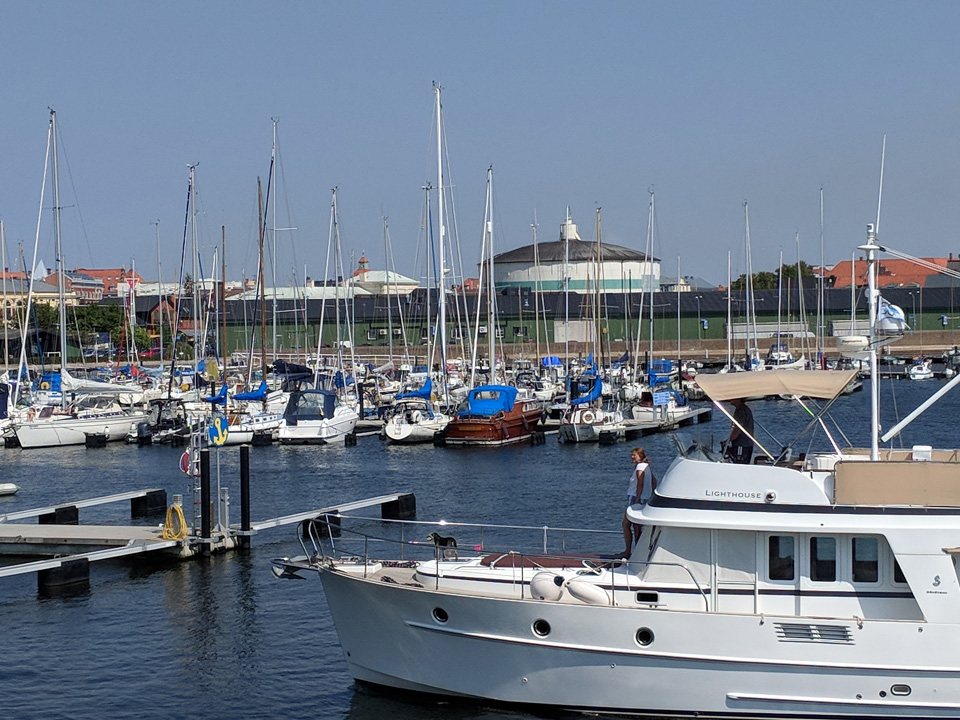 Wir haben den Stellplatz am Yachthafen in Karlskrona erreicht. Die Stellflächen an der Kaimauer waren bereits alle besetzt. Wir haben uns in zweiter Reihe gleich an der Zufahrt hingestellt. Hier kann sich keiner mehr davorstellen. Es gibt in der Zwischenzeit weit aus mehr als nur 24 Plätze. Allerdings sind die dann ohne Strom. Das Sanitärgebäude ist gute 200 Meter weit entfernt. Die Entsorgung gute 1,5 km und nicht einfach frei zugänglich. Somit unbrauchbar. Wir haben eine erste Stadtbesichtigung in Karlskrona gemacht. Unter anderem waren wir an dem jetzt fertiggestelltem Marinemuseum mit dem U-Boot- Bereich. In der Stadt wird gerade ein Rummel aufgebaut. Hier findet jetzt 6 Tage lang das Schärengartenfest statt mit vielen Künstlern. Wir sind die Fuzo entlanggelaufen. Die Hitze in der Stadt ist nach wie vor sehr anstrengend. Wir waren froh wieder am Womo zu sein. |