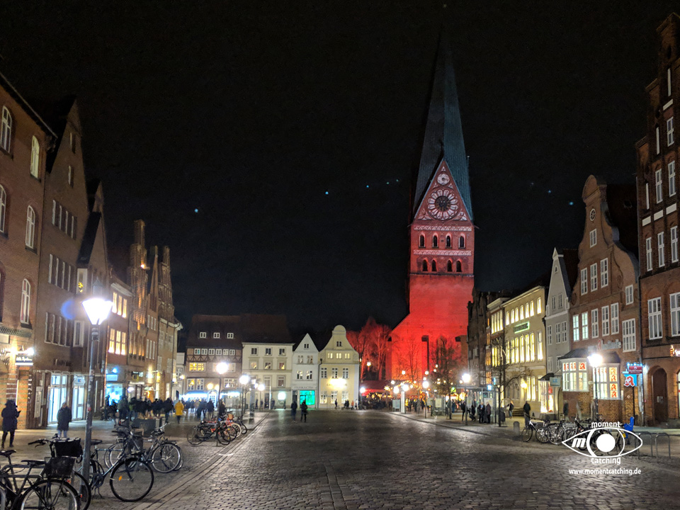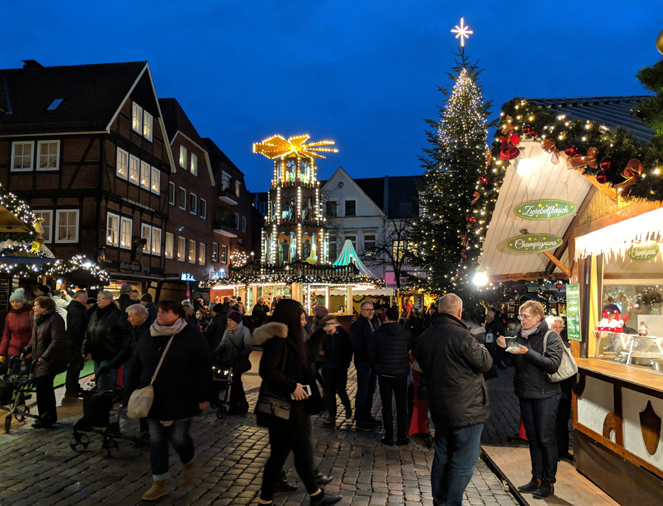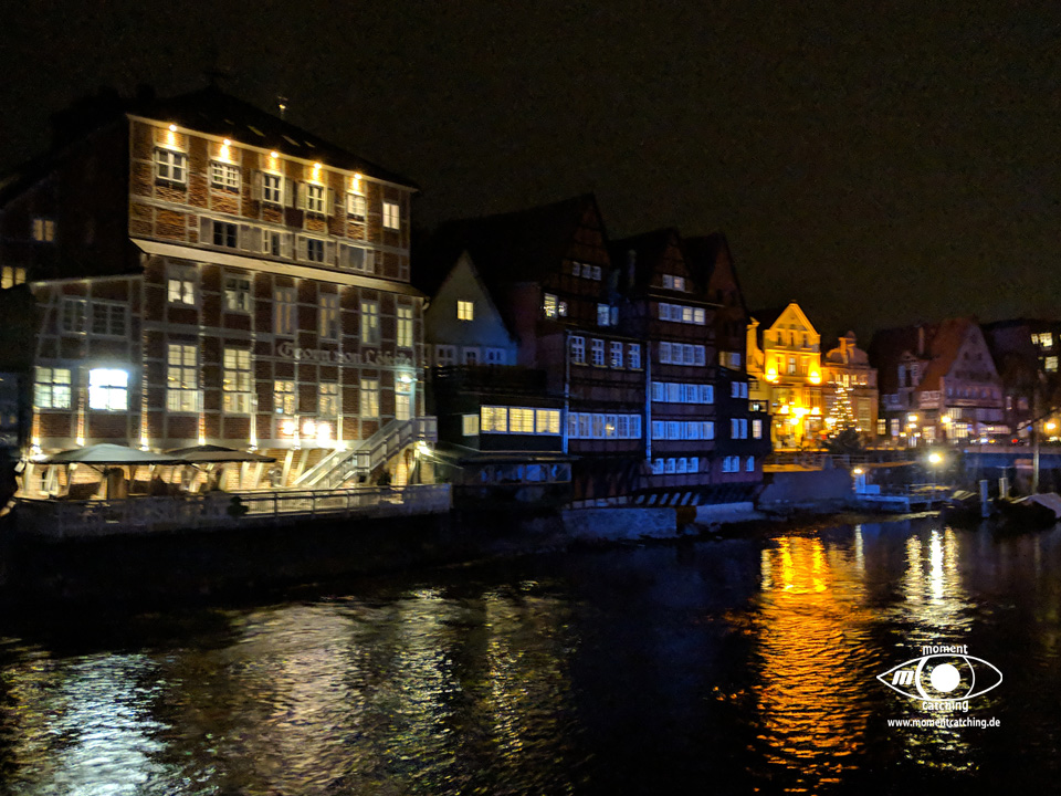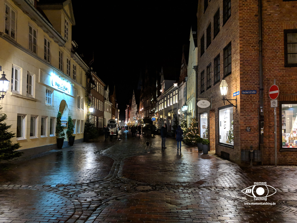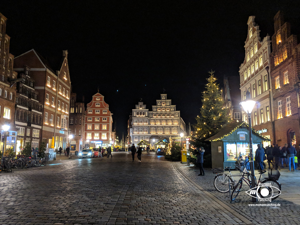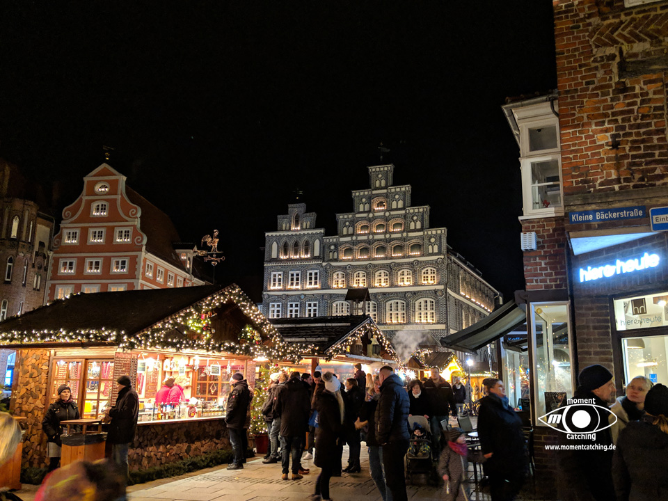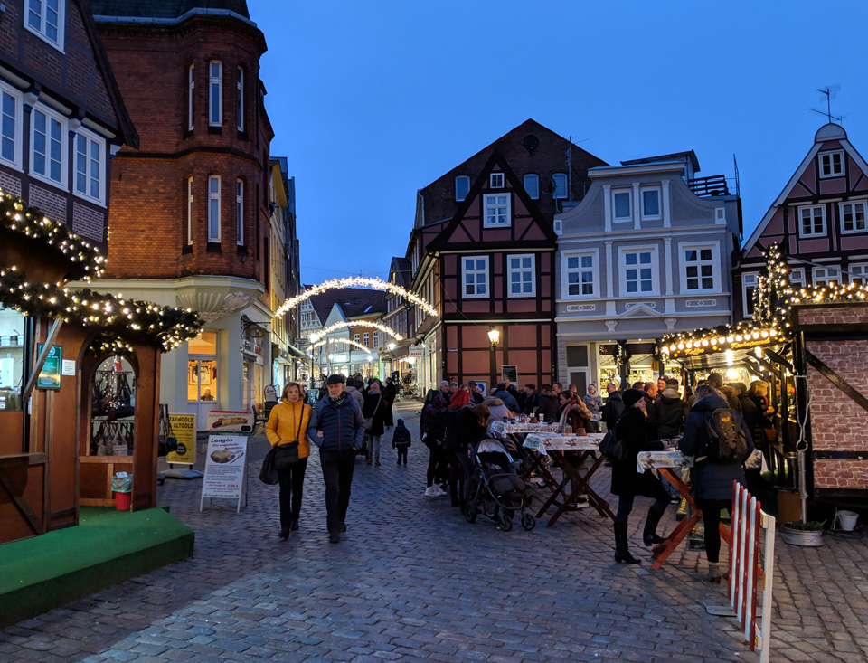 Wir haben wieder mal den Stellplatz am Bargenturm in Lüneburg erreicht. Wir stehen an der Innenseite auf dem zweiten Platz hinter der Einfahrt. Die Stromkästen sind jetzt komplett offen. Man kommt also auch an die Sicherungen. Der Platz ist für die Jahreszeit entsprechend gut gefüllt, es gibt aber noch genug freie Stellflächen. Wir freuen uns schon wieder auf die Stadt, den tollen Quarkstollen und den guten Gaststätten. Unser erster Weg in Lüneburg führte direkt zum EDEKA und dort zu dem Bäcker in der Vorhalle. Der bei uns beliebte Quarkstollen grinste uns schon von weitem an. Immer wieder ein Genuss. Gegen Abend sind wir in die Altstadt gelaufen um essen zu gehen. Die ersten angelaufenen Gaststätten waren uns eigentlich etwas zu teuer. Also machten wir noch eine Runde vorbei am Rathaus. Wir landeten aber prompt wieder bei den ersten Gaststätten. In den Kutscherstuben haben wir einen Platz bekommen, fühlten uns aber nicht wohl und sind wieder gegangen. In den nächsten zwei Gaststätten haben wir keinen Platz bekommen. Am Ende landeten wir auf dem Hofweihnachtsmarkt. Das war mal ganz anders, aber auch sehr lecker. |