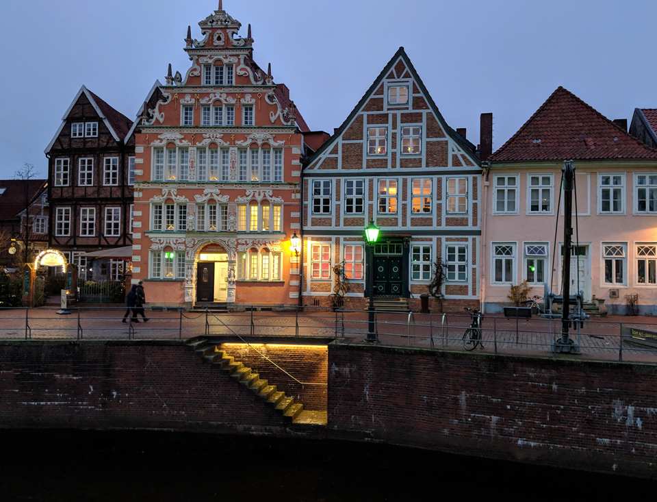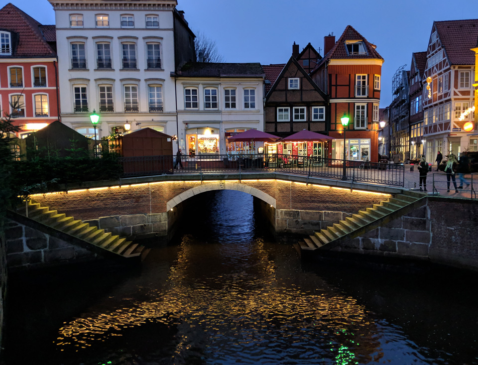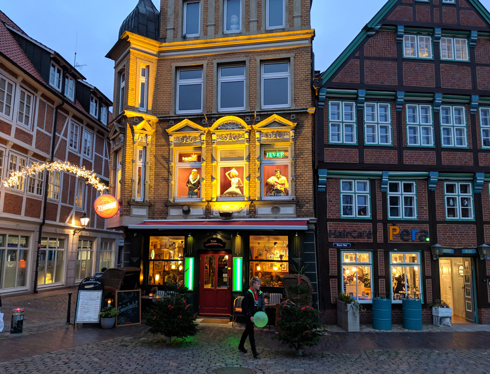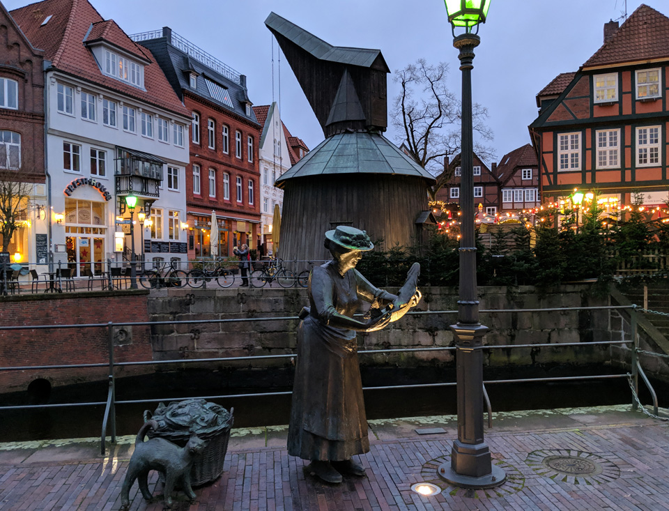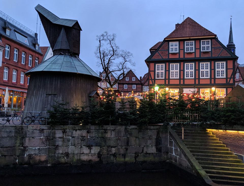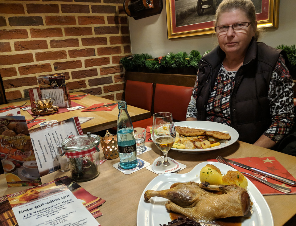 Wir haben wieder mal den Stellplatz am Bargenturm in Lüneburg erreicht. Wir stehen an der Innenseite auf dem zweiten Platz hinter der Einfahrt. Die Stromkästen sind jetzt komplett offen. Man kommt also auch an die Sicherungen. Der Platz ist für die Jahreszeit entsprechend gut gefüllt, es gibt aber noch genug freie Stellflächen. Wir freuen uns schon wieder auf die Stadt, den tollen Quarkstollen und den guten Gaststätten. Unser erster Weg in Lüneburg führte direkt zum EDEKA und dort zu dem Bäcker in der Vorhalle. Der bei uns beliebte Quarkstollen grinste uns schon von weitem an. Immer wieder ein Genuss. Gegen Abend sind wir in die Altstadt gelaufen um essen zu gehen. Die ersten angelaufenen Gaststätten waren uns eigentlich etwas zu teuer. Also machten wir noch eine Runde vorbei am Rathaus. Wir landeten aber prompt wieder bei den ersten Gaststätten. In den Kutscherstuben haben wir einen Platz bekommen, fühlten uns aber nicht wohl und sind wieder gegangen. In den nächsten zwei Gaststätten haben wir keinen Platz bekommen. Am Ende landeten wir auf dem Hofweihnachtsmarkt. Das war mal ganz anders, aber auch sehr lecker. |
