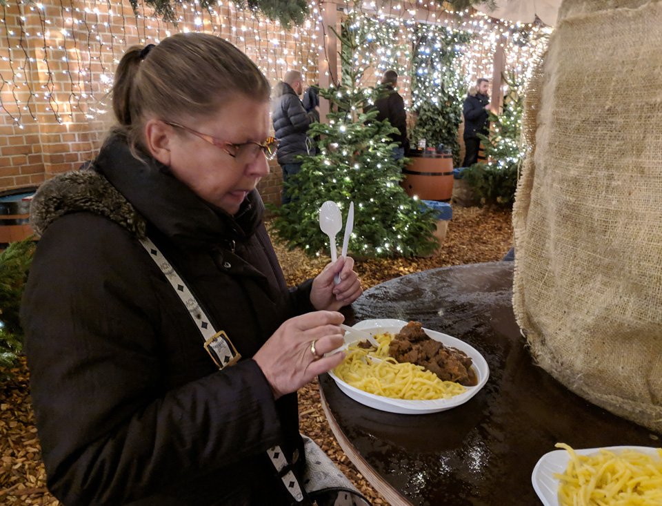 Wir haben das Ostpreußenmuseum besucht. Über den Teil unserer Geschichte wusste ich offensichtlich sehr wenig, obwohl die Mutter meines Vaters aus Ostpreußen stammte. Das war eine Gegend mit vielen Machtwechseln. Morgen werden wir uns das Brauereimuseum ansehen, es befindet sich im selben Gebäude. Die Karten haben wir schon, weil wir eine Kombikarte gelöst haben, die gleich für zwei Tage gültig ist. Gegen Abend haben wir einen weiteren Spaziergang über die Weihnachtsmärkte gemacht. |