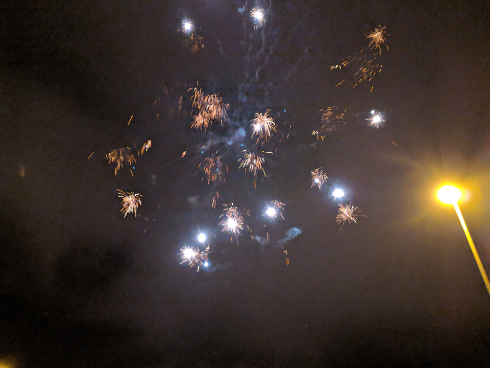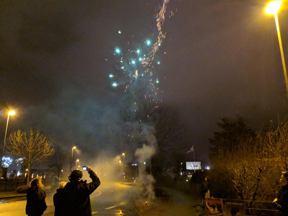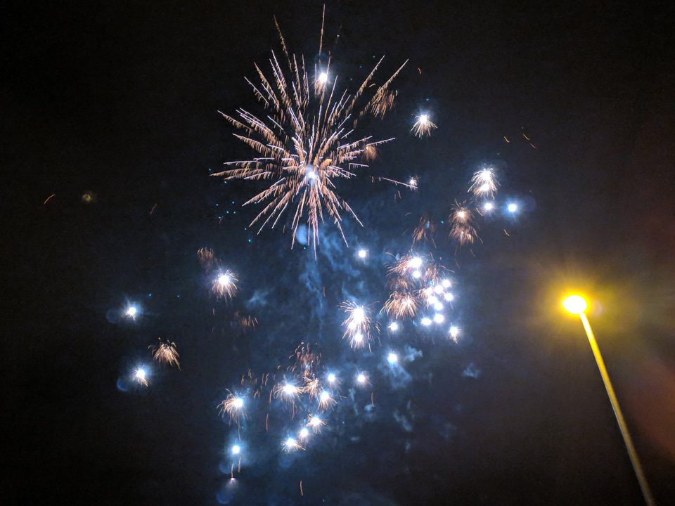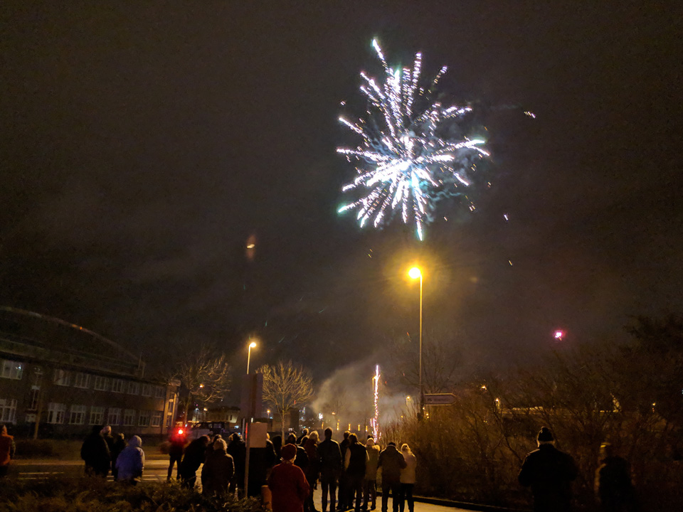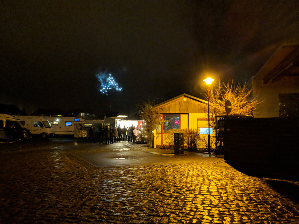 Unseren Silvesterabend haben wir in unserem Womo verbracht. Auf dem Stellplatz gab es die Möglichkeit Hähnchen oder Haxen zu bestellen, die dann von einem Grillwagen auf dem PLatz abzuholen waren. Die Haxen waren schon bei der Vorbestellung aus. So hatten wir die Wahlzwischen Hähnchen und Hähnchen. Die waren dann auch richtig lecker! Das war nicht unbedingt die Leibspeise von Susanne, aber sie waren sehr gut gewürzt und gegrillt. Bis Jahreswechsel haben wir das Fernsehprogramm genossen, speziell die Silvesterparty am Brandenburger Tor. |
