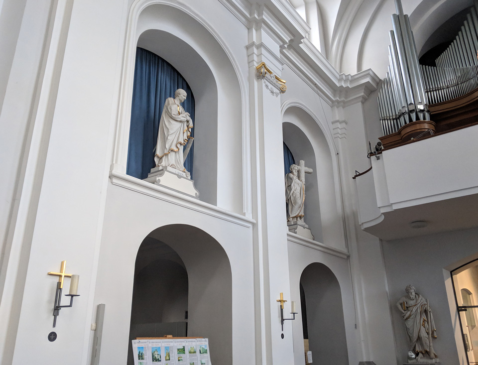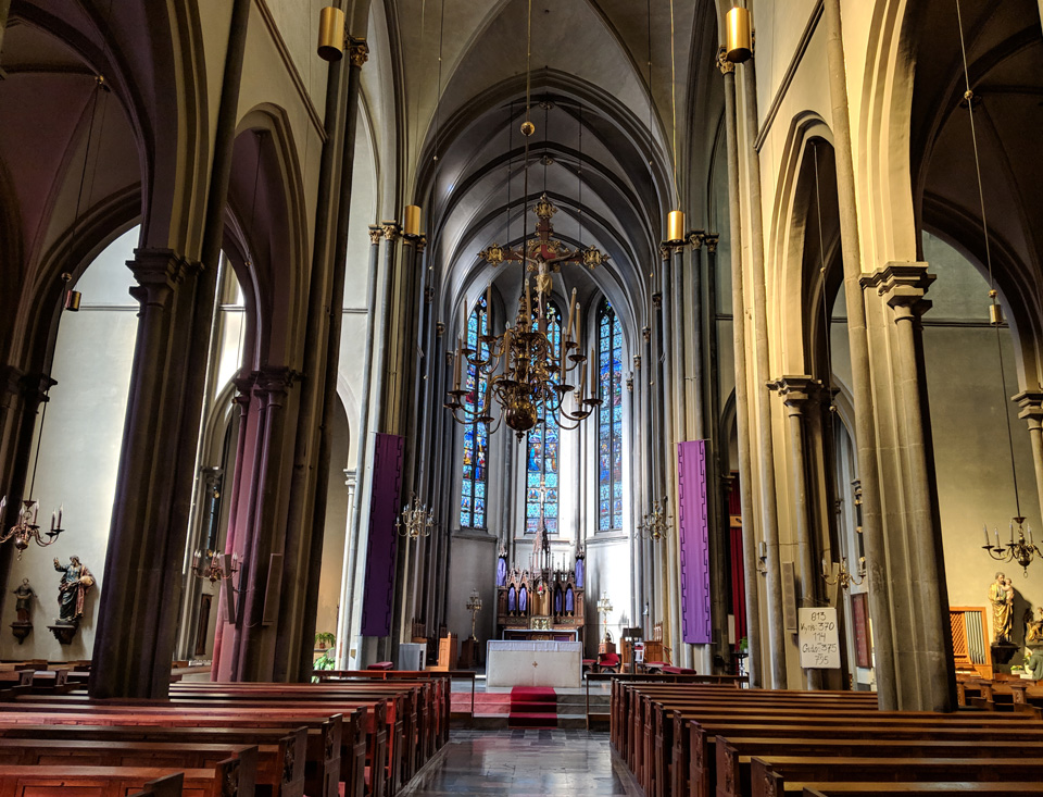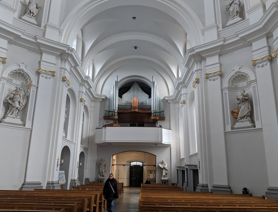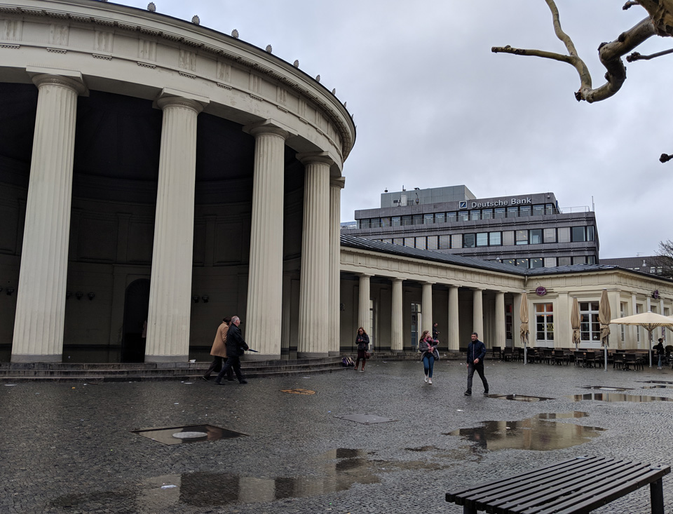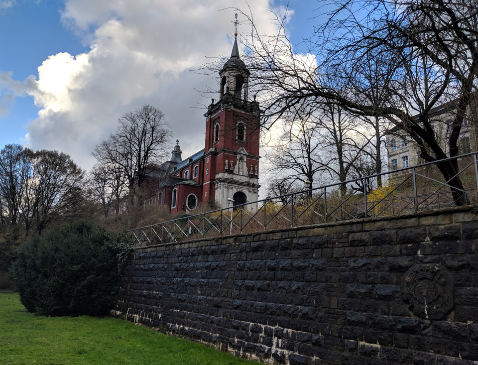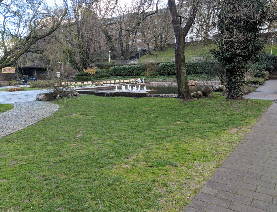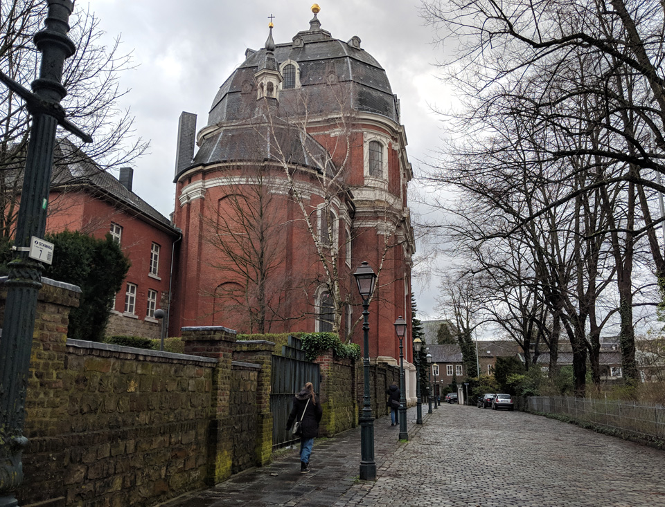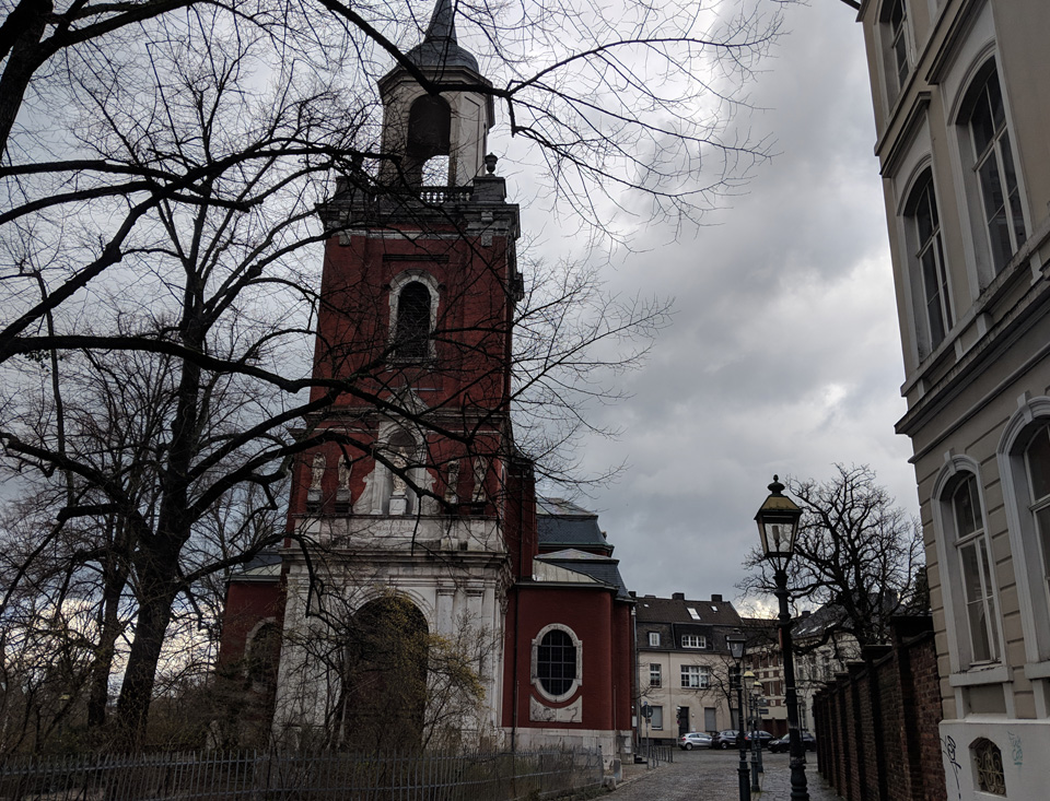 Wir haben vom Mediamarkt unsere neue Nespressomaschine abgeholt. Das war sehr abenteuerlich, da es für unser Womo kaum eine Möglichkeit zum Parken gab. Ich habe Susanne vor dem Mediamarkt aussteigen lassen. Ich fand in der Nähe einen Parkbereich für Reisebusse, dort ist Susanne dann wieder eingestiegen. Die neue Maschine ist etwas komfortabler als die alte. Da der Wetterbericht mal für eine Stunde keinen Regen vorhergesagt hat, haben wir uns auf den Weg gemacht, wenigsten den Stadtteil Burtscheid von Aachen zu besuchen. Bis auf kleine Nieselschauer hat sich der Wetterbericht bestätigt. Wir haben uns die Kirche St. Johann-Baptist angesehen, die St. Michael war verschlossen. Wir sind dann durch den Kurpark gelaufen und wieder zurück. So gegen 14:00 Uhr hat der Regen nachgelassen bzw. sogar komplette Ruhepausen eingelegt. Für uns ein guter Grund zu starten. Wir wollten nur einen kurzen Spaziergang machen und zwar in den nahen Stadtteil Burscheid von Aachen, das sind nur etwa 600 Meter von unserem Stellplatz aus entfernt. Die St. Michaelkirche, die wir eigentlich auf dem Schirm hatten, war leider verschlossen. In 50 Meter Entfernung steht aber die Johann Baptist Kirche. Die hatten wir nicht auf dem Schirm, dafür war sie aber offen. Eine für unsere Wahrnehmung atypische Kirche. Das Mittelschiff besteht aus einer riesigen Kuppel. Ansonsten eher schmucklos. Der kleine Marktplatz von Burscheid ist gut überschaubar. Der Kurpark ist schön angelegt und hat schon einen Hauch von Frühling. Die Wolken waren dicht, bis kurz nach dem wir wieder im Womo waren. Dann hat es wieder gut weiter geregnet. |