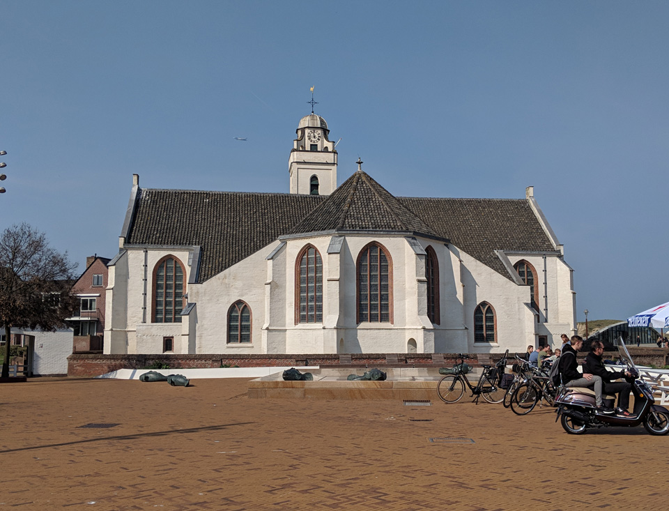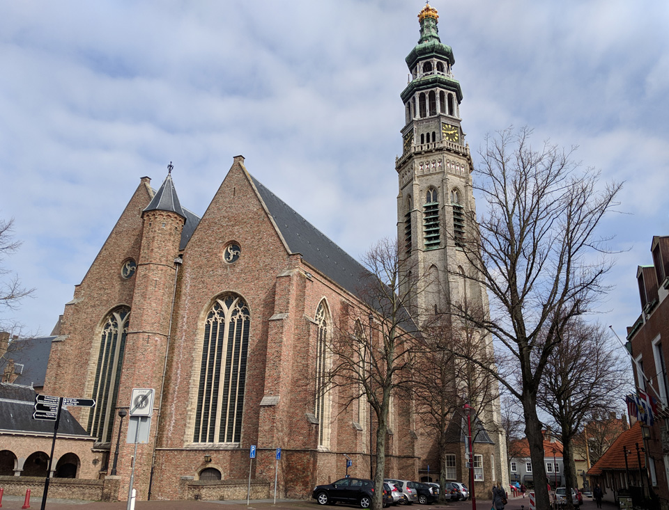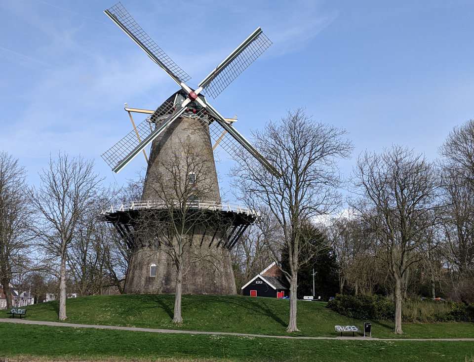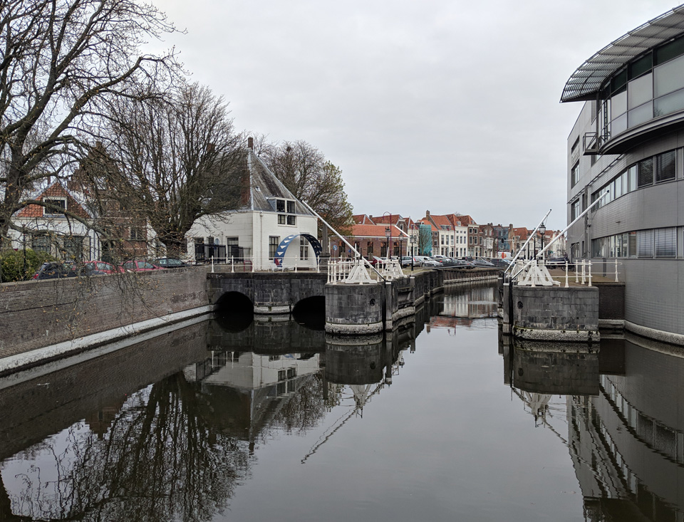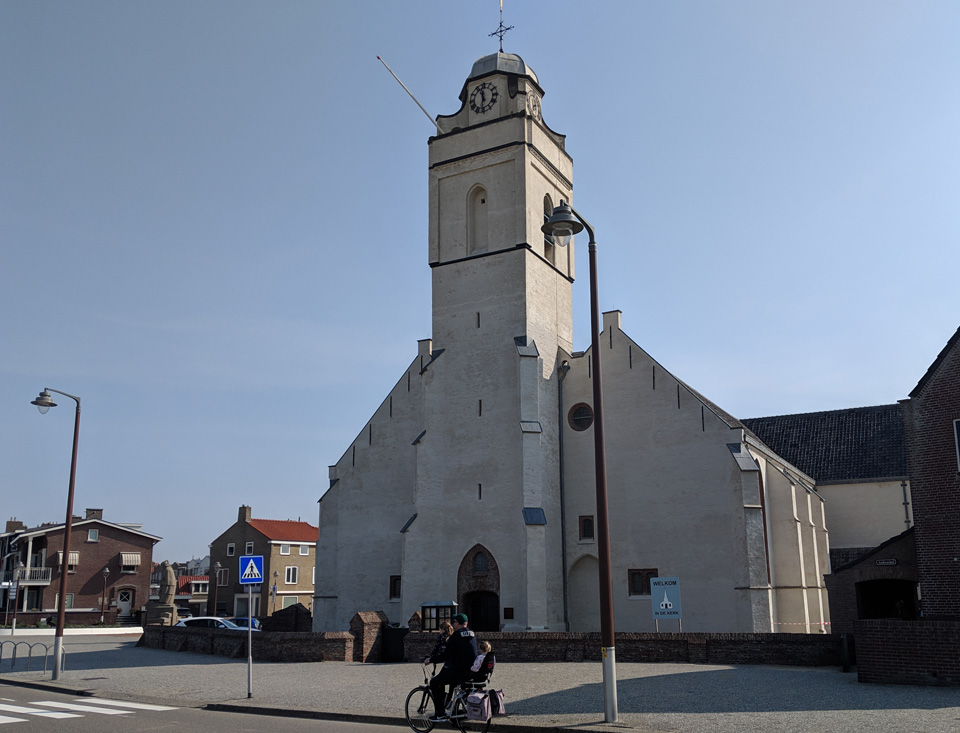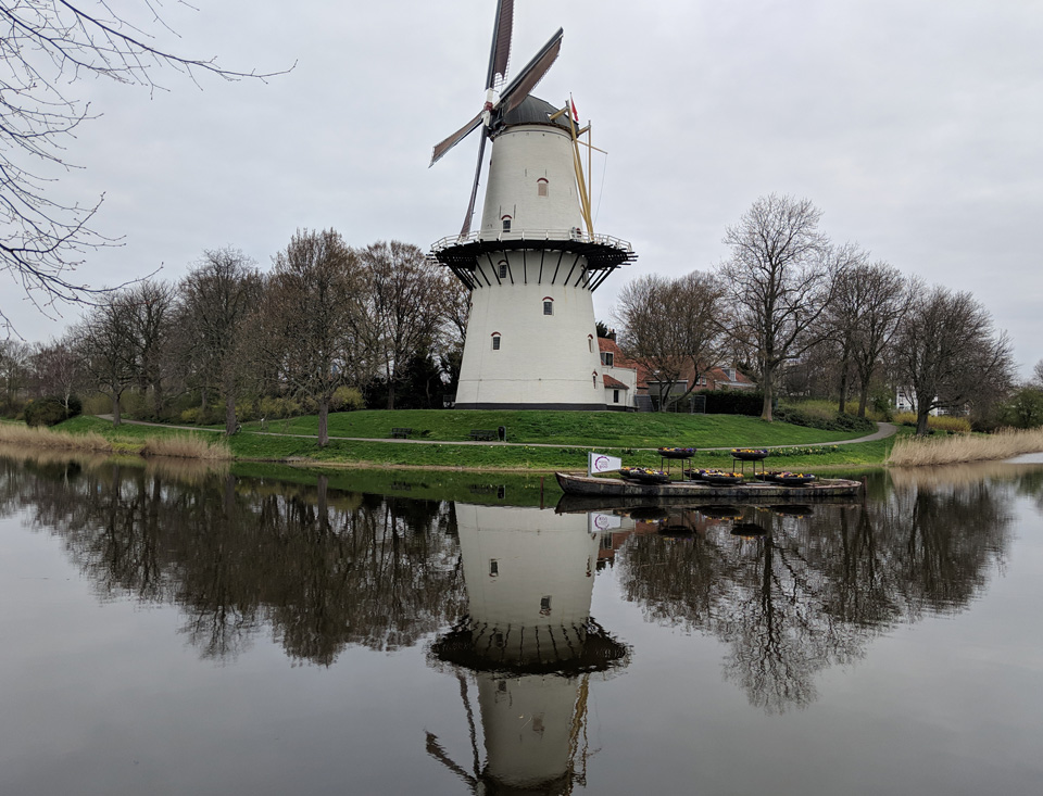 Wie geplant sind wir wieder mit den Rädern in die Innenstadt von Middelburg gefahren. Dieses mal sind wir im Südbereich eingefahren. Dort begrüsste uns die andere Mühle und das dann noch mit drehenden Flügeln. Ein schöner Anblick. Am Wasser sind wir dann weiter am Südrand zur Ostseite der Stadt gefahren. Dort befinden sich Hausboote und Yachthäfen. Diese Grachten haben links und rechts noch sehr viele historische Häuser, die überwiegend aus dem 18. Jahrhundert stammen. Das angrenzende Viertel zwischen dem Prinz Hendrikdok und dem Binnenhafen steht fast geschlossen unter Denkmalschutz. Man kommt sich ein wenig wie im Mittelalter vor in den schmalen Gassen und verschachtelten Häusern. Ein sehr interessanter Bereich. Von hier aus gingen wir in die Fußgängerzone. Leider war die Gasthuiskerk, wie bisher die anderen, verschlossen. Wir sind noch etwas durch die Fußgängerzone gelaufen und haben uns dann aber wieder auf den Rückweg gemacht. |