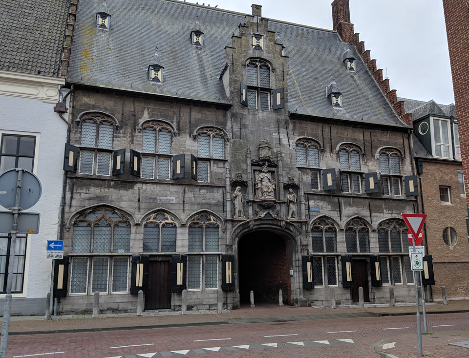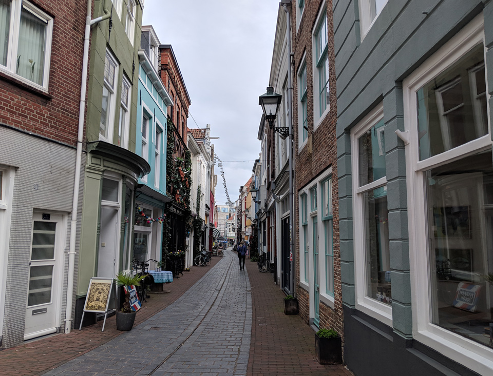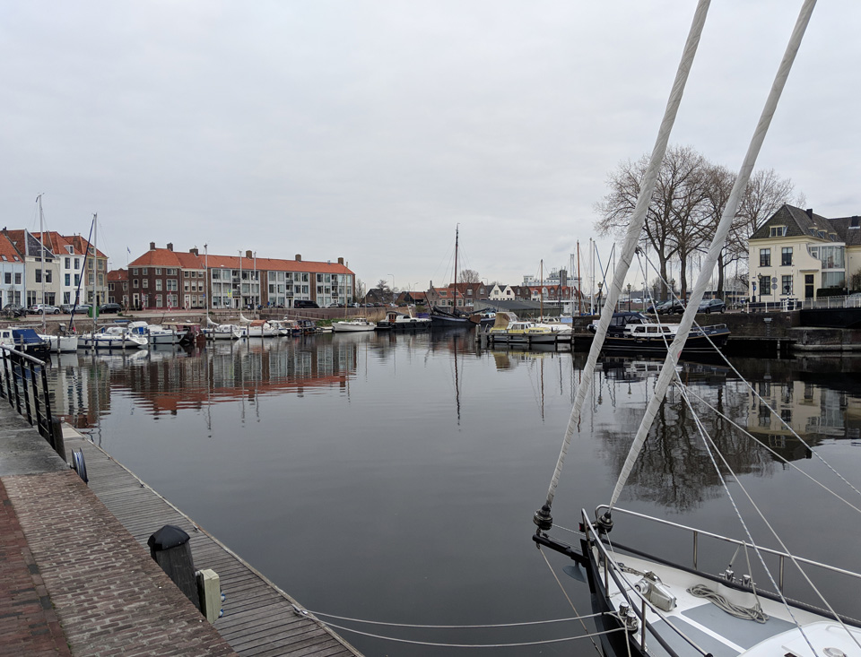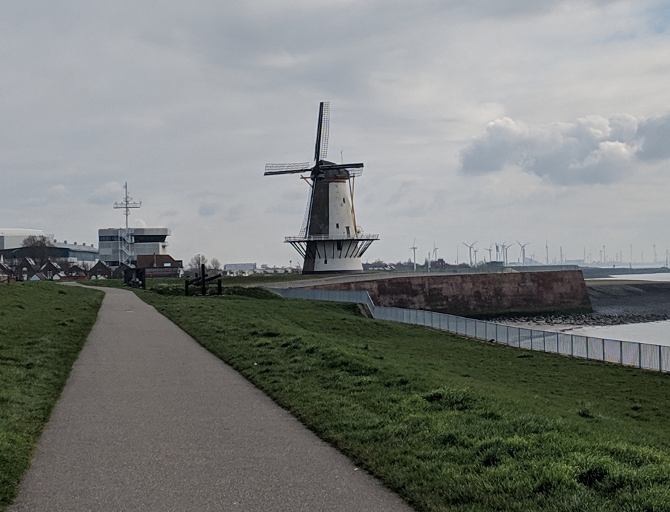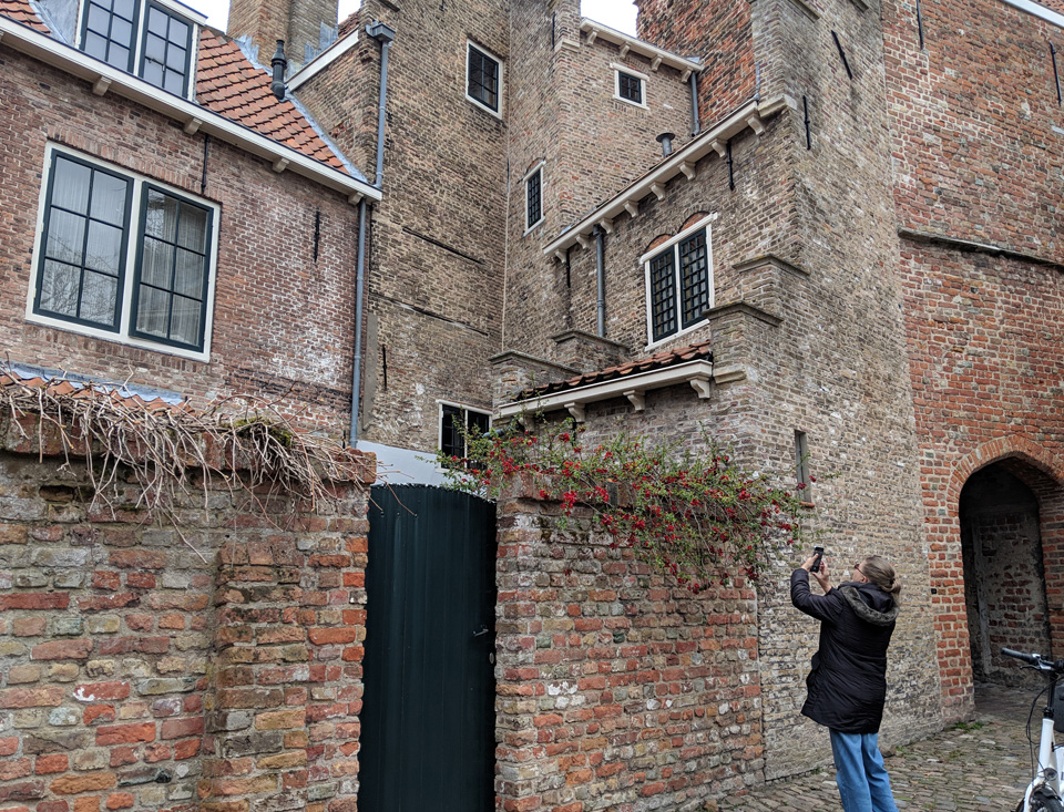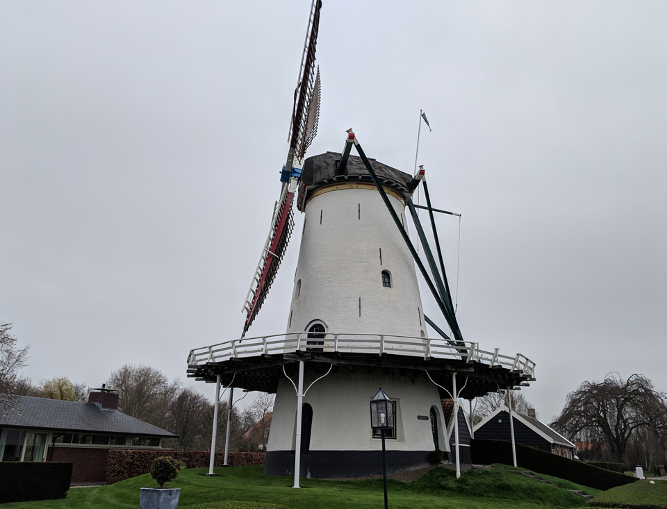 Wie geplant sind wir wieder mit den Rädern in die Innenstadt von Middelburg gefahren. Dieses mal sind wir im Südbereich eingefahren. Dort begrüsste uns die andere Mühle und das dann noch mit drehenden Flügeln. Ein schöner Anblick. Am Wasser sind wir dann weiter am Südrand zur Ostseite der Stadt gefahren. Dort befinden sich Hausboote und Yachthäfen. Diese Grachten haben links und rechts noch sehr viele historische Häuser, die überwiegend aus dem 18. Jahrhundert stammen. Das angrenzende Viertel zwischen dem Prinz Hendrikdok und dem Binnenhafen steht fast geschlossen unter Denkmalschutz. Man kommt sich ein wenig wie im Mittelalter vor in den schmalen Gassen und verschachtelten Häusern. Ein sehr interessanter Bereich. Von hier aus gingen wir in die Fußgängerzone. Leider war die Gasthuiskerk, wie bisher die anderen, verschlossen. Wir sind noch etwas durch die Fußgängerzone gelaufen und haben uns dann aber wieder auf den Rückweg gemacht. |