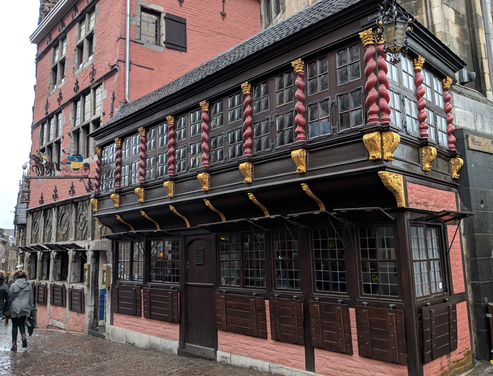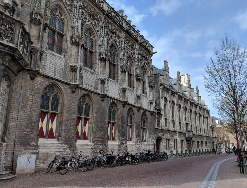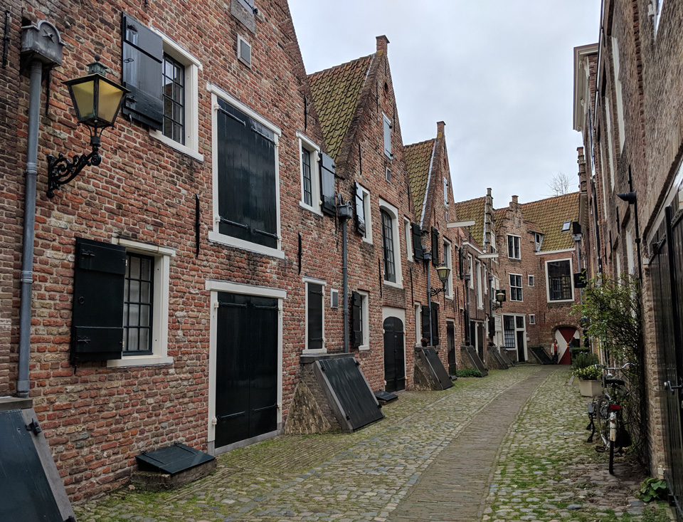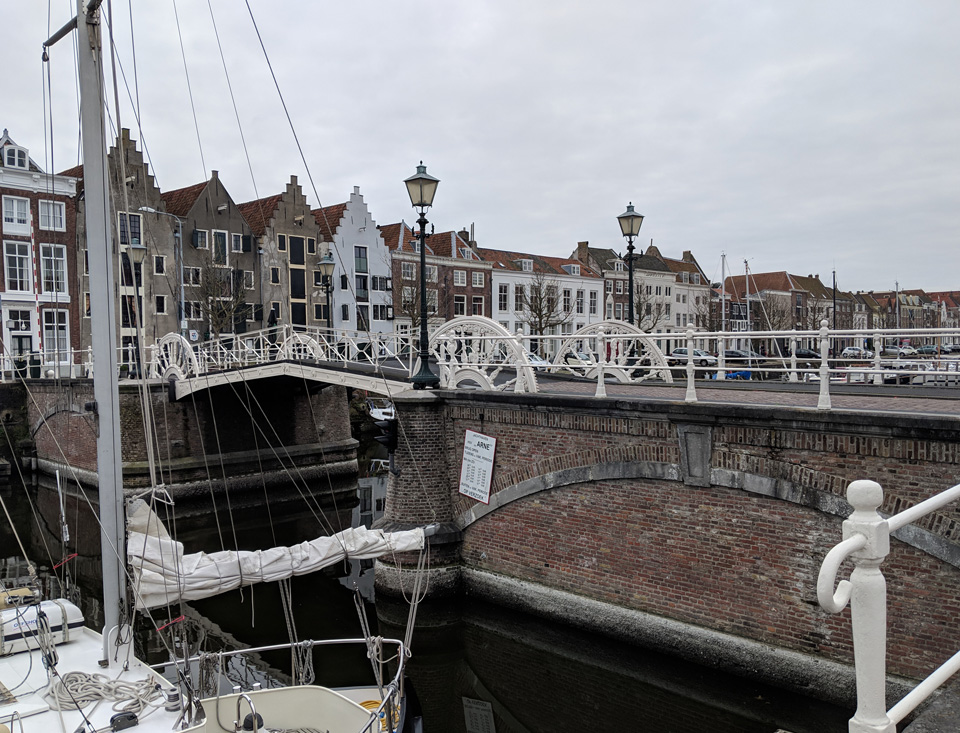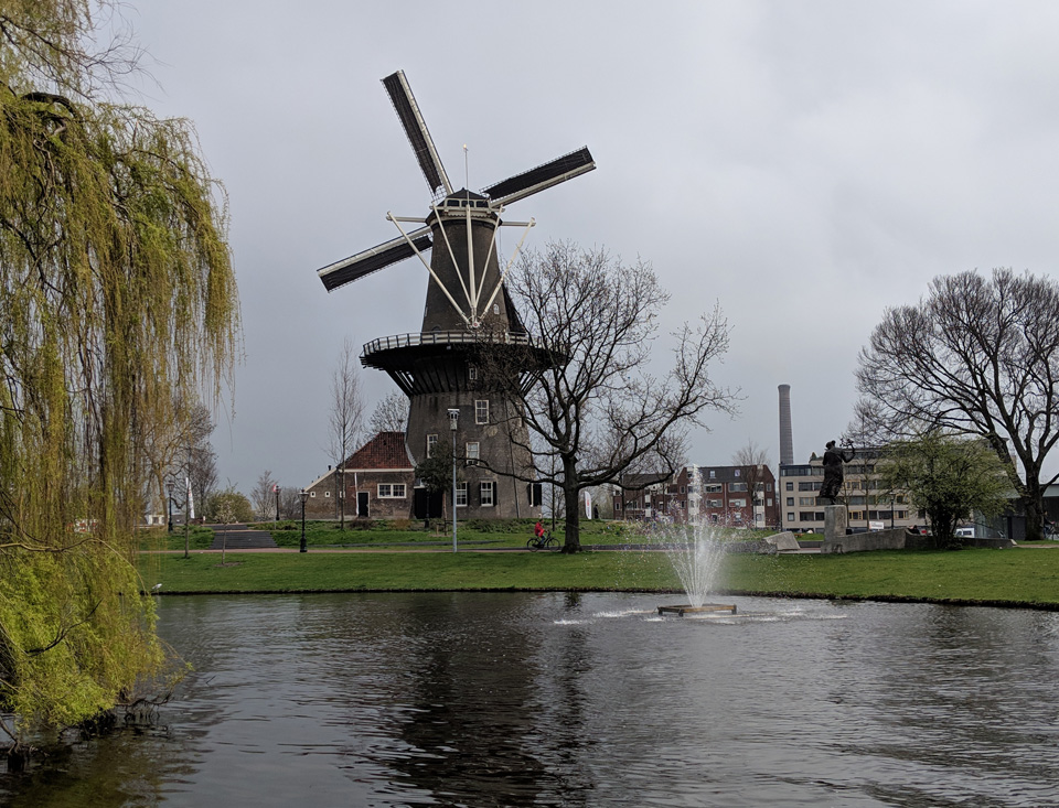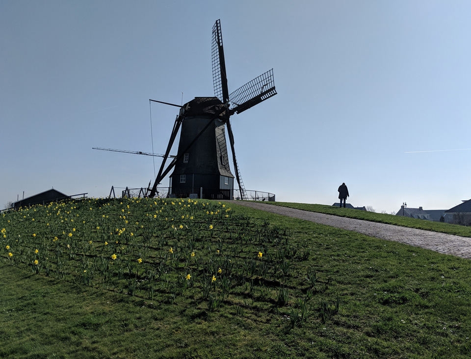 Wie geplant sind wir wieder mit den Rädern in die Innenstadt von Middelburg gefahren. Dieses mal sind wir im Südbereich eingefahren. Dort begrüsste uns die andere Mühle und das dann noch mit drehenden Flügeln. Ein schöner Anblick. Am Wasser sind wir dann weiter am Südrand zur Ostseite der Stadt gefahren. Dort befinden sich Hausboote und Yachthäfen. Diese Grachten haben links und rechts noch sehr viele historische Häuser, die überwiegend aus dem 18. Jahrhundert stammen. Das angrenzende Viertel zwischen dem Prinz Hendrikdok und dem Binnenhafen steht fast geschlossen unter Denkmalschutz. Man kommt sich ein wenig wie im Mittelalter vor in den schmalen Gassen und verschachtelten Häusern. Ein sehr interessanter Bereich. Von hier aus gingen wir in die Fußgängerzone. Leider war die Gasthuiskerk, wie bisher die anderen, verschlossen. Wir sind noch etwas durch die Fußgängerzone gelaufen und haben uns dann aber wieder auf den Rückweg gemacht. |