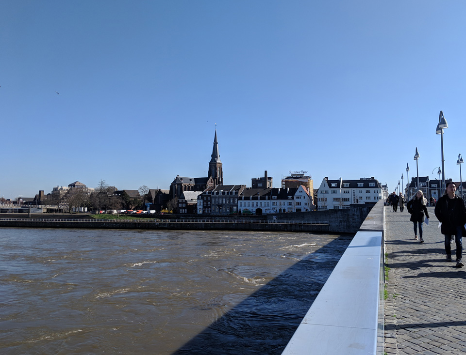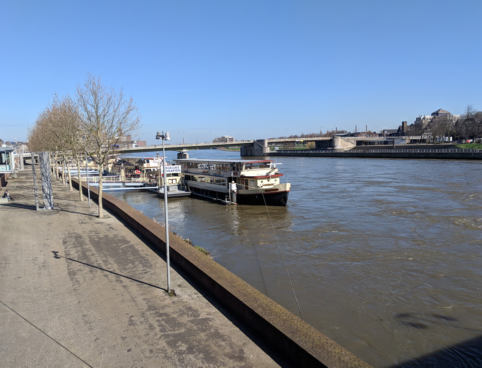 Wir sind auf dem Stellplatz in Maastricht eingetroffen. Da es der selbe Eigentümer wie in Landgraaf ist, sind wir mit der Zugangstechnik bereits vertraut. Wir stehen mit Blick auf die Maas. Heute hat es auch noch nicht geregnet. Zwischendurch kommt sogar die Sonne mal heraus. | |
