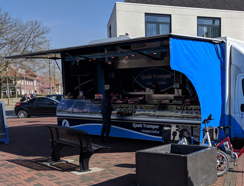 Wir sind auf dem Stellplatz in Kruiningen eingetroffen. Ein sehr schönes,sauberes und gepflegtes Gelände mit vorbildlichen Sanitäranlagen. Als wir ankamen, war es noch extrem nebelig. Später schien die Sonne. Der kleine Bauernladen bietet ein erstaunliches Repertoire von Käse bis Wein und Frischobst und Gemüse. Bei Bestellung gibt es frische Brötchen. Das superschöne Wetter hat uns schon am Ankunftsnachmittag zu einer Radtour verleitet. Eigentlich wollten wir nur nach Yerseke, gelandet sind wir dann aber in Kruiningen. Dort stand auf dem Marktplatz ein modernes Fischladenauto. Sie haben auch Kippeling. Obwohl eigentlich nicht unsere Essenszeit, konnten wir nicht widerstehen. Das war auch so richtig lecker. Wir sind dann am Süddeich entlang über Waarde und Oostdijk wieder zurückgefahren. Immerhin etwas über 20 km. |