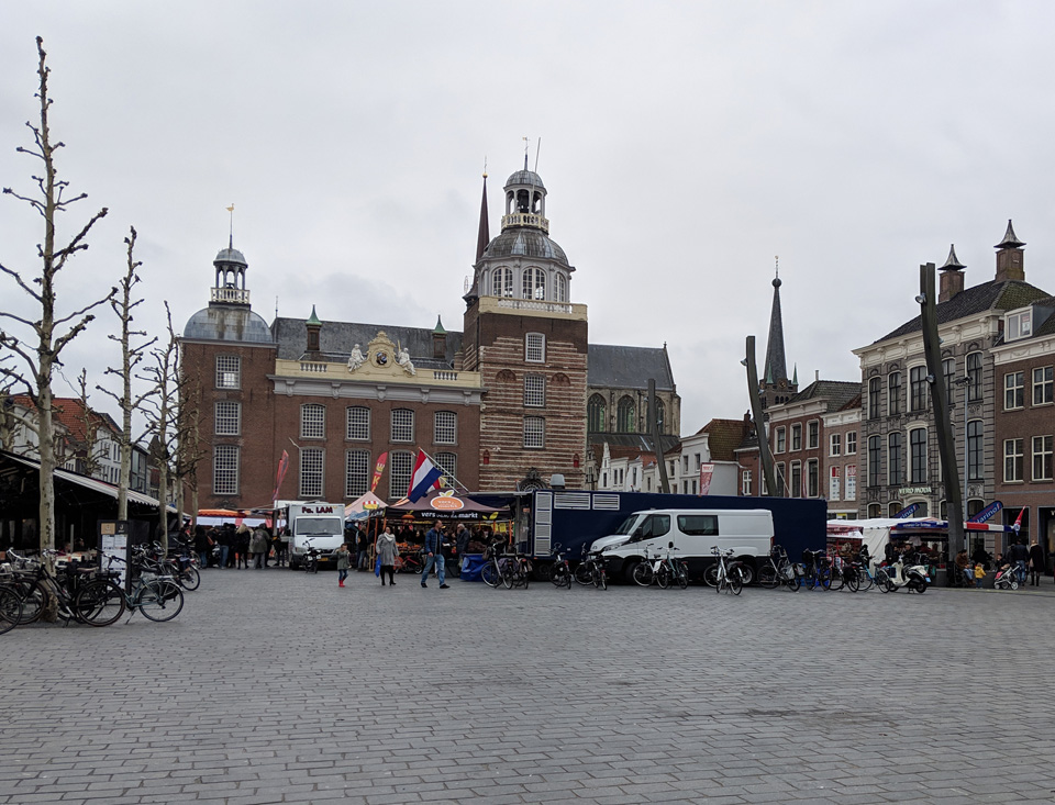 Heute sind wir mit den Rädern nach Delft gefahren. Das ist vom Stellplatz aus kürzer als nach Den Haag. Delft hat uns sehr gut gefallen, weil es noch viele historische Häuser gibt und der ganze Ortskern von vielen Grachten durchtrennt wird. Das Wetter war typisch für den April, sehr wechselhaft und lausig kalt. Wir hatten aber Glück, bis auf einige Tropfen sind wir trocken geblieben. Erst als wir schon im Womo waren hat es richtig geschüttet und das sogar mit Hagel. |
