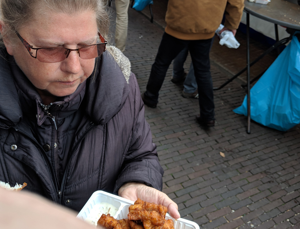 Trotz nicht so schönem Wetter haben wir uns entschlossen mit den Rädern nach Leiden zu fahren. Es war bewölkt, aber hat nicht geregnet. In Leiden gab es wieder Kibbeling. Auf dem Rückweg sind wir über Warmond gefahren. Da wir schon im vorigen Jahr in Leiden waren, hatte vieles ein Wiedererkennungswert. Da heute ja Samstag ist gibt es Marktbuden und es wimmelt nur so von Menschen. |