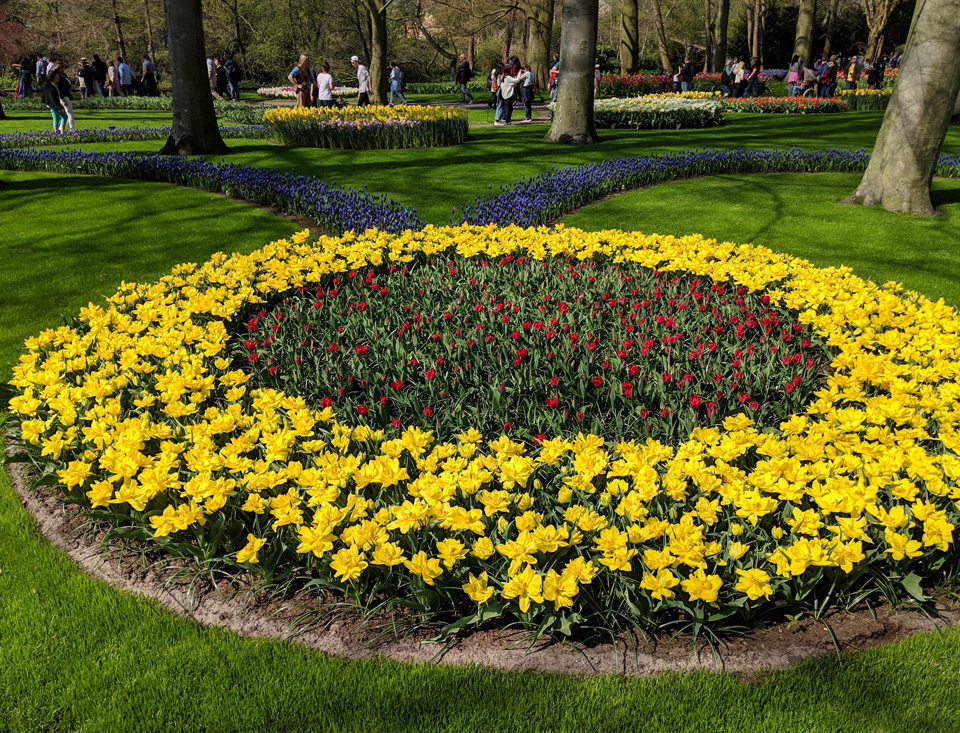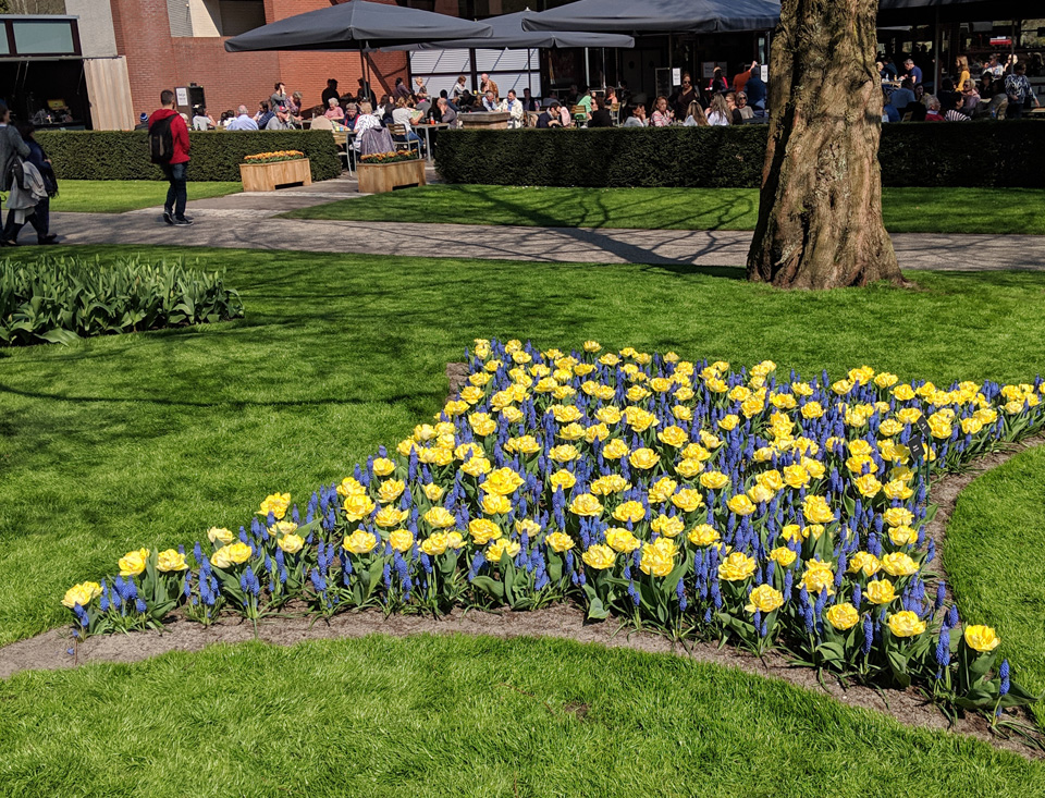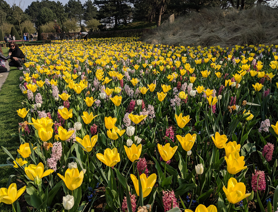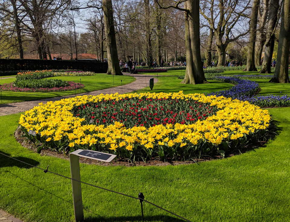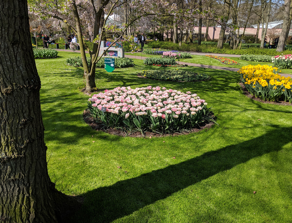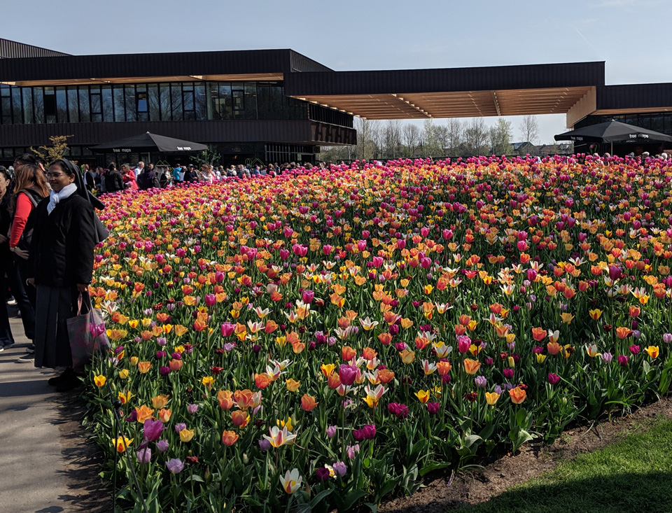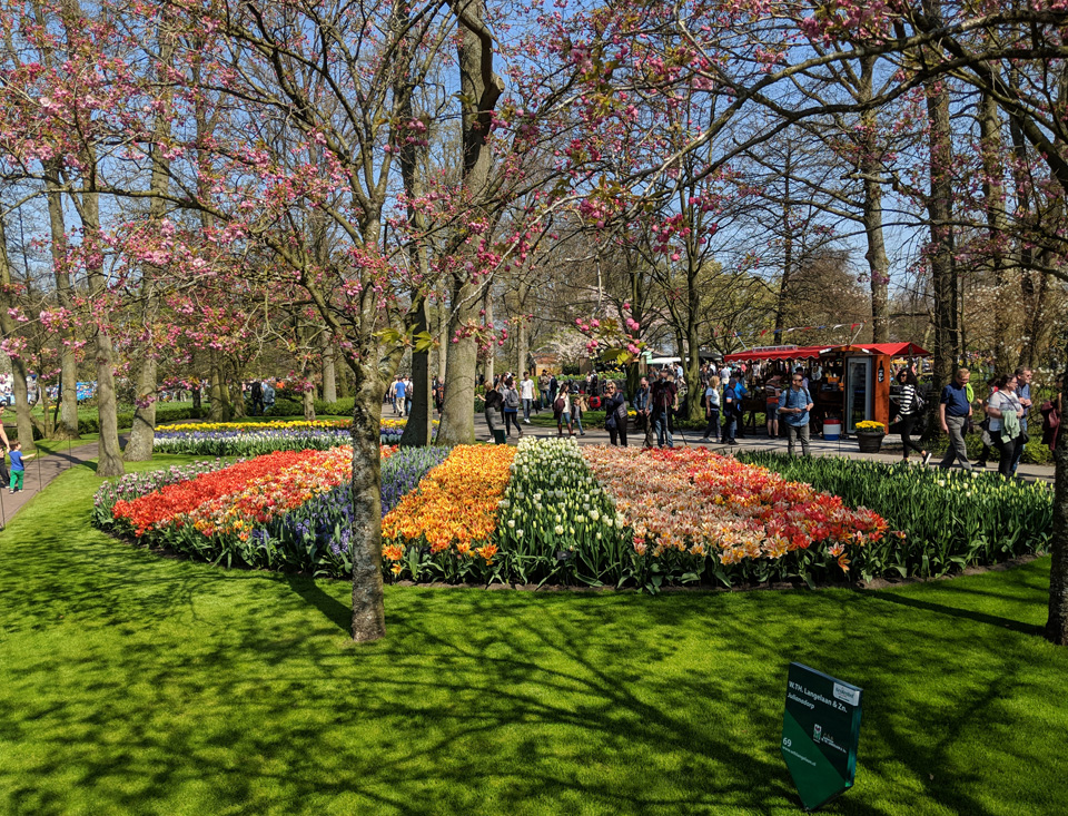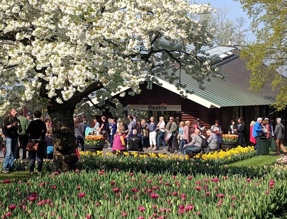 Heute war unser großer Tag. Wir sind mit den Rädern nach Lisse zum Keukenhof gefahren. Obwohl wir ja schon voriges Jahr hier waren, waren wir wieder total beeindruckt. Einfach ein grandioses Erlebnis. Das war ein super schöner Tag. Obwohl hier im Durchschnitt pro Tag ca. 20 000 Besucher durchströmen, hält sich das Gedrängel auf den Wegen in Grenzen. Ich habe 268 Bilder gemacht. 18 € Eintritt pro Person das erscheint ja auf den ersten Moment recht hoch, wenn man aber die Parkanlage betritt wird einem sehr schnell klar, dass es mehr als gerechtfertigt ist. So sehen wir das jedenfalls. Ein bisschen kannten wir uns ja schon vom vorigen Jahr aus und wir haben uns schnell darauf verständigt, dass wir die Runde ähnlich wie im vorigen Jahr machen werden. Erst einmal außen herum und dann schneckenförmig nach innen und in die Hallen. Hinter dem Haupteingang sind wir gleich nach rechts gegangen, hier stösst man auf die erste Springbrunnenanlage und erklimmt eine kleine Anhöhe. Von hier aus hat man einen guten Überblick über die großen Tulpenbeete und über die architektonische Kunst der Gärtner, die diese Farbenpracht richtig abgestimmt haben. Geht man den Außenweg weiter, kommt man zur Windmühle. Sie wurde aus Groningen hierher versetzt. Hier überquert man auch die ersten Wasserläufe. Rund um die Mühle gibt es weitere fein abgestimmte Farbspiele aus Tulpen, Narzissen und Hyazinten. Hier muss man einfach verweilen und genießen. Hier konzentrieren sich besonders viele Besucher und alle bemühen sich um das Erinnerungsfoto schlecht hin. Wir gehen weiter auf dem Außenweg geradwegs zu auf die Beatrix-Halle, vorbei an zwei Autowracks, ausgestopft mit Tulpen. In der Beatrix-Halle gibt es eine Orchideenausstellung. Wir gehen weiter auf einem Boulevar mit wiederum traumhaft schönen Blumenbeeten rechts und links. Hier liegen die ersten schon auf dem Rasen, teilweise um sich fotografieren zu lassen mit Tulpen im Hintergrund, teilweise aber auch einfach nur um sich auszuruhen. Auf der Westseite der Parkanlage befindet sich die Wilhelmina, ein riesiges Restaurant mit großen Toiltettenanlagen. Es ist ohnehin erstaunlich, wie gut hier alles funktioniert bei den täglich ca. 20 000 Leuten die hier durchlaufen. Ein Stück hinter der Wilhelmina haben wir dann eine freihe Parkbank gefunden für unser Picknick. Langsam spühren wir auch unsere Beine. Laut Homepage soll der Park ein Wegenetz von 15 km haben. Die Pause hat uns gut getan. Ein Stück weiter gibt es Irene, das nächste große Restaurant. Von hier sieht man auch schon wieder das große Eingangsgebäude. Die erste Außenrunde haben wir geschafft. Nun ging es weiter in das Innere über die Oranje Nassau, ein weiteres Lokal und ein kleiner Teil davon zeigt Schnittblumen. Über eine Schlaufe am großen See, hier gibt es besonders schönen Blumenrabatten, sind wir dann in die Willem Alexander-Halle gegangen. Eigentlich ein riesiges Gewächshaus. Hier gibt es eine Ausstellung besonderer Tulpenzüchtungen. Total beeindruckend, wieviele Möglichkeiten es gibt Tulpen zu verändern. Wir beide haben fotografiert wie die Weltmeister. Susanne war auf Toilette und hat uns, weil sie direkt daran vorbei musste, eine Joghurteis mit Früchten mitgebracht. Das Eis und die Pause haben uns wieder gut getan. Jetzt hatten wir wieder Lust uns den Rest der Tulpenhalle anzusehen. Danach haben wir uns mit kleinen Umwegen auf den Rückweg zur großen Eingangshalle gemacht. Unsere Räder standen noch an Ort und Stelle. |