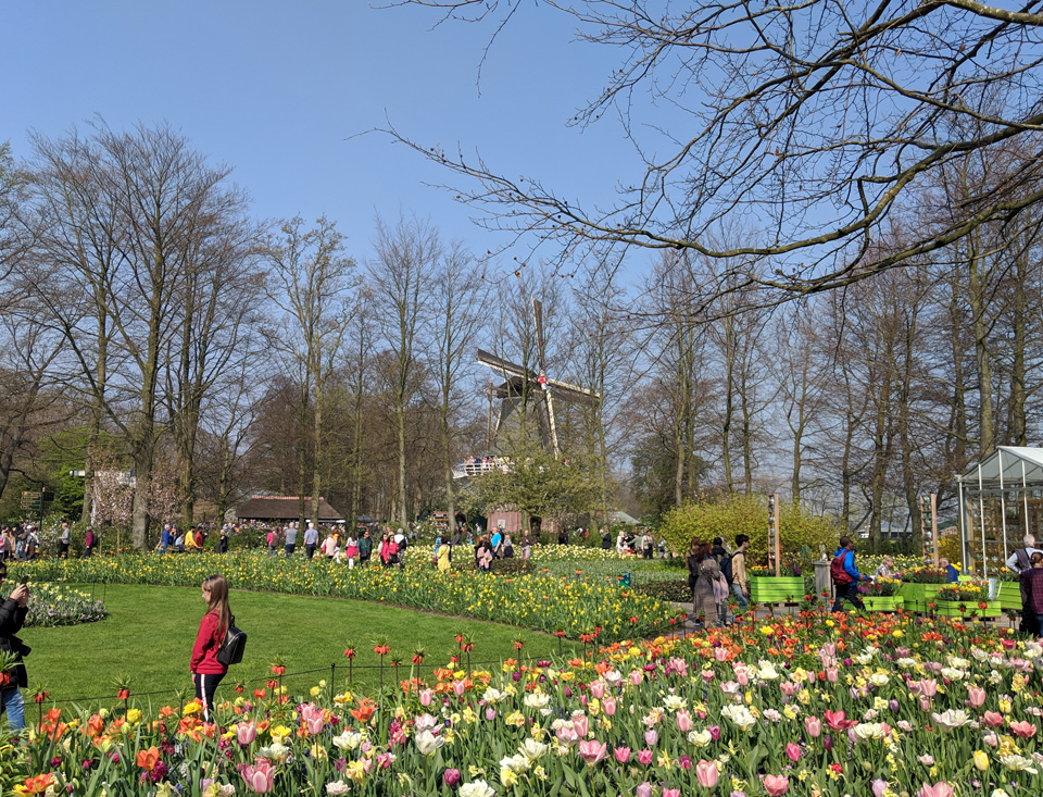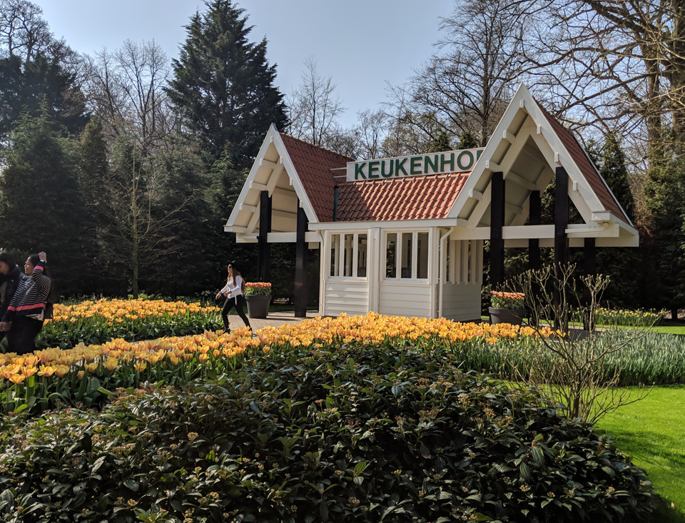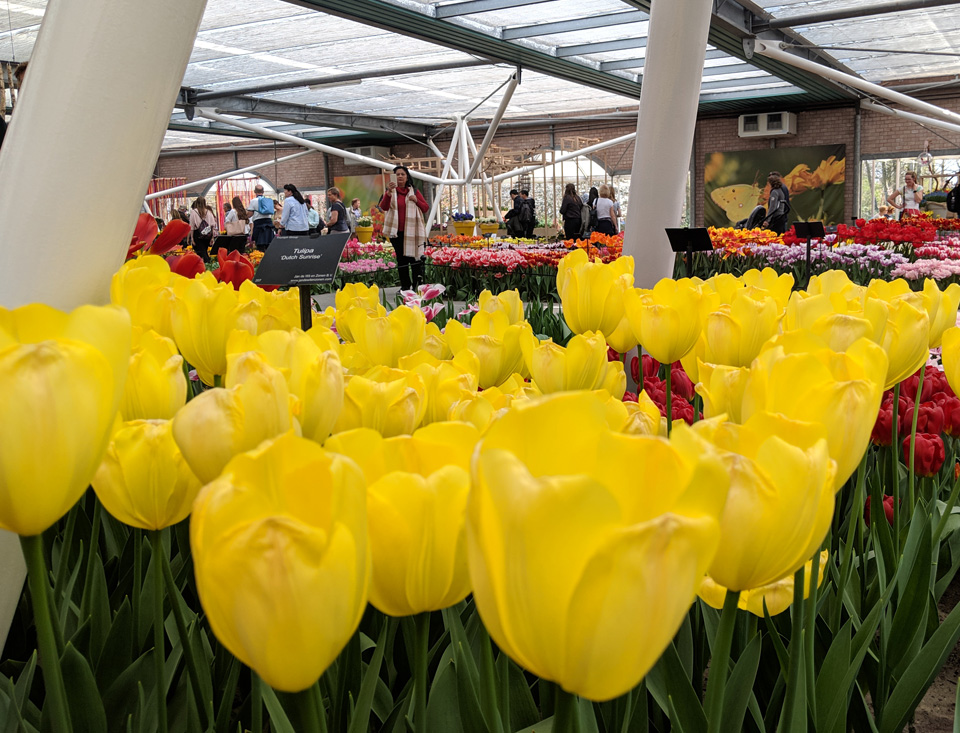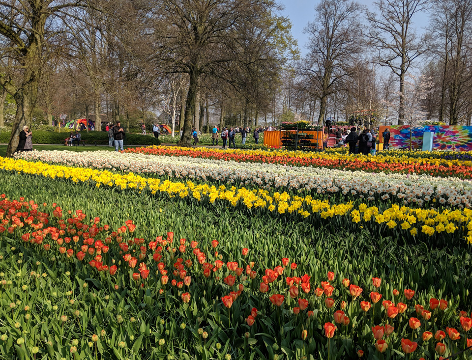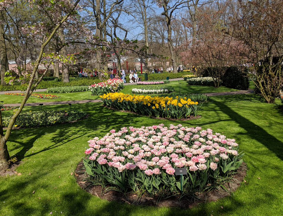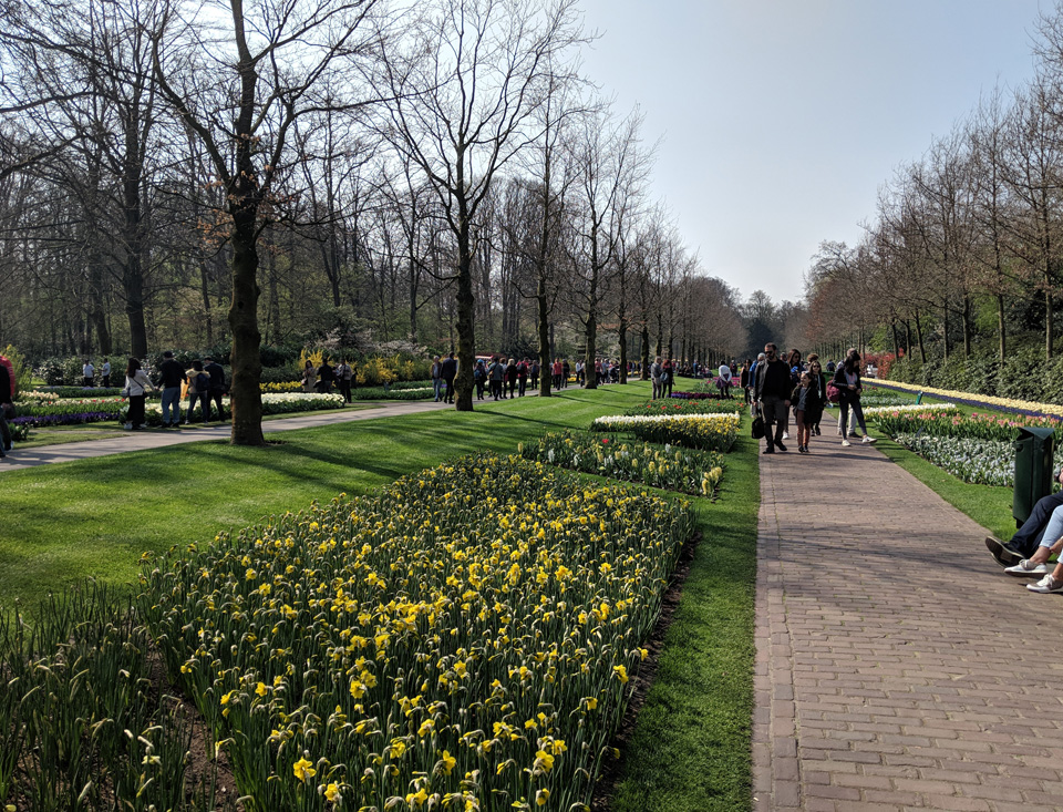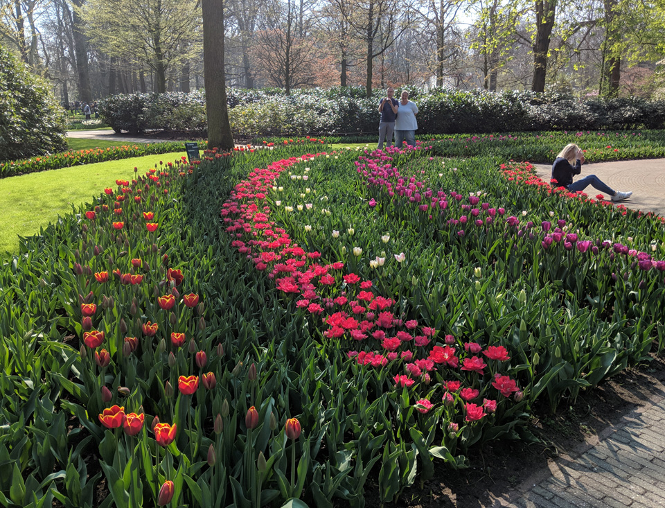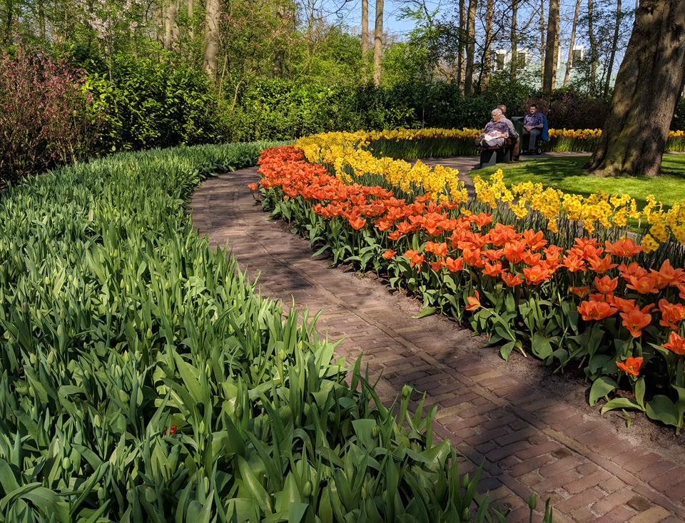 Heute war unser großer Tag. Wir sind mit den Rädern nach Lisse zum Keukenhof gefahren. Obwohl wir ja schon voriges Jahr hier waren, waren wir wieder total beeindruckt. Einfach ein grandioses Erlebnis. Das war ein super schöner Tag. Obwohl hier im Durchschnitt pro Tag ca. 20 000 Besucher durchströmen, hält sich das Gedrängel auf den Wegen in Grenzen. Ich habe 268 Bilder gemacht. 18 € Eintritt pro Person das erscheint ja auf den ersten Moment recht hoch, wenn man aber die Parkanlage betritt wird einem sehr schnell klar, dass es mehr als gerechtfertigt ist. So sehen wir das jedenfalls. Ein bisschen kannten wir uns ja schon vom vorigen Jahr aus und wir haben uns schnell darauf verständigt, dass wir die Runde ähnlich wie im vorigen Jahr machen werden. Erst einmal außen herum und dann schneckenförmig nach innen und in die Hallen. Hinter dem Haupteingang sind wir gleich nach rechts gegangen, hier stösst man auf die erste Springbrunnenanlage und erklimmt eine kleine Anhöhe. Von hier aus hat man einen guten Überblick über die großen Tulpenbeete und über die architektonische Kunst der Gärtner, die diese Farbenpracht richtig abgestimmt haben. Geht man den Außenweg weiter, kommt man zur Windmühle. Sie wurde aus Groningen hierher versetzt. Hier überquert man auch die ersten Wasserläufe. Rund um die Mühle gibt es weitere fein abgestimmte Farbspiele aus Tulpen, Narzissen und Hyazinten. Hier muss man einfach verweilen und genießen. Hier konzentrieren sich besonders viele Besucher und alle bemühen sich um das Erinnerungsfoto schlecht hin. Wir gehen weiter auf dem Außenweg geradwegs zu auf die Beatrix-Halle, vorbei an zwei Autowracks, ausgestopft mit Tulpen. In der Beatrix-Halle gibt es eine Orchideenausstellung. Wir gehen weiter auf einem Boulevar mit wiederum traumhaft schönen Blumenbeeten rechts und links. Hier liegen die ersten schon auf dem Rasen, teilweise um sich fotografieren zu lassen mit Tulpen im Hintergrund, teilweise aber auch einfach nur um sich auszuruhen. Auf der Westseite der Parkanlage befindet sich die Wilhelmina, ein riesiges Restaurant mit großen Toiltettenanlagen. Es ist ohnehin erstaunlich, wie gut hier alles funktioniert bei den täglich ca. 20 000 Leuten die hier durchlaufen. Ein Stück hinter der Wilhelmina haben wir dann eine freihe Parkbank gefunden für unser Picknick. Langsam spühren wir auch unsere Beine. Laut Homepage soll der Park ein Wegenetz von 15 km haben. Die Pause hat uns gut getan. Ein Stück weiter gibt es Irene, das nächste große Restaurant. Von hier sieht man auch schon wieder das große Eingangsgebäude. Die erste Außenrunde haben wir geschafft. Nun ging es weiter in das Innere über die Oranje Nassau, ein weiteres Lokal und ein kleiner Teil davon zeigt Schnittblumen. Über eine Schlaufe am großen See, hier gibt es besonders schönen Blumenrabatten, sind wir dann in die Willem Alexander-Halle gegangen. Eigentlich ein riesiges Gewächshaus. Hier gibt es eine Ausstellung besonderer Tulpenzüchtungen. Total beeindruckend, wieviele Möglichkeiten es gibt Tulpen zu verändern. Wir beide haben fotografiert wie die Weltmeister. Susanne war auf Toilette und hat uns, weil sie direkt daran vorbei musste, eine Joghurteis mit Früchten mitgebracht. Das Eis und die Pause haben uns wieder gut getan. Jetzt hatten wir wieder Lust uns den Rest der Tulpenhalle anzusehen. Danach haben wir uns mit kleinen Umwegen auf den Rückweg zur großen Eingangshalle gemacht. Unsere Räder standen noch an Ort und Stelle. |