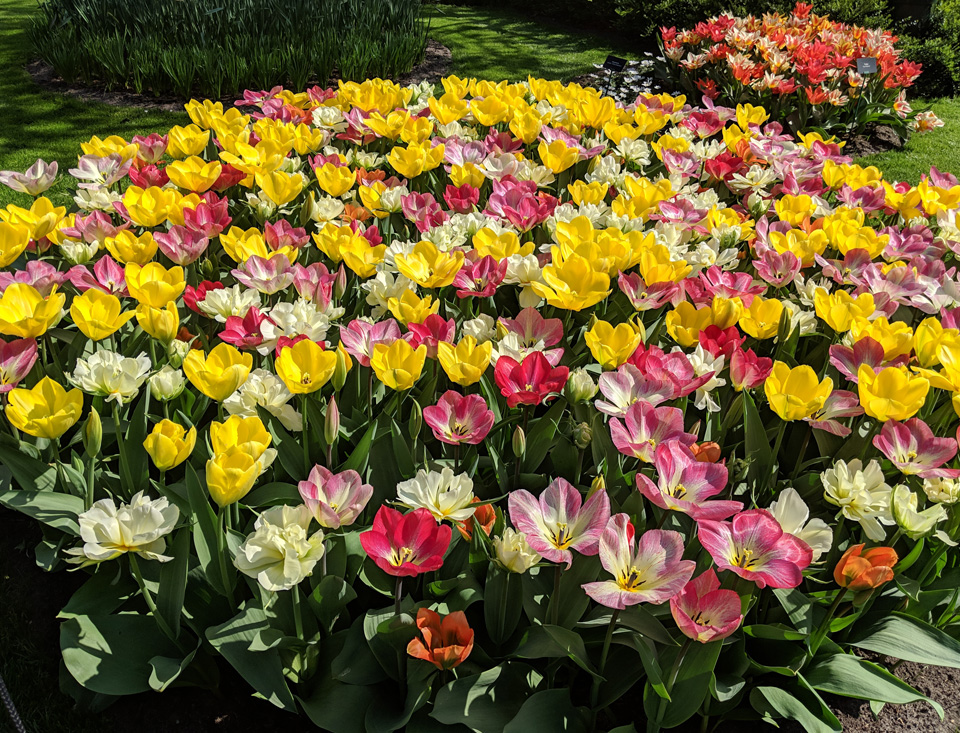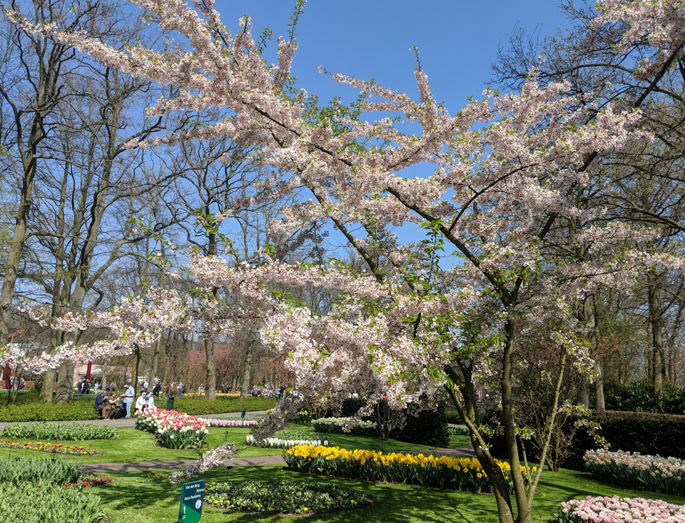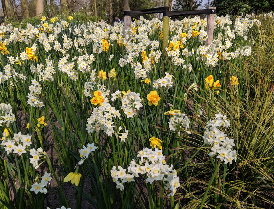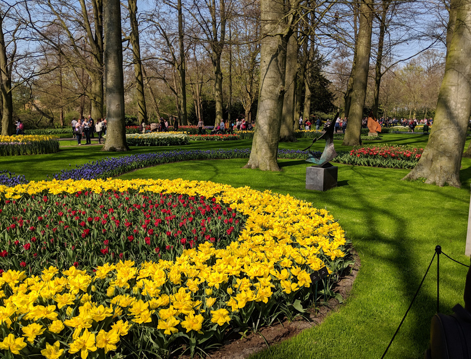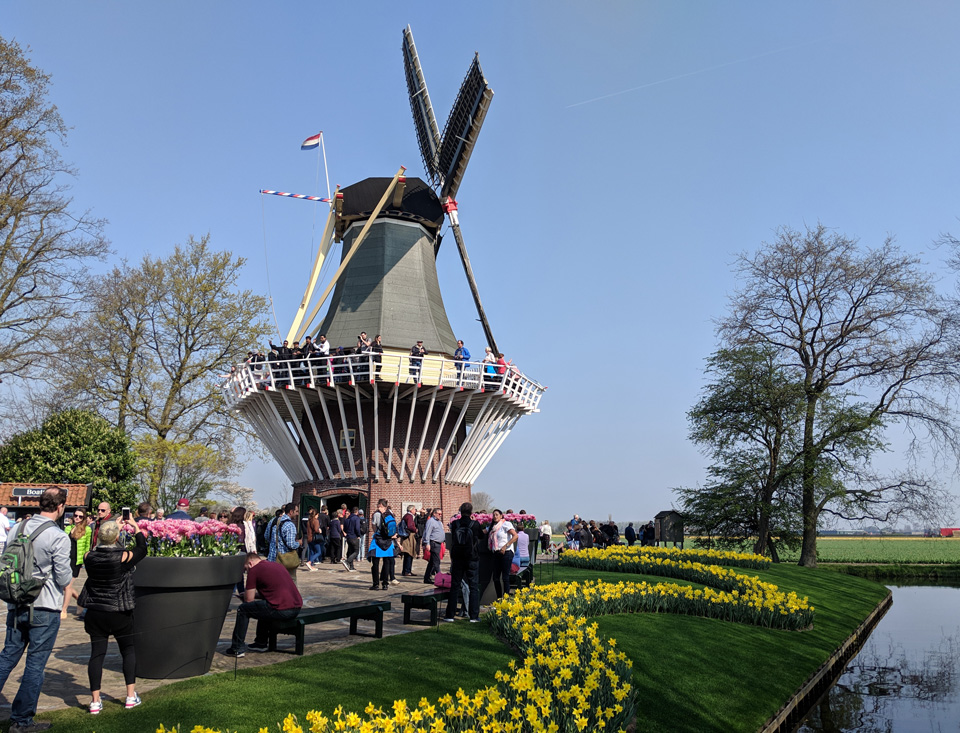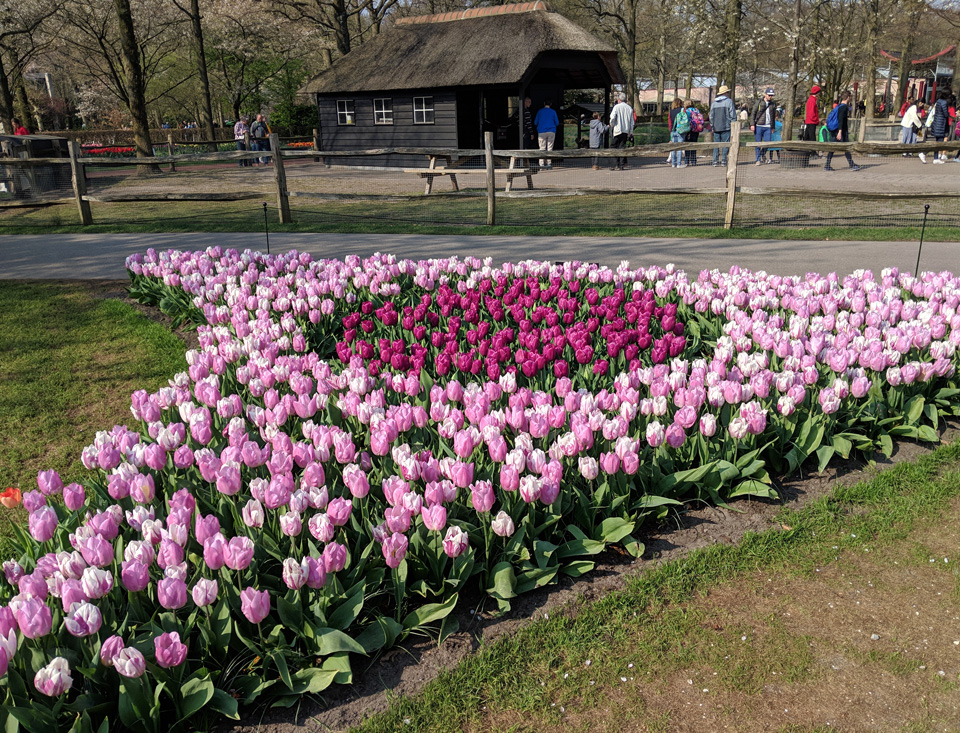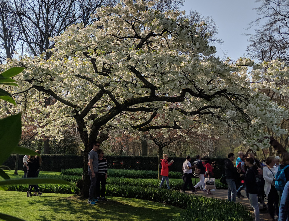 Heute war unser großer Tag. Wir sind mit den Rädern nach Lisse zum Keukenhof gefahren. Obwohl wir ja schon voriges Jahr hier waren, waren wir wieder total beeindruckt. Einfach ein grandioses Erlebnis. Das war ein super schöner Tag. Obwohl hier im Durchschnitt pro Tag ca. 20 000 Besucher durchströmen, hält sich das Gedrängel auf den Wegen in Grenzen. Ich habe 268 Bilder gemacht. 18 € Eintritt pro Person das erscheint ja auf den ersten Moment recht hoch, wenn man aber die Parkanlage betritt wird einem sehr schnell klar, dass es mehr als gerechtfertigt ist. So sehen wir das jedenfalls. Ein bisschen kannten wir uns ja schon vom vorigen Jahr aus und wir haben uns schnell darauf verständigt, dass wir die Runde ähnlich wie im vorigen Jahr machen werden. Erst einmal außen herum und dann schneckenförmig nach innen und in die Hallen. Hinter dem Haupteingang sind wir gleich nach rechts gegangen, hier stösst man auf die erste Springbrunnenanlage und erklimmt eine kleine Anhöhe. Von hier aus hat man einen guten Überblick über die großen Tulpenbeete und über die architektonische Kunst der Gärtner, die diese Farbenpracht richtig abgestimmt haben. Geht man den Außenweg weiter, kommt man zur Windmühle. Sie wurde aus Groningen hierher versetzt. Hier überquert man auch die ersten Wasserläufe. Rund um die Mühle gibt es weitere fein abgestimmte Farbspiele aus Tulpen, Narzissen und Hyazinten. Hier muss man einfach verweilen und genießen. Hier konzentrieren sich besonders viele Besucher und alle bemühen sich um das Erinnerungsfoto schlecht hin. Wir gehen weiter auf dem Außenweg geradwegs zu auf die Beatrix-Halle, vorbei an zwei Autowracks, ausgestopft mit Tulpen. In der Beatrix-Halle gibt es eine Orchideenausstellung. Wir gehen weiter auf einem Boulevar mit wiederum traumhaft schönen Blumenbeeten rechts und links. Hier liegen die ersten schon auf dem Rasen, teilweise um sich fotografieren zu lassen mit Tulpen im Hintergrund, teilweise aber auch einfach nur um sich auszuruhen. Auf der Westseite der Parkanlage befindet sich die Wilhelmina, ein riesiges Restaurant mit großen Toiltettenanlagen. Es ist ohnehin erstaunlich, wie gut hier alles funktioniert bei den täglich ca. 20 000 Leuten die hier durchlaufen. Ein Stück hinter der Wilhelmina haben wir dann eine freihe Parkbank gefunden für unser Picknick. Langsam spühren wir auch unsere Beine. Laut Homepage soll der Park ein Wegenetz von 15 km haben. Die Pause hat uns gut getan. Ein Stück weiter gibt es Irene, das nächste große Restaurant. Von hier sieht man auch schon wieder das große Eingangsgebäude. Die erste Außenrunde haben wir geschafft. Nun ging es weiter in das Innere über die Oranje Nassau, ein weiteres Lokal und ein kleiner Teil davon zeigt Schnittblumen. Über eine Schlaufe am großen See, hier gibt es besonders schönen Blumenrabatten, sind wir dann in die Willem Alexander-Halle gegangen. Eigentlich ein riesiges Gewächshaus. Hier gibt es eine Ausstellung besonderer Tulpenzüchtungen. Total beeindruckend, wieviele Möglichkeiten es gibt Tulpen zu verändern. Wir beide haben fotografiert wie die Weltmeister. Susanne war auf Toilette und hat uns, weil sie direkt daran vorbei musste, eine Joghurteis mit Früchten mitgebracht. Das Eis und die Pause haben uns wieder gut getan. Jetzt hatten wir wieder Lust uns den Rest der Tulpenhalle anzusehen. Danach haben wir uns mit kleinen Umwegen auf den Rückweg zur großen Eingangshalle gemacht. Unsere Räder standen noch an Ort und Stelle. |