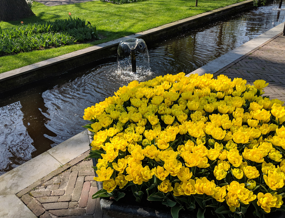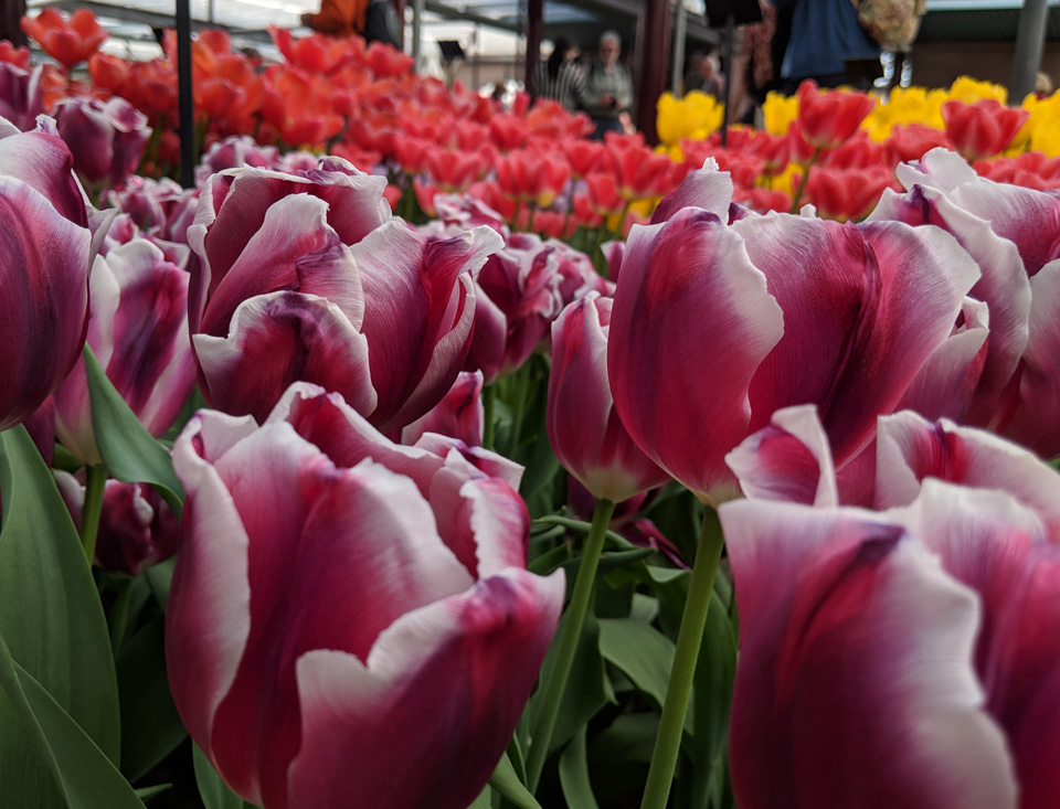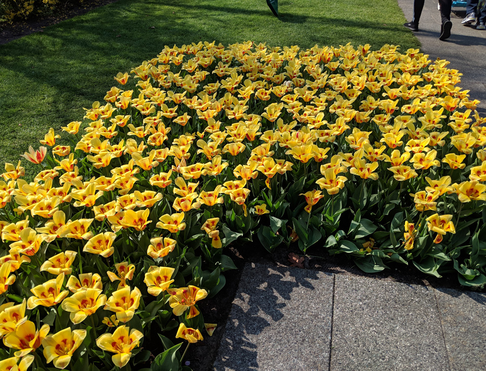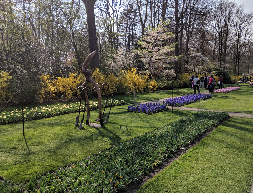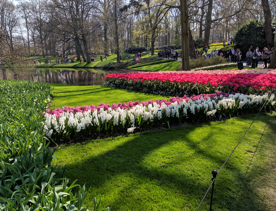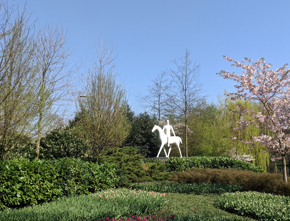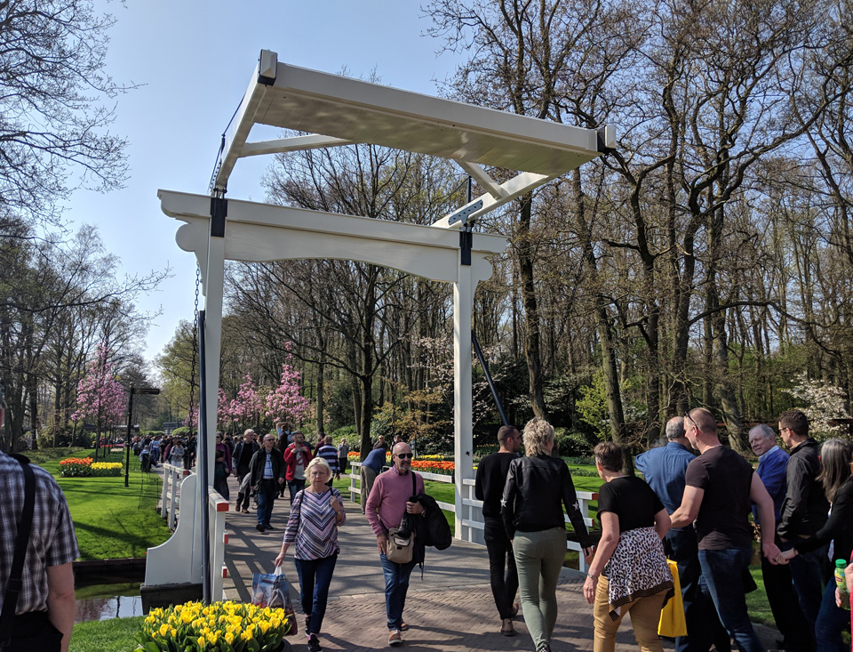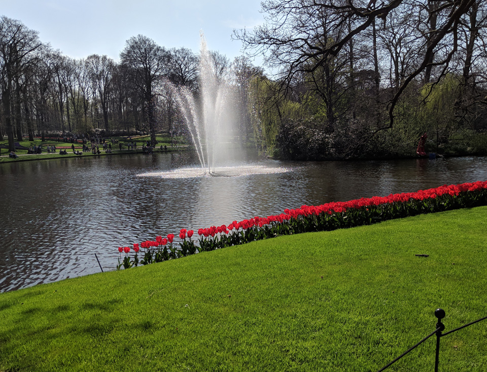 Heute war unser großer Tag. Wir sind mit den Rädern nach Lisse zum Keukenhof gefahren. Obwohl wir ja schon voriges Jahr hier waren, waren wir wieder total beeindruckt. Einfach ein grandioses Erlebnis. Das war ein super schöner Tag. Obwohl hier im Durchschnitt pro Tag ca. 20 000 Besucher durchströmen, hält sich das Gedrängel auf den Wegen in Grenzen. Ich habe 268 Bilder gemacht. 18 € Eintritt pro Person das erscheint ja auf den ersten Moment recht hoch, wenn man aber die Parkanlage betritt wird einem sehr schnell klar, dass es mehr als gerechtfertigt ist. So sehen wir das jedenfalls. Ein bisschen kannten wir uns ja schon vom vorigen Jahr aus und wir haben uns schnell darauf verständigt, dass wir die Runde ähnlich wie im vorigen Jahr machen werden. Erst einmal außen herum und dann schneckenförmig nach innen und in die Hallen. Hinter dem Haupteingang sind wir gleich nach rechts gegangen, hier stösst man auf die erste Springbrunnenanlage und erklimmt eine kleine Anhöhe. Von hier aus hat man einen guten Überblick über die großen Tulpenbeete und über die architektonische Kunst der Gärtner, die diese Farbenpracht richtig abgestimmt haben. Geht man den Außenweg weiter, kommt man zur Windmühle. Sie wurde aus Groningen hierher versetzt. Hier überquert man auch die ersten Wasserläufe. Rund um die Mühle gibt es weitere fein abgestimmte Farbspiele aus Tulpen, Narzissen und Hyazinten. Hier muss man einfach verweilen und genießen. Hier konzentrieren sich besonders viele Besucher und alle bemühen sich um das Erinnerungsfoto schlecht hin. Wir gehen weiter auf dem Außenweg geradwegs zu auf die Beatrix-Halle, vorbei an zwei Autowracks, ausgestopft mit Tulpen. In der Beatrix-Halle gibt es eine Orchideenausstellung. Wir gehen weiter auf einem Boulevar mit wiederum traumhaft schönen Blumenbeeten rechts und links. Hier liegen die ersten schon auf dem Rasen, teilweise um sich fotografieren zu lassen mit Tulpen im Hintergrund, teilweise aber auch einfach nur um sich auszuruhen. Auf der Westseite der Parkanlage befindet sich die Wilhelmina, ein riesiges Restaurant mit großen Toiltettenanlagen. Es ist ohnehin erstaunlich, wie gut hier alles funktioniert bei den täglich ca. 20 000 Leuten die hier durchlaufen. Ein Stück hinter der Wilhelmina haben wir dann eine freihe Parkbank gefunden für unser Picknick. Langsam spühren wir auch unsere Beine. Laut Homepage soll der Park ein Wegenetz von 15 km haben. Die Pause hat uns gut getan. Ein Stück weiter gibt es Irene, das nächste große Restaurant. Von hier sieht man auch schon wieder das große Eingangsgebäude. Die erste Außenrunde haben wir geschafft. Nun ging es weiter in das Innere über die Oranje Nassau, ein weiteres Lokal und ein kleiner Teil davon zeigt Schnittblumen. Über eine Schlaufe am großen See, hier gibt es besonders schönen Blumenrabatten, sind wir dann in die Willem Alexander-Halle gegangen. Eigentlich ein riesiges Gewächshaus. Hier gibt es eine Ausstellung besonderer Tulpenzüchtungen. Total beeindruckend, wieviele Möglichkeiten es gibt Tulpen zu verändern. Wir beide haben fotografiert wie die Weltmeister. Susanne war auf Toilette und hat uns, weil sie direkt daran vorbei musste, eine Joghurteis mit Früchten mitgebracht. Das Eis und die Pause haben uns wieder gut getan. Jetzt hatten wir wieder Lust uns den Rest der Tulpenhalle anzusehen. Danach haben wir uns mit kleinen Umwegen auf den Rückweg zur großen Eingangshalle gemacht. Unsere Räder standen noch an Ort und Stelle. |