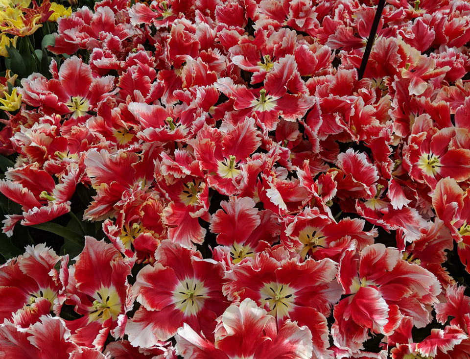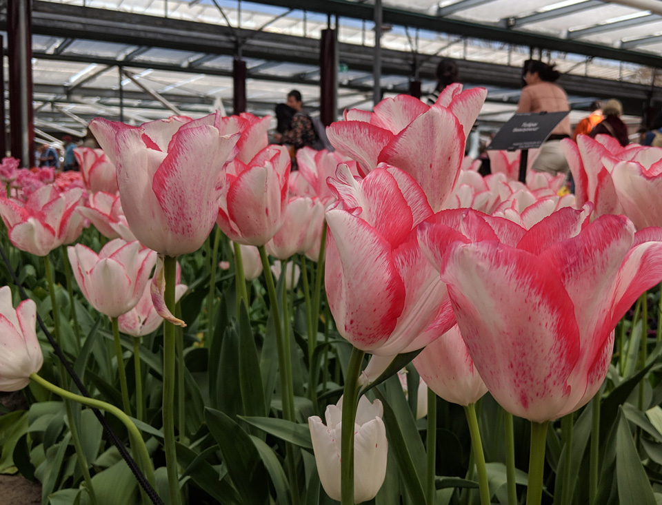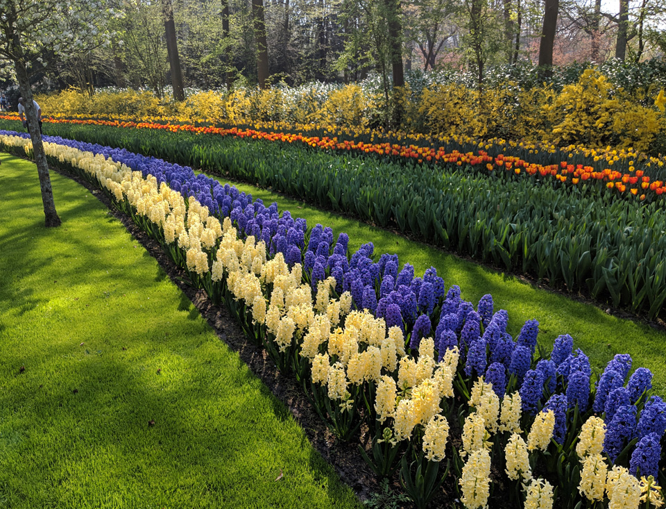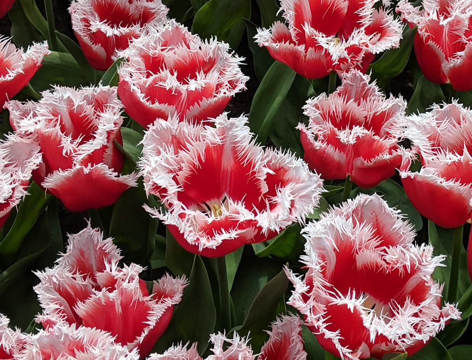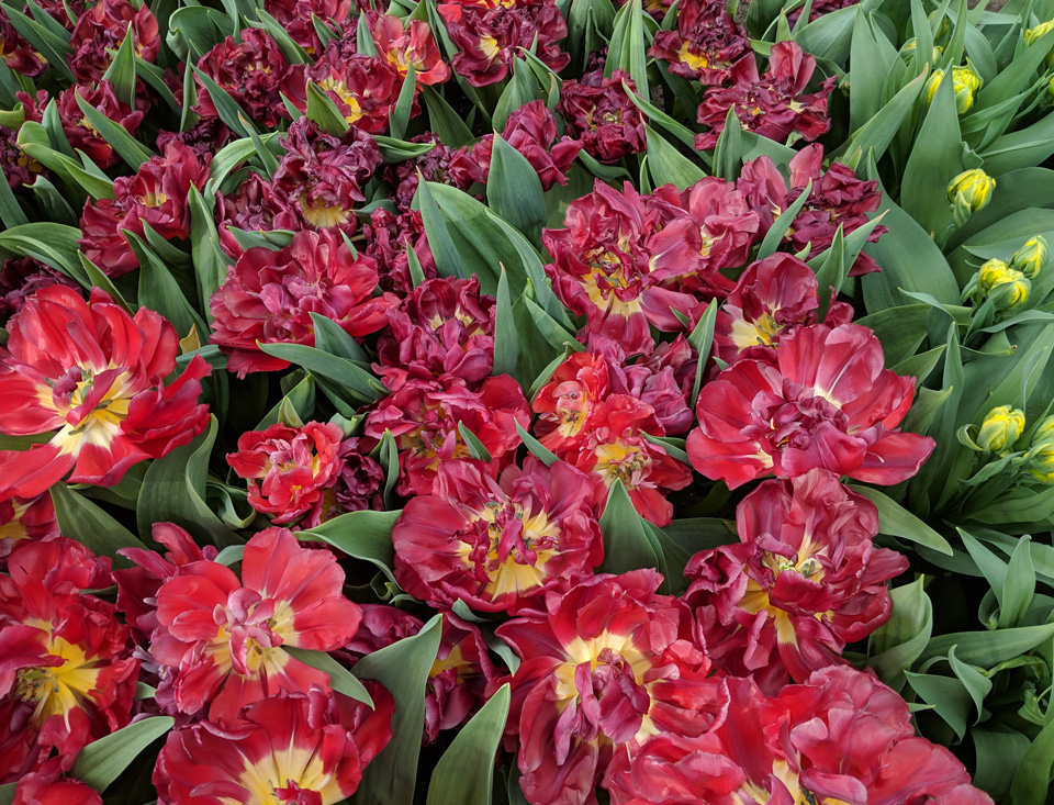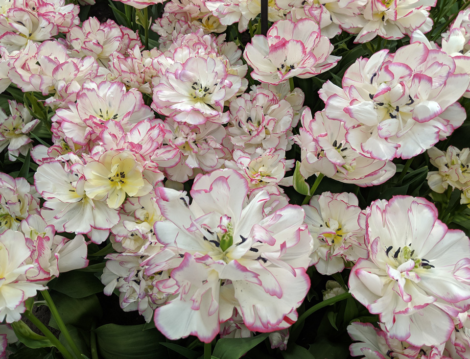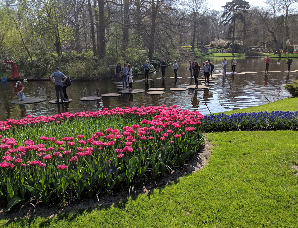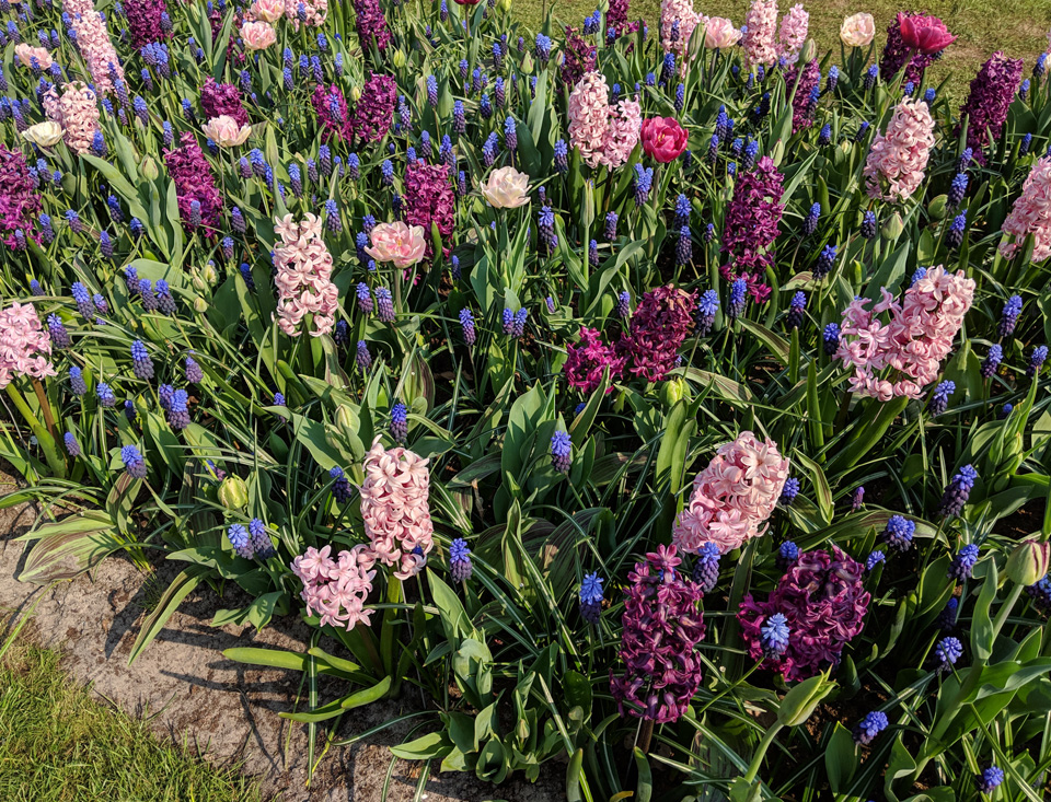 Heute war unser großer Tag. Wir sind mit den Rädern nach Lisse zum Keukenhof gefahren. Obwohl wir ja schon voriges Jahr hier waren, waren wir wieder total beeindruckt. Einfach ein grandioses Erlebnis. Das war ein super schöner Tag. Obwohl hier im Durchschnitt pro Tag ca. 20 000 Besucher durchströmen, hält sich das Gedrängel auf den Wegen in Grenzen. Ich habe 268 Bilder gemacht. 18 € Eintritt pro Person das erscheint ja auf den ersten Moment recht hoch, wenn man aber die Parkanlage betritt wird einem sehr schnell klar, dass es mehr als gerechtfertigt ist. So sehen wir das jedenfalls. Ein bisschen kannten wir uns ja schon vom vorigen Jahr aus und wir haben uns schnell darauf verständigt, dass wir die Runde ähnlich wie im vorigen Jahr machen werden. Erst einmal außen herum und dann schneckenförmig nach innen und in die Hallen. Hinter dem Haupteingang sind wir gleich nach rechts gegangen, hier stösst man auf die erste Springbrunnenanlage und erklimmt eine kleine Anhöhe. Von hier aus hat man einen guten Überblick über die großen Tulpenbeete und über die architektonische Kunst der Gärtner, die diese Farbenpracht richtig abgestimmt haben. Geht man den Außenweg weiter, kommt man zur Windmühle. Sie wurde aus Groningen hierher versetzt. Hier überquert man auch die ersten Wasserläufe. Rund um die Mühle gibt es weitere fein abgestimmte Farbspiele aus Tulpen, Narzissen und Hyazinten. Hier muss man einfach verweilen und genießen. Hier konzentrieren sich besonders viele Besucher und alle bemühen sich um das Erinnerungsfoto schlecht hin. Wir gehen weiter auf dem Außenweg geradwegs zu auf die Beatrix-Halle, vorbei an zwei Autowracks, ausgestopft mit Tulpen. In der Beatrix-Halle gibt es eine Orchideenausstellung. Wir gehen weiter auf einem Boulevar mit wiederum traumhaft schönen Blumenbeeten rechts und links. Hier liegen die ersten schon auf dem Rasen, teilweise um sich fotografieren zu lassen mit Tulpen im Hintergrund, teilweise aber auch einfach nur um sich auszuruhen. Auf der Westseite der Parkanlage befindet sich die Wilhelmina, ein riesiges Restaurant mit großen Toiltettenanlagen. Es ist ohnehin erstaunlich, wie gut hier alles funktioniert bei den täglich ca. 20 000 Leuten die hier durchlaufen. Ein Stück hinter der Wilhelmina haben wir dann eine freihe Parkbank gefunden für unser Picknick. Langsam spühren wir auch unsere Beine. Laut Homepage soll der Park ein Wegenetz von 15 km haben. Die Pause hat uns gut getan. Ein Stück weiter gibt es Irene, das nächste große Restaurant. Von hier sieht man auch schon wieder das große Eingangsgebäude. Die erste Außenrunde haben wir geschafft. Nun ging es weiter in das Innere über die Oranje Nassau, ein weiteres Lokal und ein kleiner Teil davon zeigt Schnittblumen. Über eine Schlaufe am großen See, hier gibt es besonders schönen Blumenrabatten, sind wir dann in die Willem Alexander-Halle gegangen. Eigentlich ein riesiges Gewächshaus. Hier gibt es eine Ausstellung besonderer Tulpenzüchtungen. Total beeindruckend, wieviele Möglichkeiten es gibt Tulpen zu verändern. Wir beide haben fotografiert wie die Weltmeister. Susanne war auf Toilette und hat uns, weil sie direkt daran vorbei musste, eine Joghurteis mit Früchten mitgebracht. Das Eis und die Pause haben uns wieder gut getan. Jetzt hatten wir wieder Lust uns den Rest der Tulpenhalle anzusehen. Danach haben wir uns mit kleinen Umwegen auf den Rückweg zur großen Eingangshalle gemacht. Unsere Räder standen noch an Ort und Stelle. |