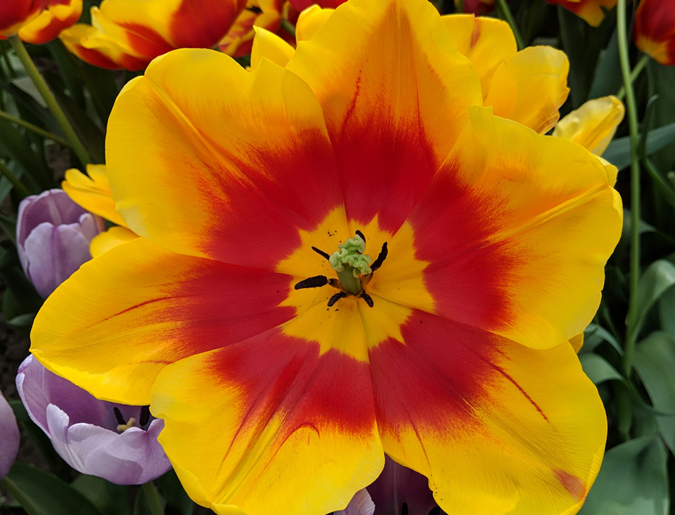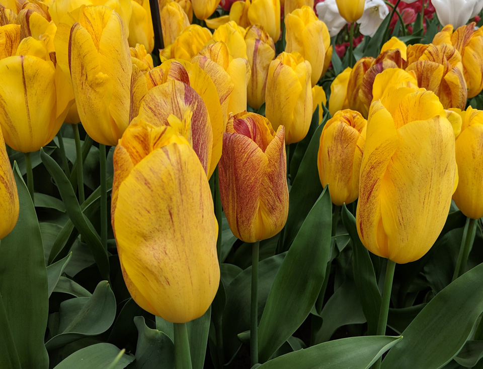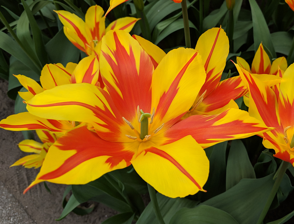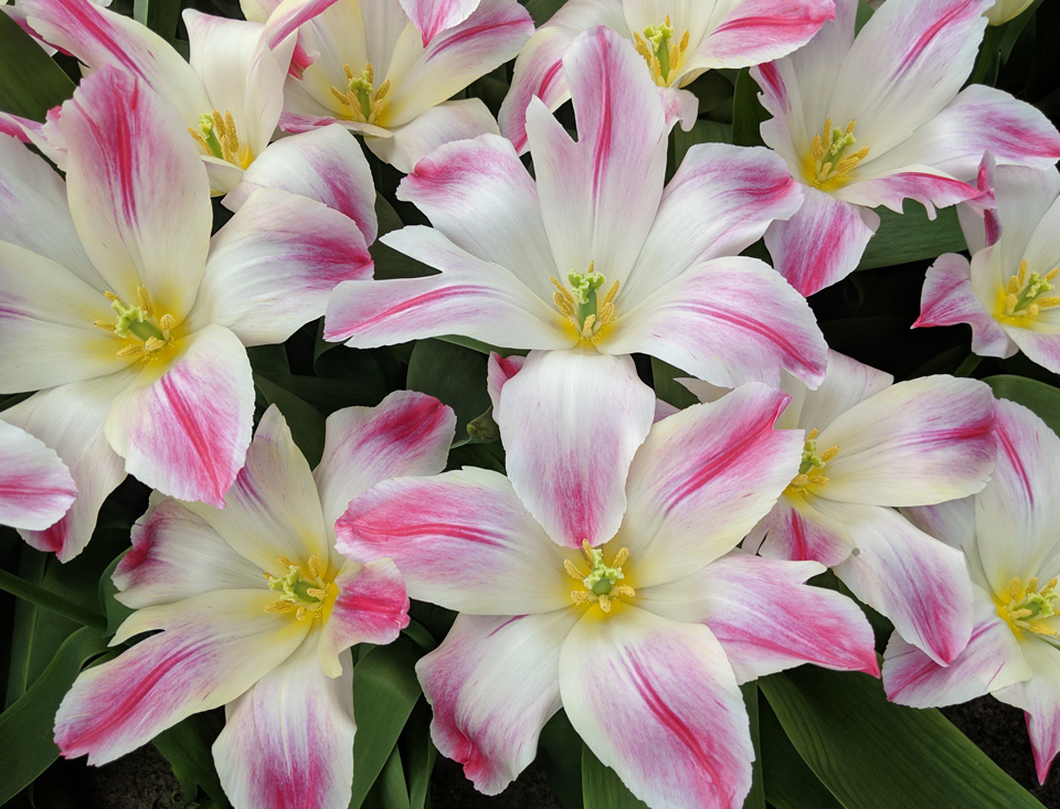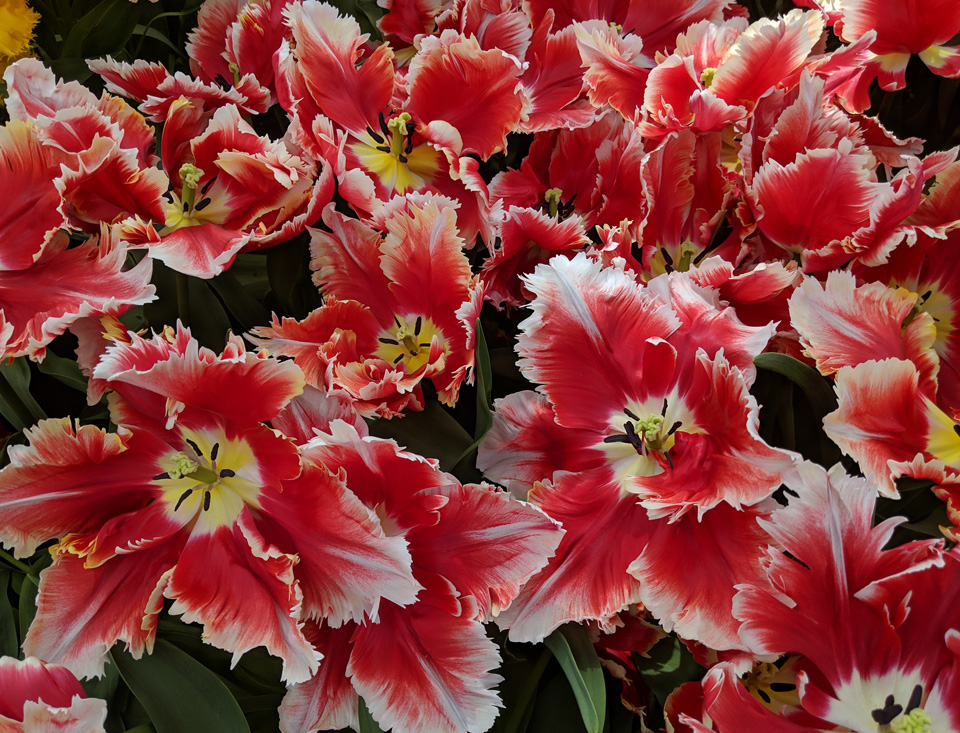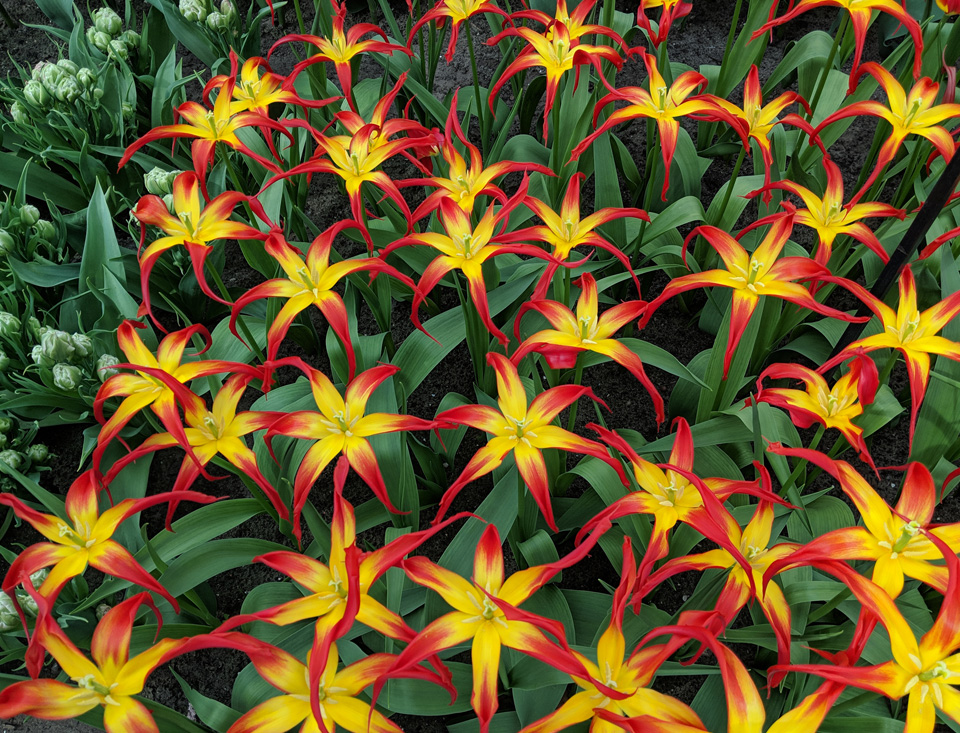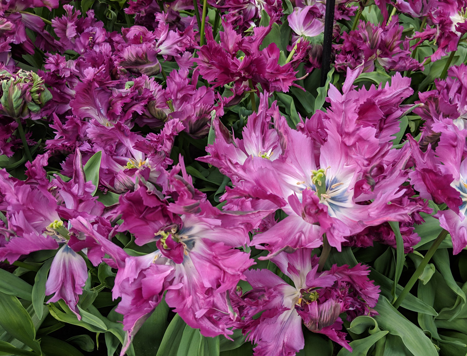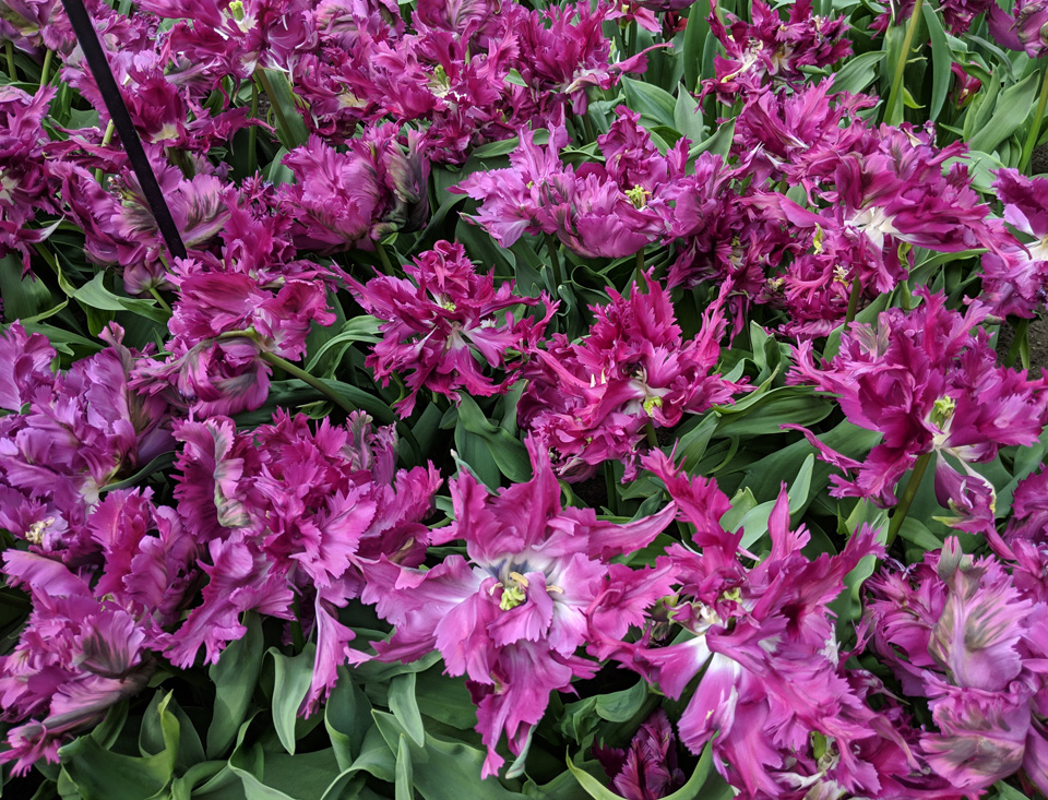 Heute war unser großer Tag. Wir sind mit den Rädern nach Lisse zum Keukenhof gefahren. Obwohl wir ja schon voriges Jahr hier waren, waren wir wieder total beeindruckt. Einfach ein grandioses Erlebnis. Das war ein super schöner Tag. Obwohl hier im Durchschnitt pro Tag ca. 20 000 Besucher durchströmen, hält sich das Gedrängel auf den Wegen in Grenzen. Ich habe 268 Bilder gemacht. 18 € Eintritt pro Person das erscheint ja auf den ersten Moment recht hoch, wenn man aber die Parkanlage betritt wird einem sehr schnell klar, dass es mehr als gerechtfertigt ist. So sehen wir das jedenfalls. Ein bisschen kannten wir uns ja schon vom vorigen Jahr aus und wir haben uns schnell darauf verständigt, dass wir die Runde ähnlich wie im vorigen Jahr machen werden. Erst einmal außen herum und dann schneckenförmig nach innen und in die Hallen. Hinter dem Haupteingang sind wir gleich nach rechts gegangen, hier stösst man auf die erste Springbrunnenanlage und erklimmt eine kleine Anhöhe. Von hier aus hat man einen guten Überblick über die großen Tulpenbeete und über die architektonische Kunst der Gärtner, die diese Farbenpracht richtig abgestimmt haben. Geht man den Außenweg weiter, kommt man zur Windmühle. Sie wurde aus Groningen hierher versetzt. Hier überquert man auch die ersten Wasserläufe. Rund um die Mühle gibt es weitere fein abgestimmte Farbspiele aus Tulpen, Narzissen und Hyazinten. Hier muss man einfach verweilen und genießen. Hier konzentrieren sich besonders viele Besucher und alle bemühen sich um das Erinnerungsfoto schlecht hin. Wir gehen weiter auf dem Außenweg geradwegs zu auf die Beatrix-Halle, vorbei an zwei Autowracks, ausgestopft mit Tulpen. In der Beatrix-Halle gibt es eine Orchideenausstellung. Wir gehen weiter auf einem Boulevar mit wiederum traumhaft schönen Blumenbeeten rechts und links. Hier liegen die ersten schon auf dem Rasen, teilweise um sich fotografieren zu lassen mit Tulpen im Hintergrund, teilweise aber auch einfach nur um sich auszuruhen. Auf der Westseite der Parkanlage befindet sich die Wilhelmina, ein riesiges Restaurant mit großen Toiltettenanlagen. Es ist ohnehin erstaunlich, wie gut hier alles funktioniert bei den täglich ca. 20 000 Leuten die hier durchlaufen. Ein Stück hinter der Wilhelmina haben wir dann eine freihe Parkbank gefunden für unser Picknick. Langsam spühren wir auch unsere Beine. Laut Homepage soll der Park ein Wegenetz von 15 km haben. Die Pause hat uns gut getan. Ein Stück weiter gibt es Irene, das nächste große Restaurant. Von hier sieht man auch schon wieder das große Eingangsgebäude. Die erste Außenrunde haben wir geschafft. Nun ging es weiter in das Innere über die Oranje Nassau, ein weiteres Lokal und ein kleiner Teil davon zeigt Schnittblumen. Über eine Schlaufe am großen See, hier gibt es besonders schönen Blumenrabatten, sind wir dann in die Willem Alexander-Halle gegangen. Eigentlich ein riesiges Gewächshaus. Hier gibt es eine Ausstellung besonderer Tulpenzüchtungen. Total beeindruckend, wieviele Möglichkeiten es gibt Tulpen zu verändern. Wir beide haben fotografiert wie die Weltmeister. Susanne war auf Toilette und hat uns, weil sie direkt daran vorbei musste, eine Joghurteis mit Früchten mitgebracht. Das Eis und die Pause haben uns wieder gut getan. Jetzt hatten wir wieder Lust uns den Rest der Tulpenhalle anzusehen. Danach haben wir uns mit kleinen Umwegen auf den Rückweg zur großen Eingangshalle gemacht. Unsere Räder standen noch an Ort und Stelle. |
