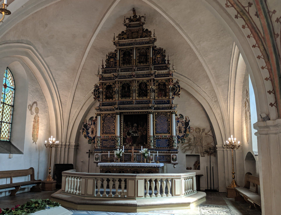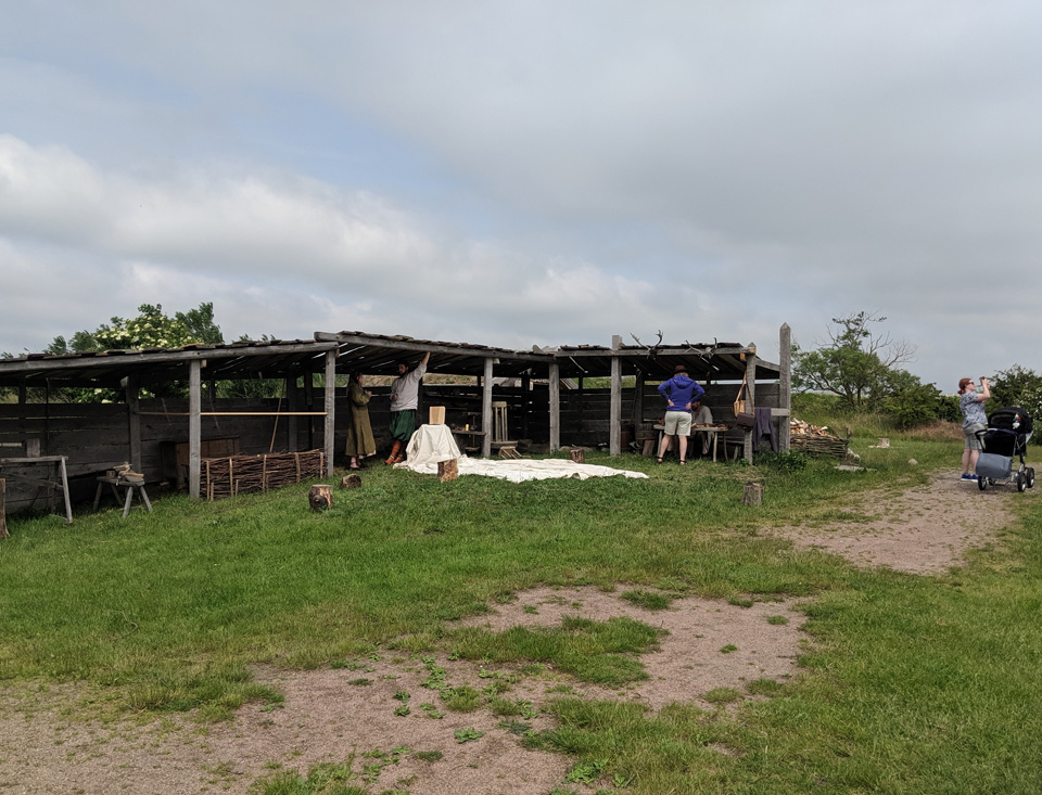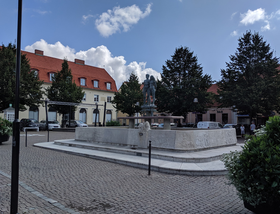 Am späten Nachmittag kam ein größeres Womo, was erst auf dem Platz umherirrte und sich dann aber vor den Bühnenplatz stellte. Kurz darauf hörten wir es krachen, gefolgt von großer Aufregung auf dem Platz. Offensichtlich ist der Mann von dem Womo auf das Geländer der Bühne gestiegen um sein Kabel an einem Mast anzuschließen. Das Holzgeländer ist wohl gebrochen und er ist abgestürzt. Er wurde eine halbe Stunde später von einem Notarztwagen abgeholt. Ein Schwede kam zu uns und wollte uns klar machen, dass wir an dem Unfall die Schuld tragen, weil wir quer, statt längst mit unserem Womo stehen. Das fanden wir richtig gruselig diese Anfeindungenn und haben beschlossen, am nächsten Tag abzureisen.