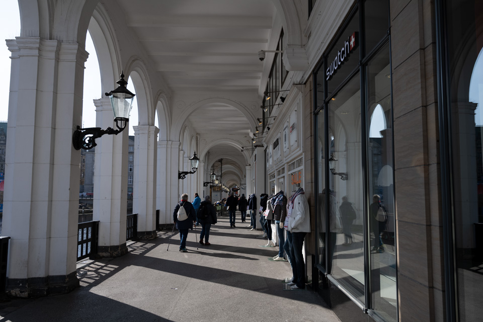 Vorbei an dem beeindruckenden Rathaus sind wir in die Mönckebergstraße eingebogen. Sie entspricht unserem Ku-Damm in Berlin. Hier gibt es auch Höfe und Wandelgänge.