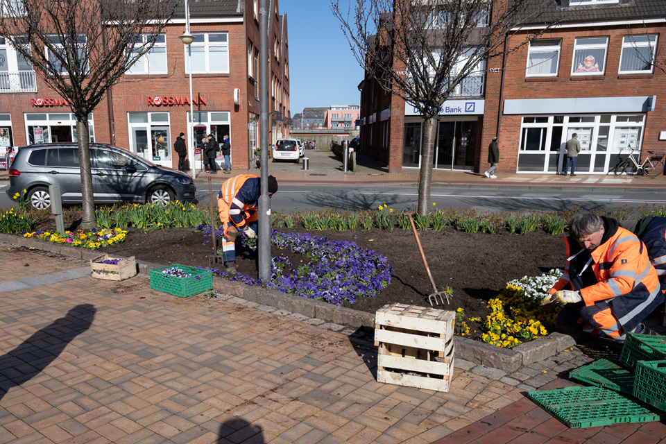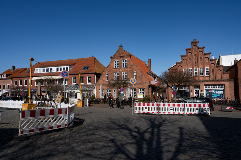 Wir sind in die Innenstadt von Niebüll gelaufen, ein mal entlang der Fußgängerzone. Wir wollten den günstigsten Bäcker für die frischen Brötchen herausfinden. Aber auch der Bahnhof war unser Ziel für die Fahrt zur Insel Sylt. Wir haben einen sehr netten Berater angetroffen, der uns überzeugt hat, dass ein Gruppenticket mit Hop on und Hop off die beste Lösung für uns ist. Die Räder brauchen wir dann gar nicht.