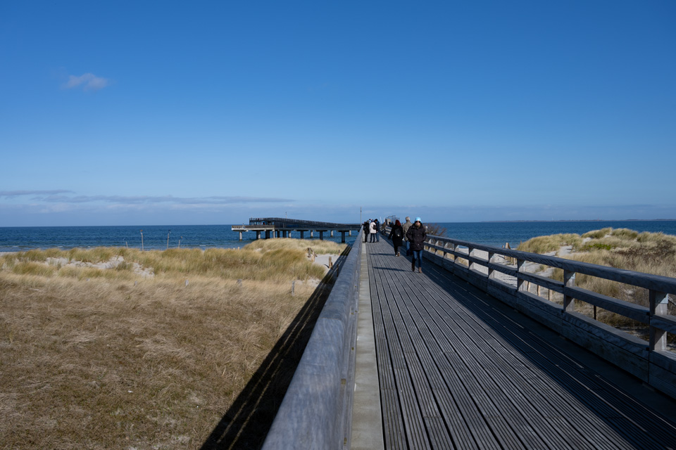 Wir sind vom Stellplatz in Heiligenhafen aus über das Ferienzentrum zum Ostseestrand gelaufen. Wir haben uns erkundigt wo der Bäcker ist und haben das Umfeld besichtigt. Vom Stellplatz bis zum Ort selbst sind es über 2 km.