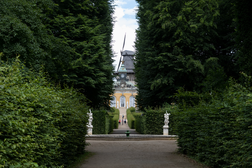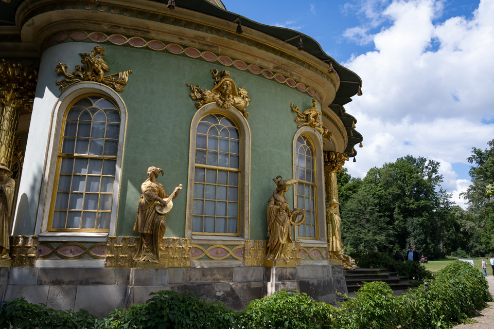 Über das Orangerieschloss sind wir in den Schlosspark von Sanssouci hinabgestiegen. Der Park ist sehr weitläufig und trotzdem sehr schön. Schloss Charlottenhof, die Römischen Bäder, das chinesische Haus und Sansouci waren die weiteren Stationen.