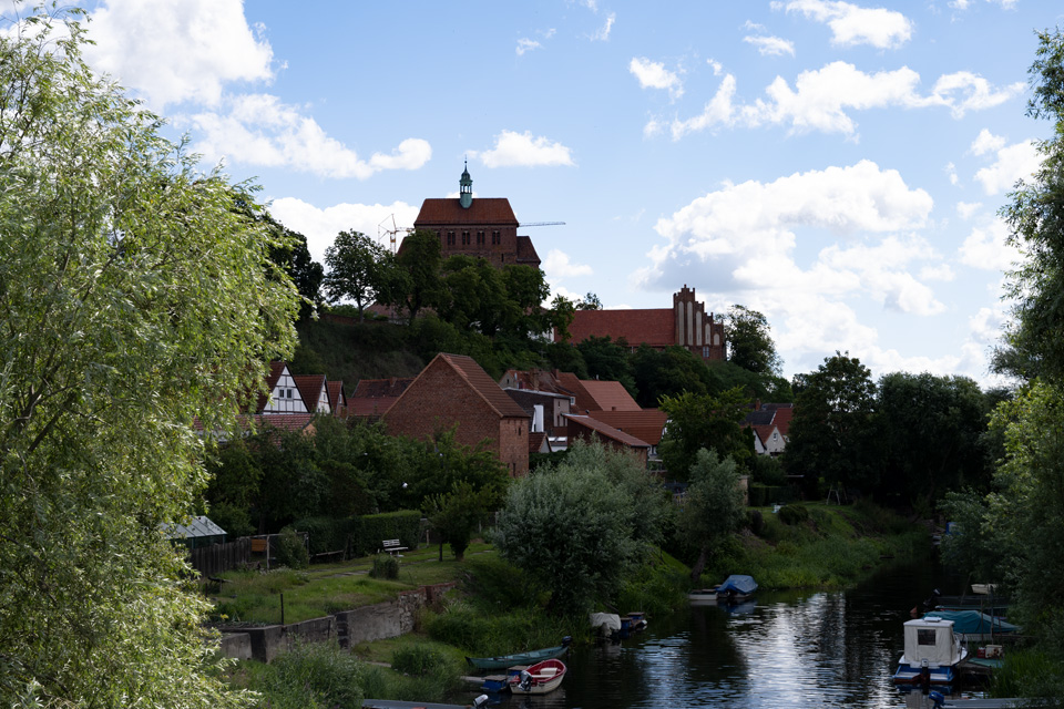 Dem Wetterbericht Glauben schenkend sind wir gegen 13:30 Uhr losgegangen, weil es um diese Zeit aufhören sollte zu regnen. Dass es noch ganz leicht tröpfelte störte uns nicht. Unser Ziel war der Dom von Havelberg und das Prignitzmuseum. Unterwegs fing es eher stärker an zu regnen. Am Dom angekommen, konnten wir am Eingang lesen, dass er Montags, einschließlich Museum, geschlossen ist. Toll, im Prostekt soll er durchgehend offen sein. Also mussten wir den Rückweg antreten. Am Womo wieder angekommen, waren wir ziemlich durchnässt. Schon kurz nach unserer Ankunft hat es wie zum Hohn aufgehört zu regnen.