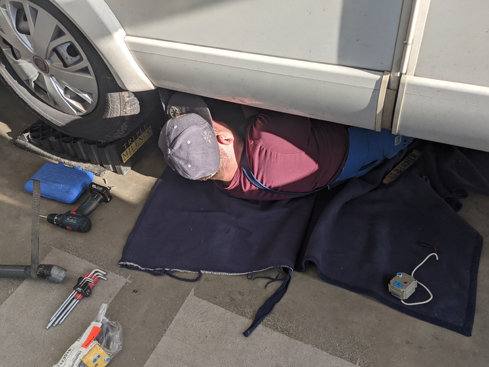 Am späten Nachmittag war unser Womo fertig, der Abwasserschieber funktioniert wieder tadellos. Wir haben den Abend noch auf dem Parkplatz von Caravan Wendt verbracht.