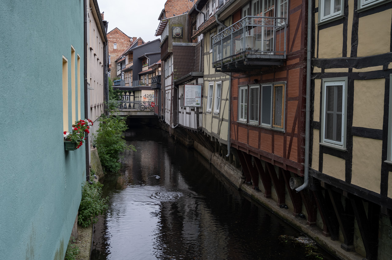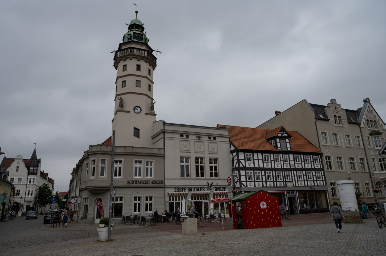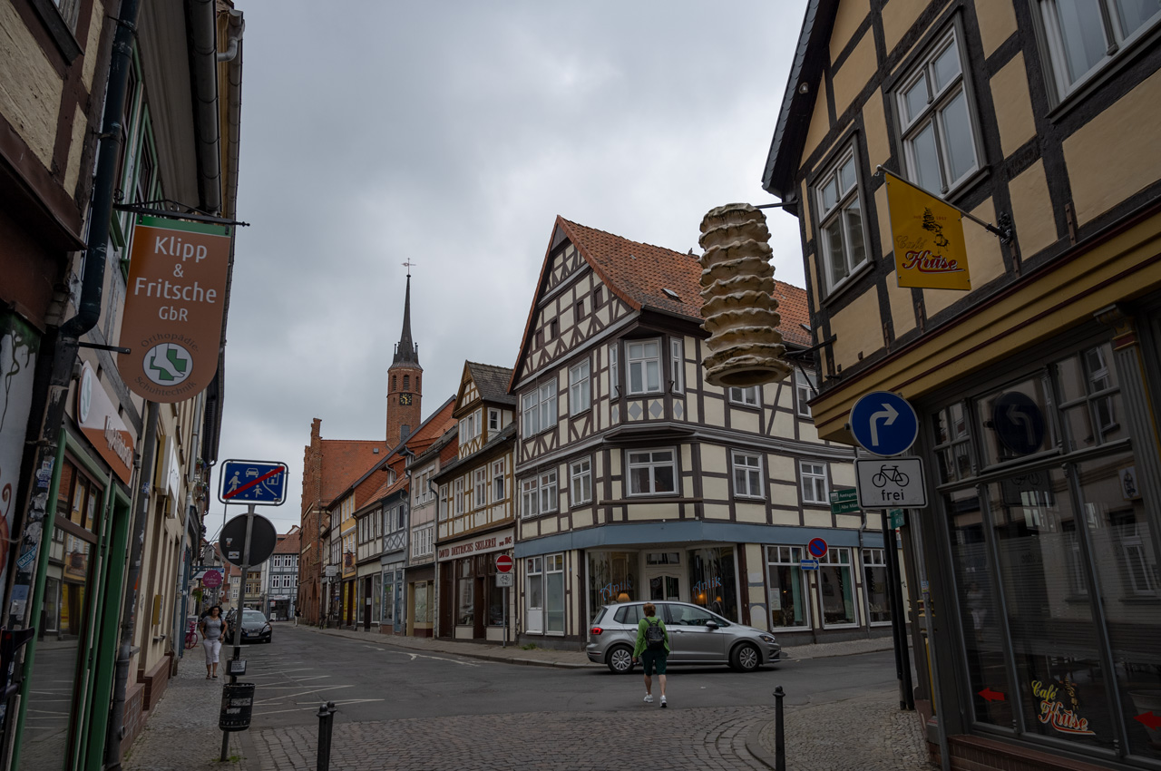 Wir sind vom Stellplatz aus in die Altstadt gelaufen, dass sind ca. 1000 Meter. Wir haben viele gut restaurierte Gebäude bewundert, einige davon stammen aus dem 16. Jahrhundert. Salzwedel hat noch einen guten Bestand an historischen Gebäuden, die in der Zwischenzeit sehr gut restauriert wurden. Allerdings kann man auch hier den Umbruch der sich gerade im Einzelhandelsbereich ereignet beobachten. Wir waren in der Touristeninformation und haben uns mit Infomaterial über die Stadt und die Altmark versorgt. Die Fleischerei Altmärker haben wir gesucht und gefunden. Mich störten dort Schilder mit der Aufschrift DDR-Jagdwurst und DDR-Leberwurst. Mir war nicht bekannt, dass die DDR Wurstsorten hervorgebracht hat. Ich vermute auch eher, dass es sich dabei um historische Rezepte der Altmark handelt. Gerade die DDR, die, wo immer sie konnte, das Handwerk bevormundet hat und in Roduktionsgenossenschaften gezwungen hat, muss man so etwas noch huldigen?